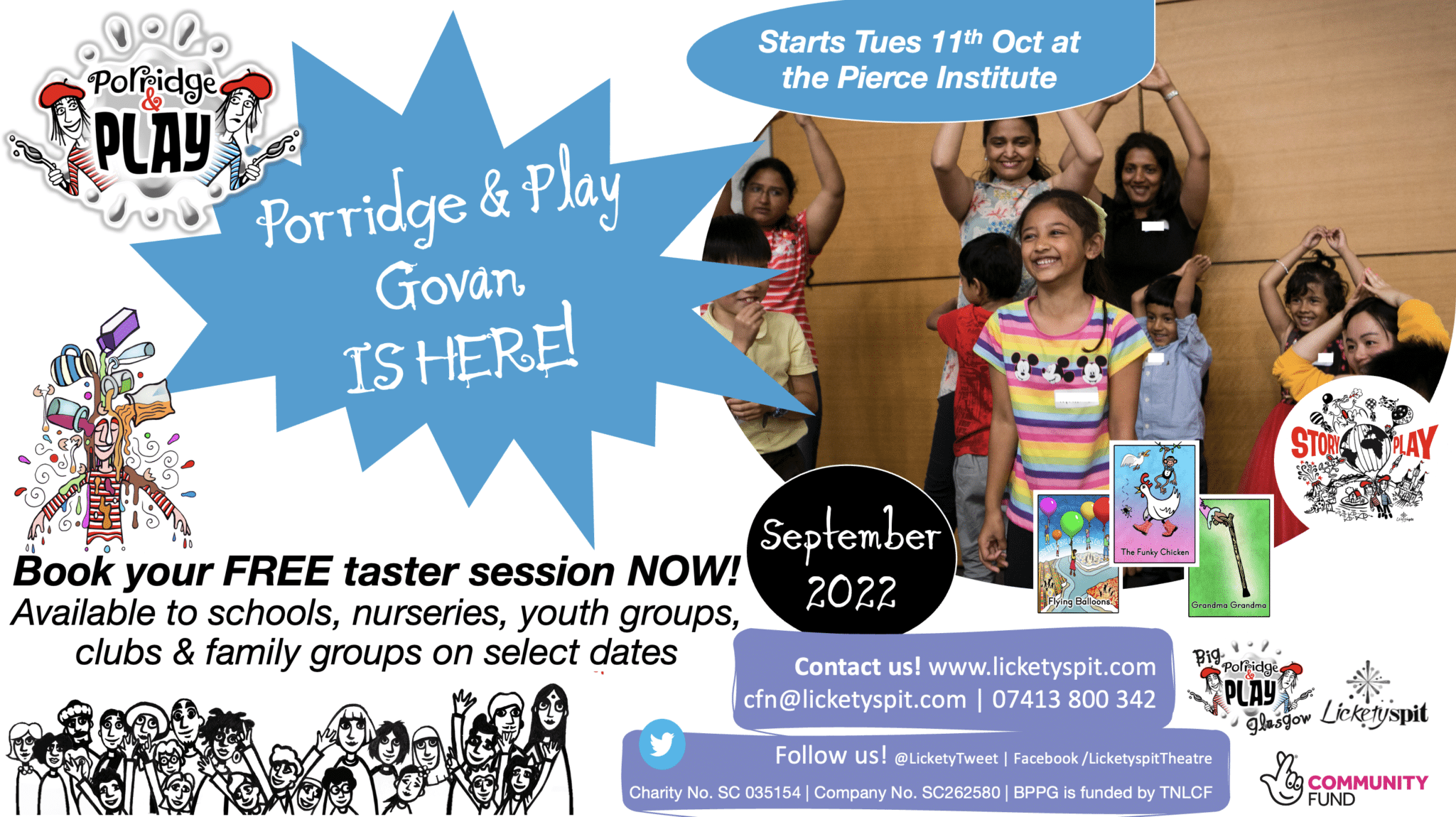 2023-03-06T10:08:28+00:00Porridge & Play Govan is a Licketyspit Storyplay project for families with 3-8 year olds in the area. Find all of Porridge & Play Govan's adventures here! Blog post written by Sarah! Govan was just delightful and packed full of magical adventures! Wednesday 1st March We danced our socks off in the groovy Dance Warm-Up with some mighty fine moves from Bimbo, Toby, Shadda, Sami and Mohammed to get us all warmed up. Then we met some of the Funky Chicken’s new pals. It was just marvellous to meet the two Biggies - Tiger and Hedgehog - and then the Sharp-Nailed Sloth and a very Happy Axolotl. What a treat! We were searching for the Magic Ball and Shadda and Azeem managed to find different pieces of it which we stuck together. After Ameen and Amir remembered the song, we sang it all together. Off we went to a far off land that was very white and snowy... Where we found a Penguin! Mohammed saw it, in amongst all the mist and the icicles, and fortunately he was able to speak the special Penguin language of this land! He let us all know that this poor wee shy penguin was lost! It looked very worried, so we were so glad when Bayan said she knew the way to her home! We all bravely followed Bayan, trudging [...]