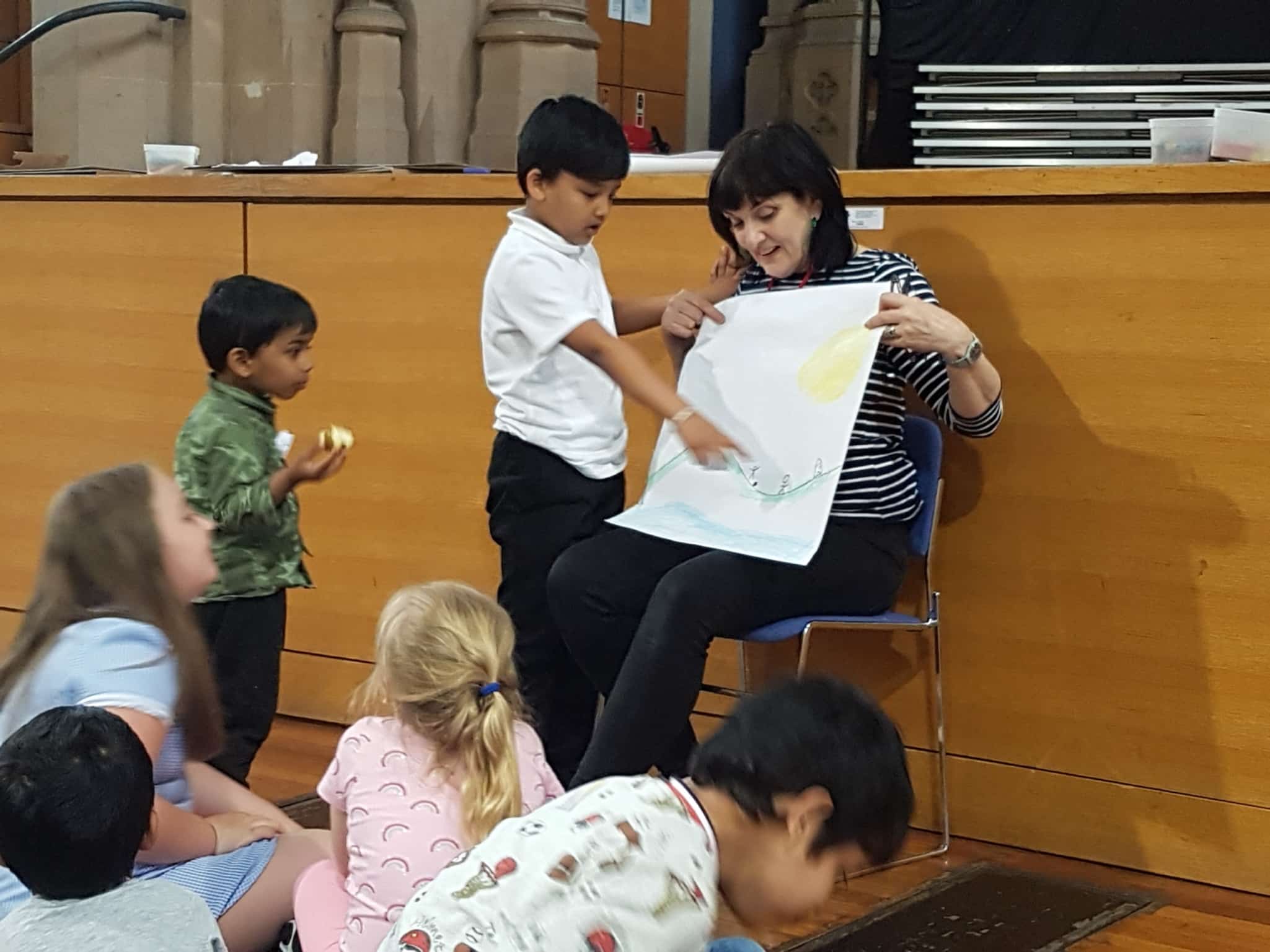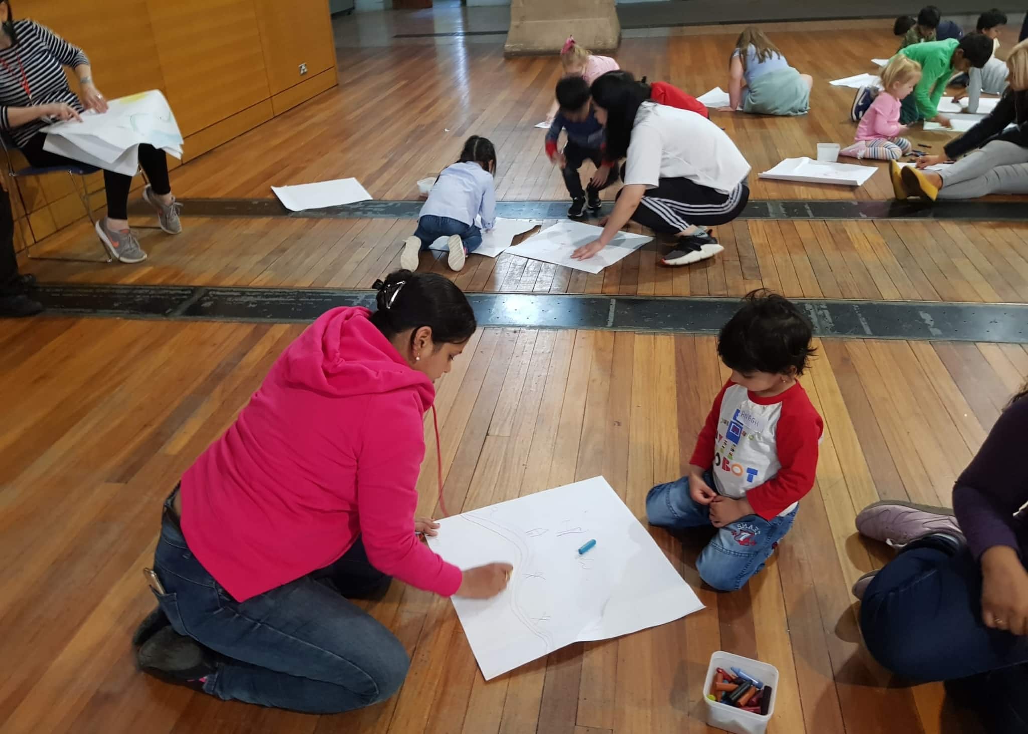 We had a delicious lentil, carrot and leek soup, fruit and crusty bread, and ended the session with Reflective Drawing and the Licketyspit Gallery, where children and parent artists presented their work and shared what they liked most about the session! Even the youngest participants came up to share their detailed drawings and there was a lovely focus during the Gallery. You can find out more about our food in the Lickety Kitchen.