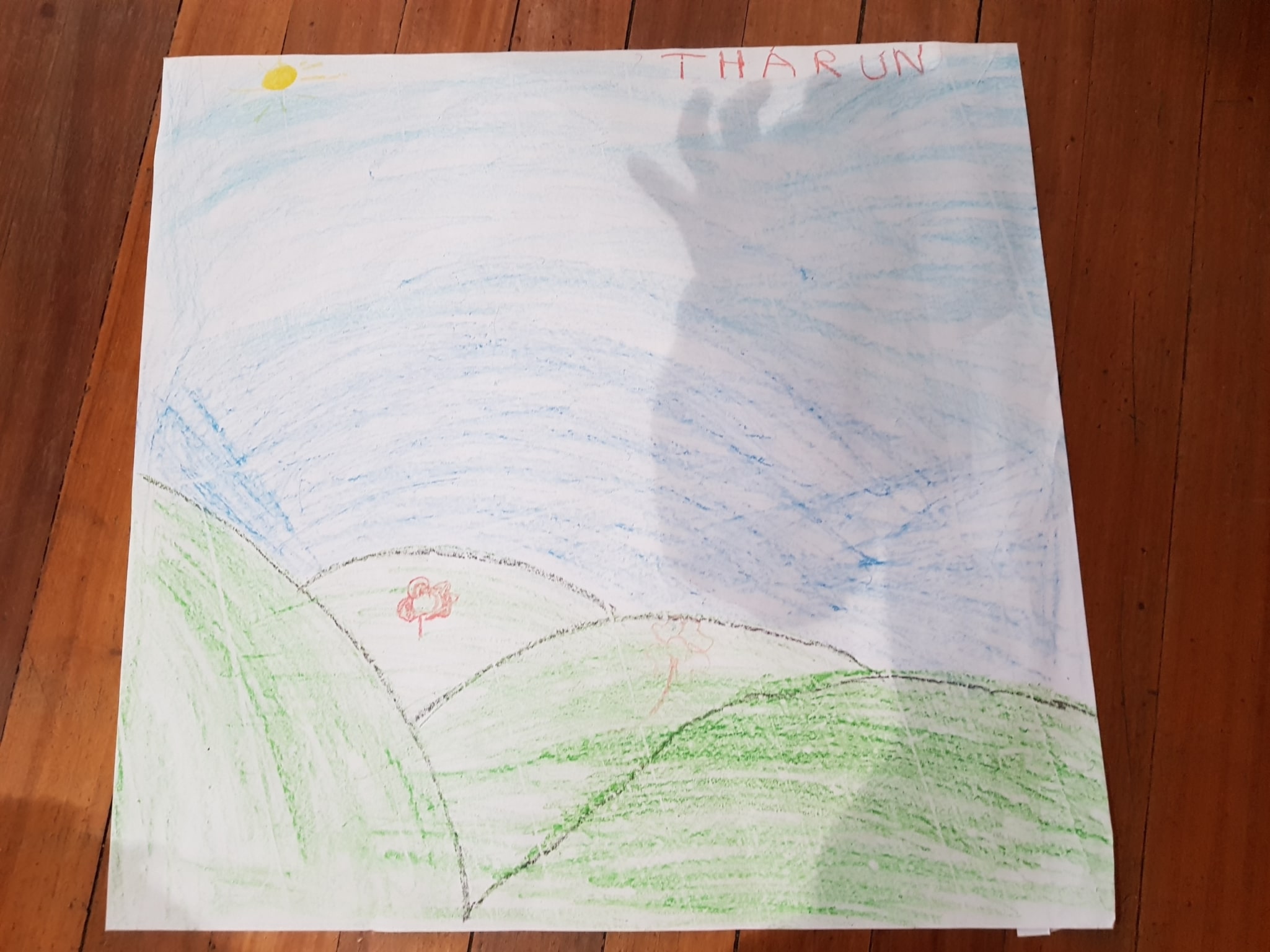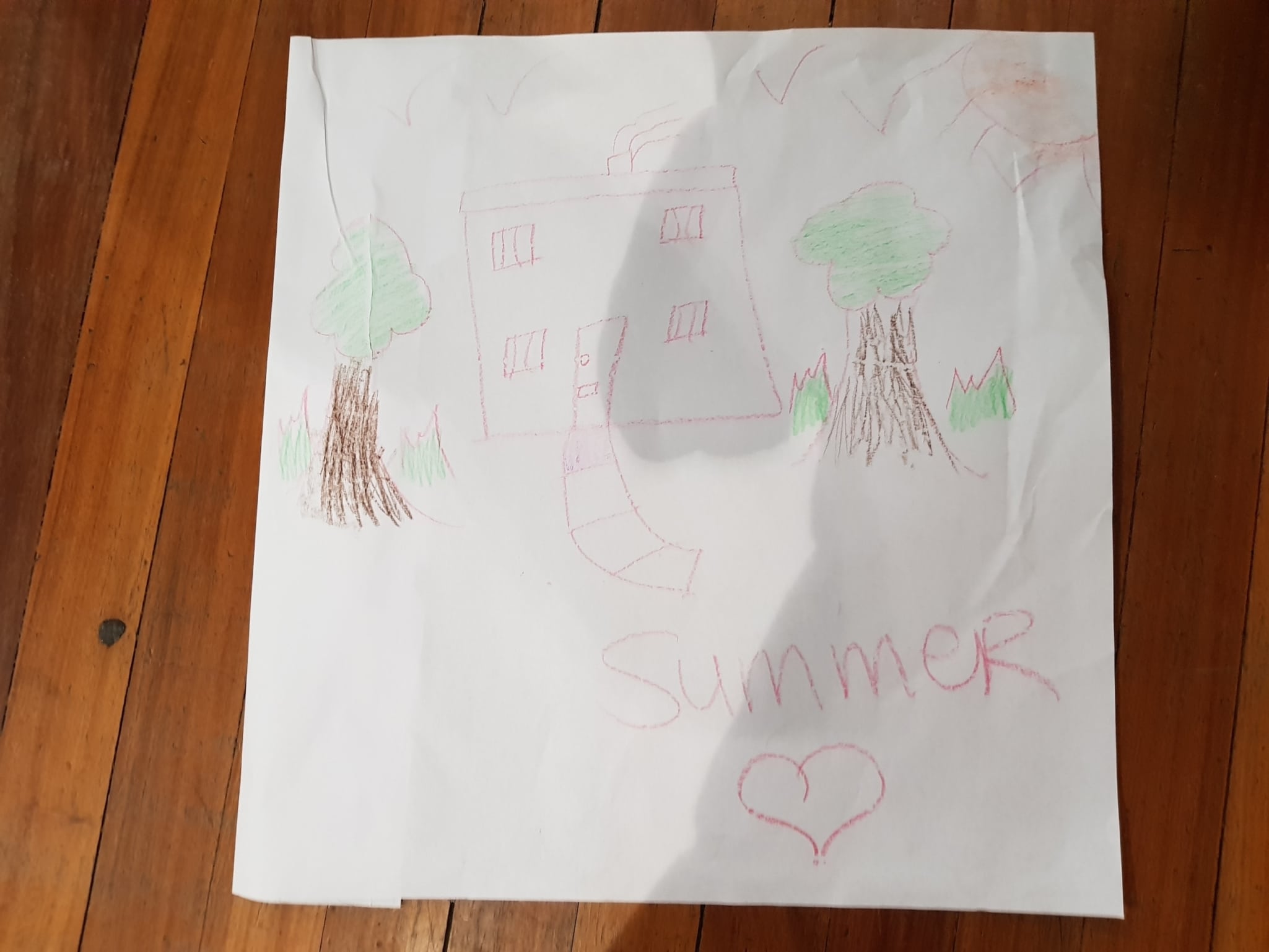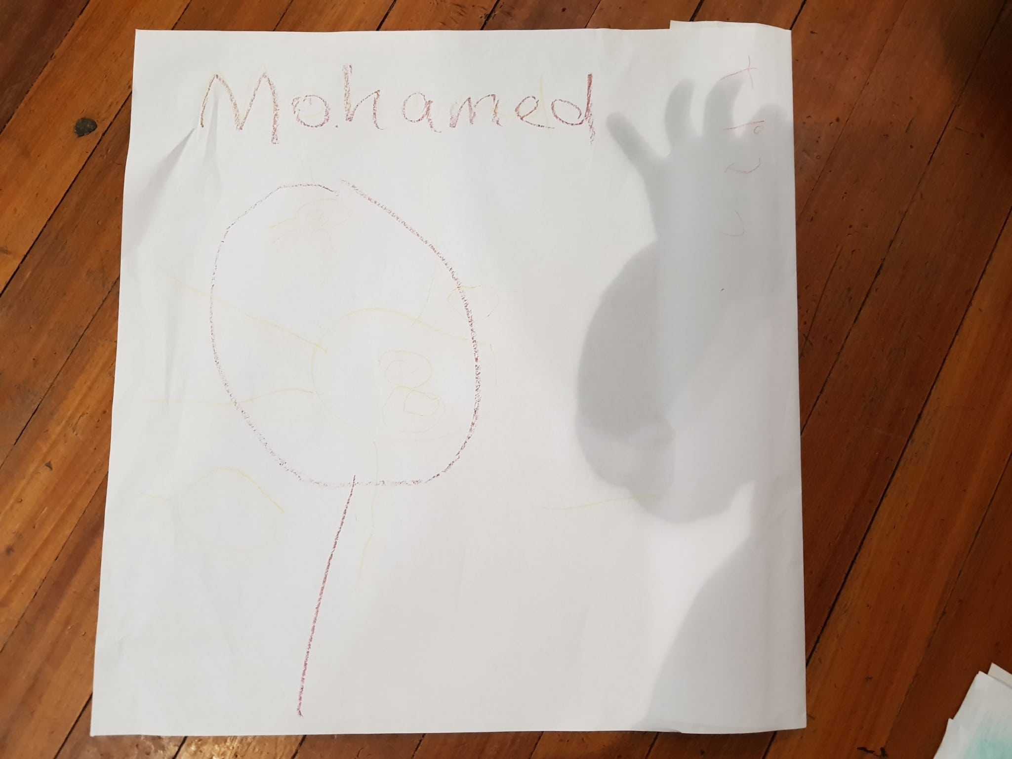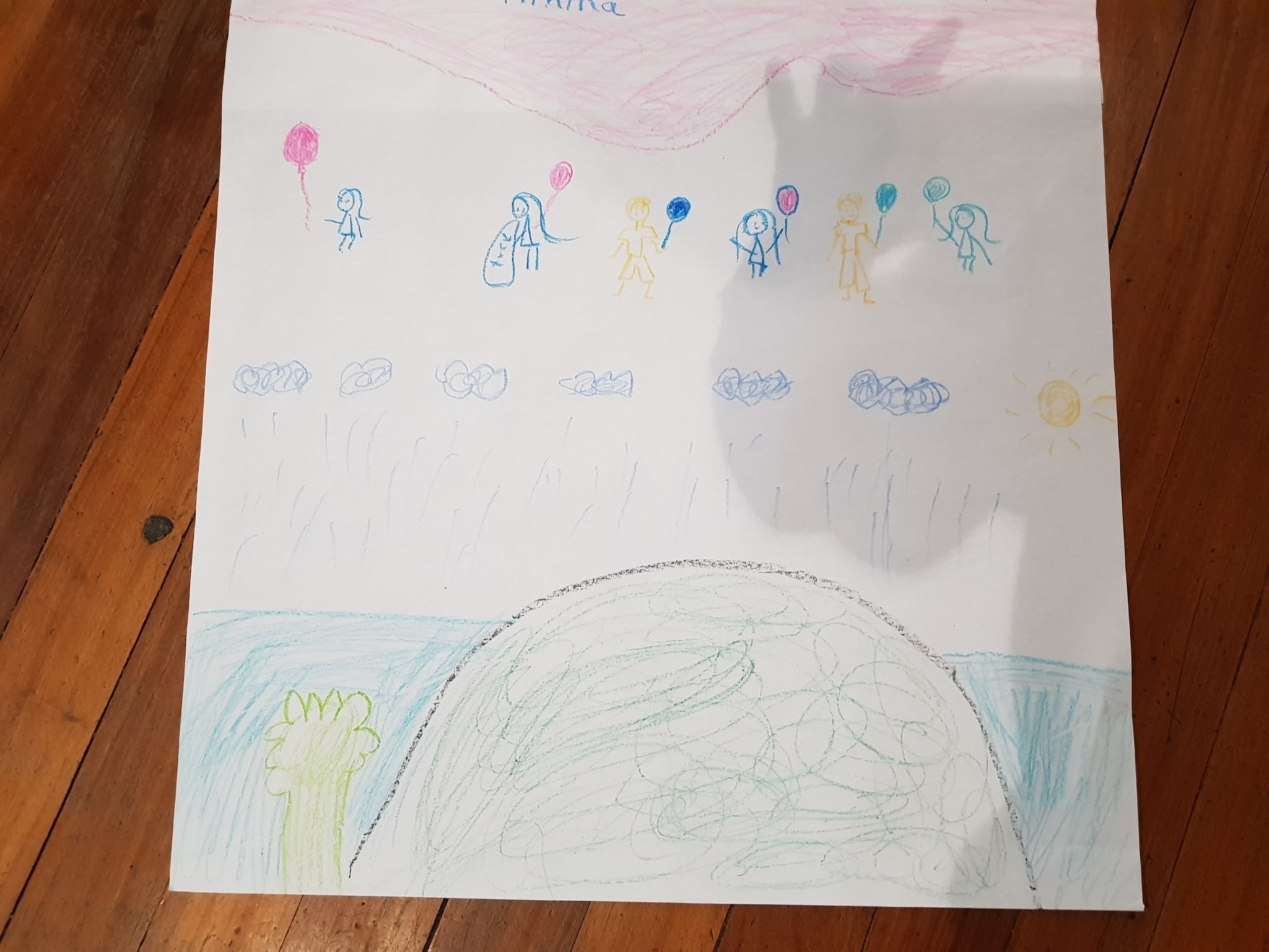 everywhere. (Reflective Drawing) The egg from the egg game, small house, I made the egg a bit different as it’s a special egg. And a plum tree beside a house, and this is the fence and this is the grass. (Child, 8)