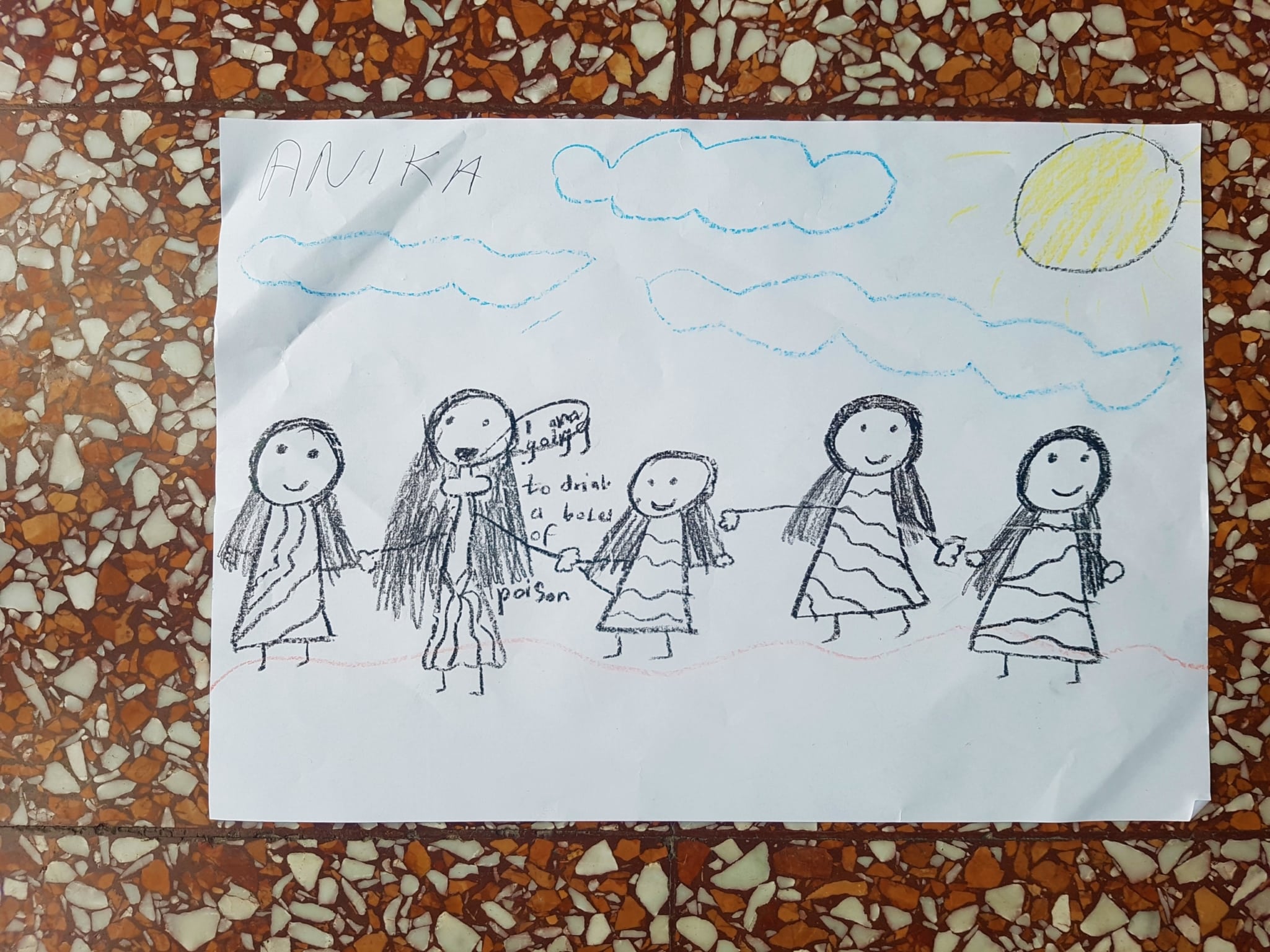 “I drew witch’s fingers. There are me and with. I’m witch and these are all my friends” (Child, 5)