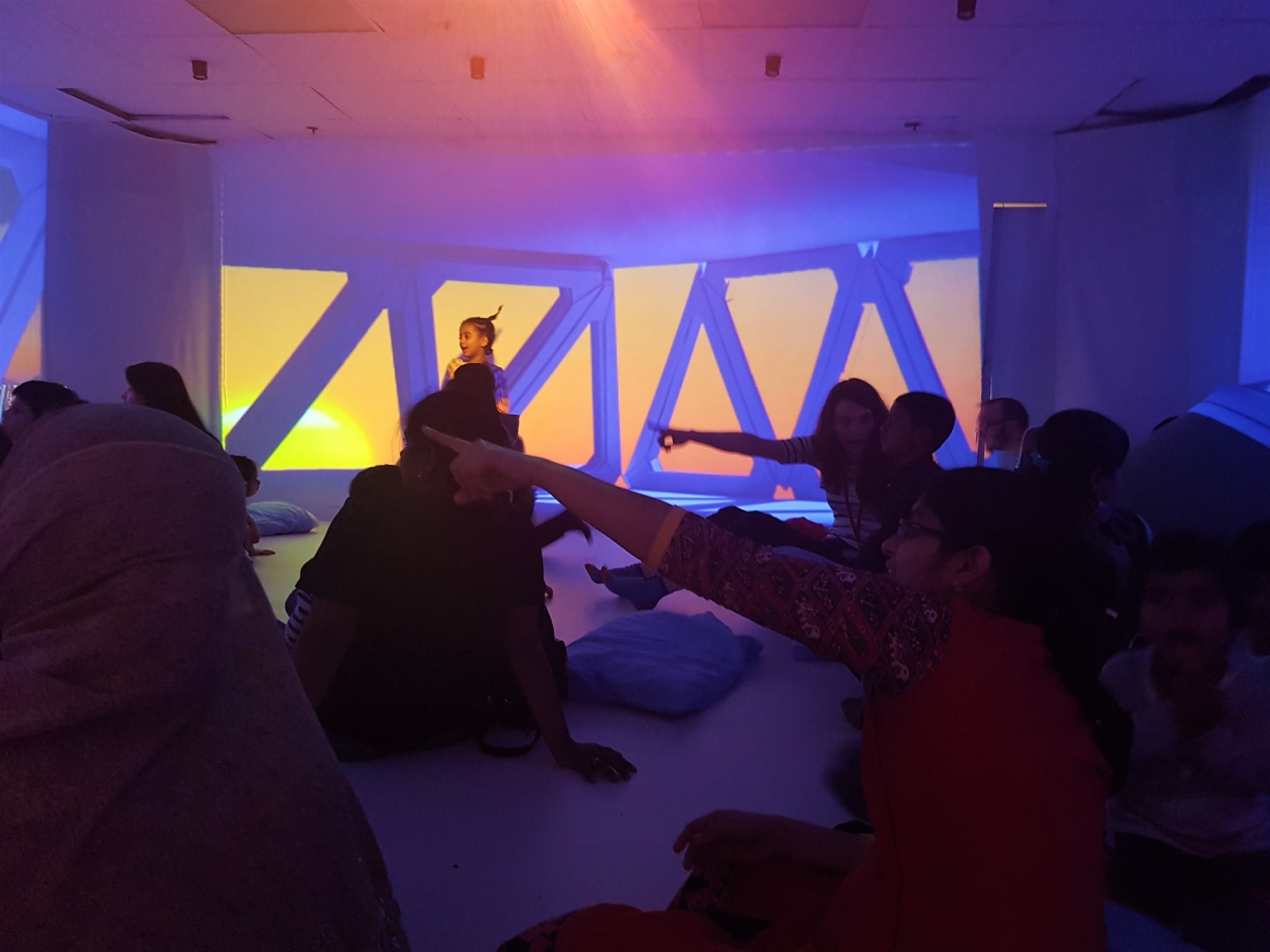 We had our Licketyspit picnic before Matt, the Dream Machine inventor, invited us to experience the Dream Machine – which is a bit like the Magic Ball! The Dream Machine took us all on an adventure around the world, up into space and into the heart of the Sun! This was an amazing end to a great Outreach session!