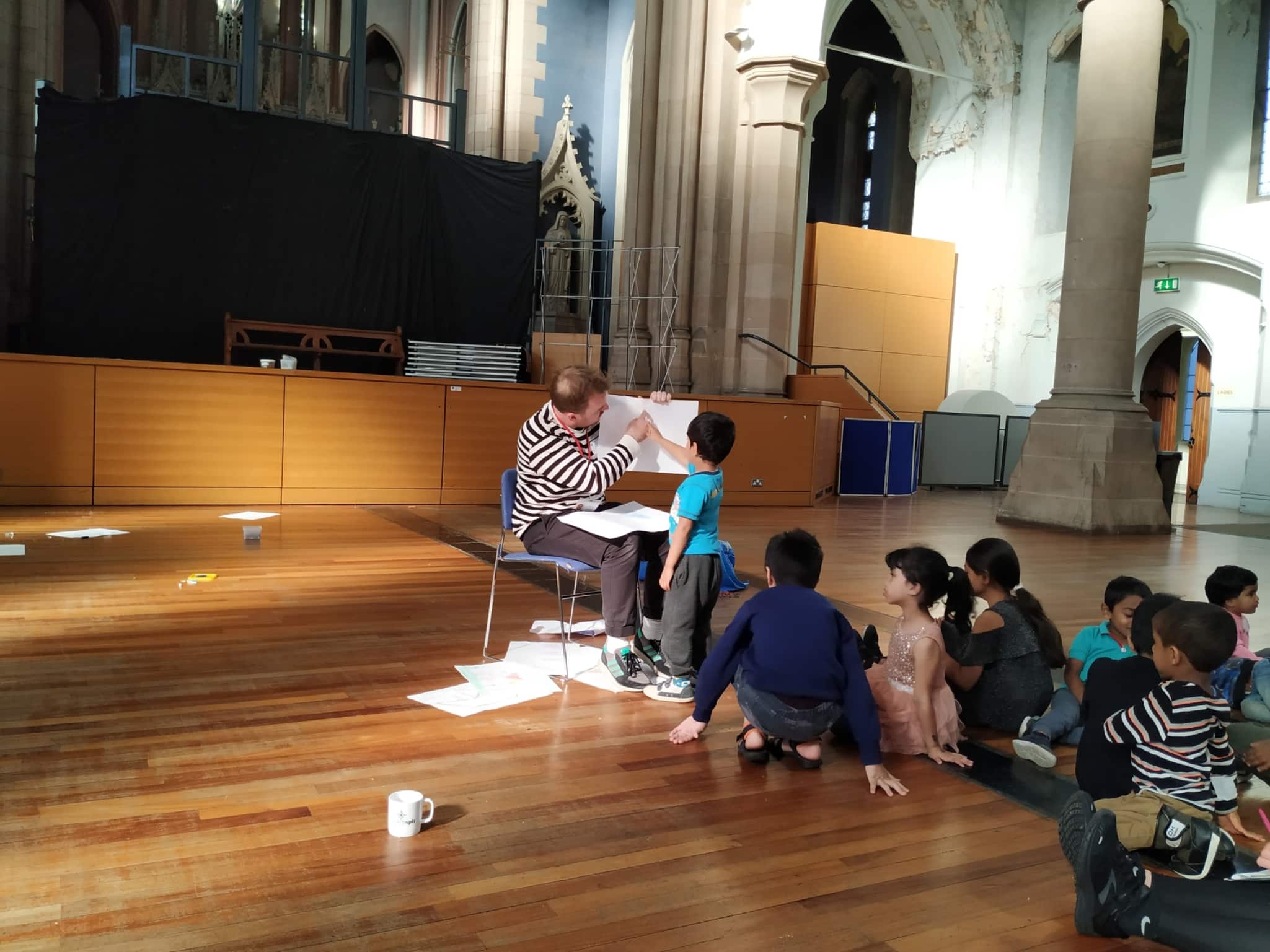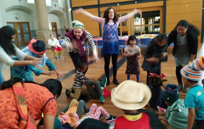 There were huge smiles all round in Old Rodger and it was great to see how much the parents were supporting the children to get involved in planting the tree and tumbling down the apples. This was mirrored in the songs, where those who have been coming to Porridge & Play for longer were really making people laugh with their full-bodied renditions of Jelly on his Head.