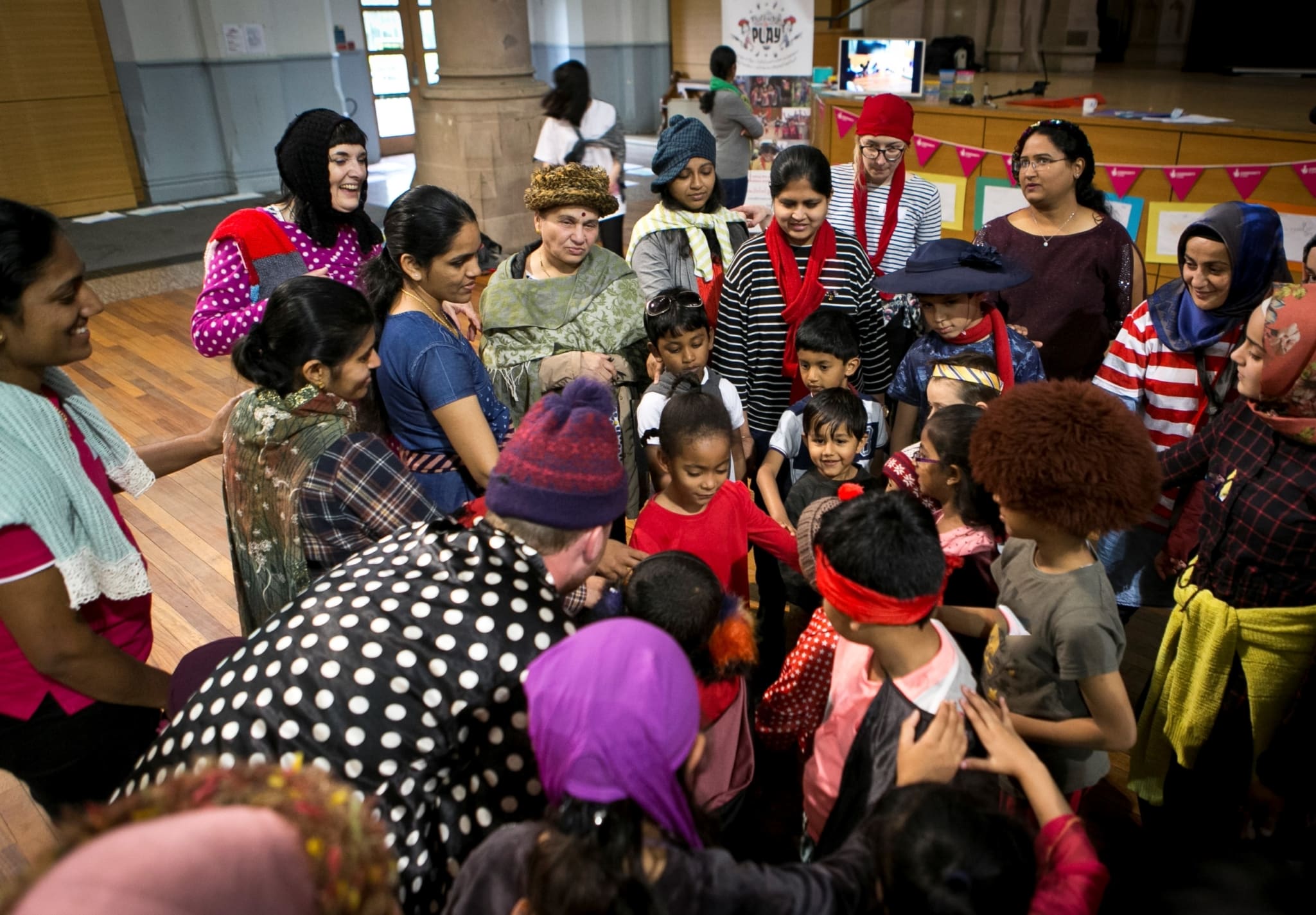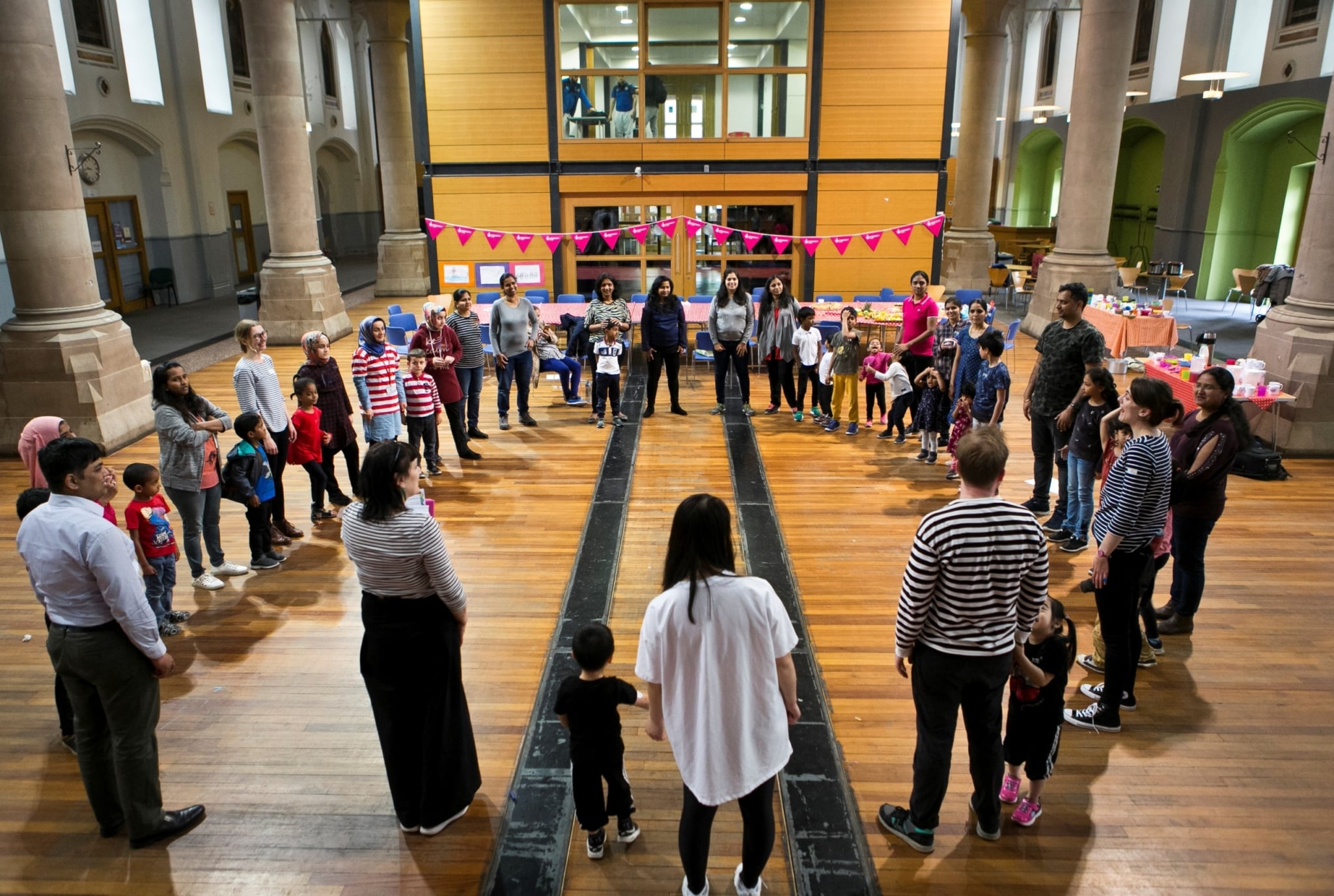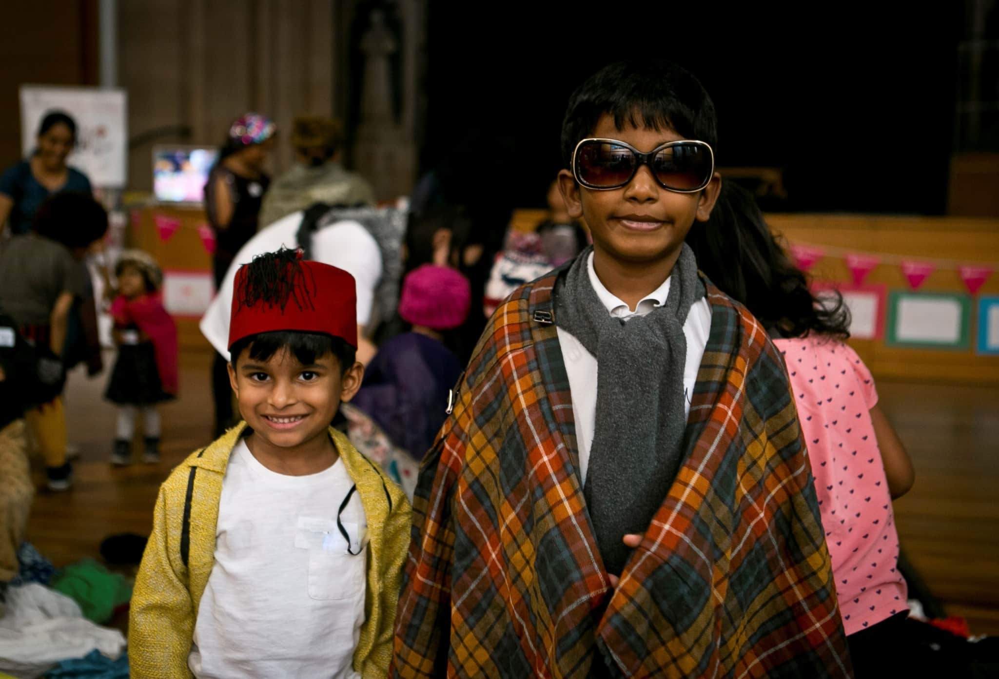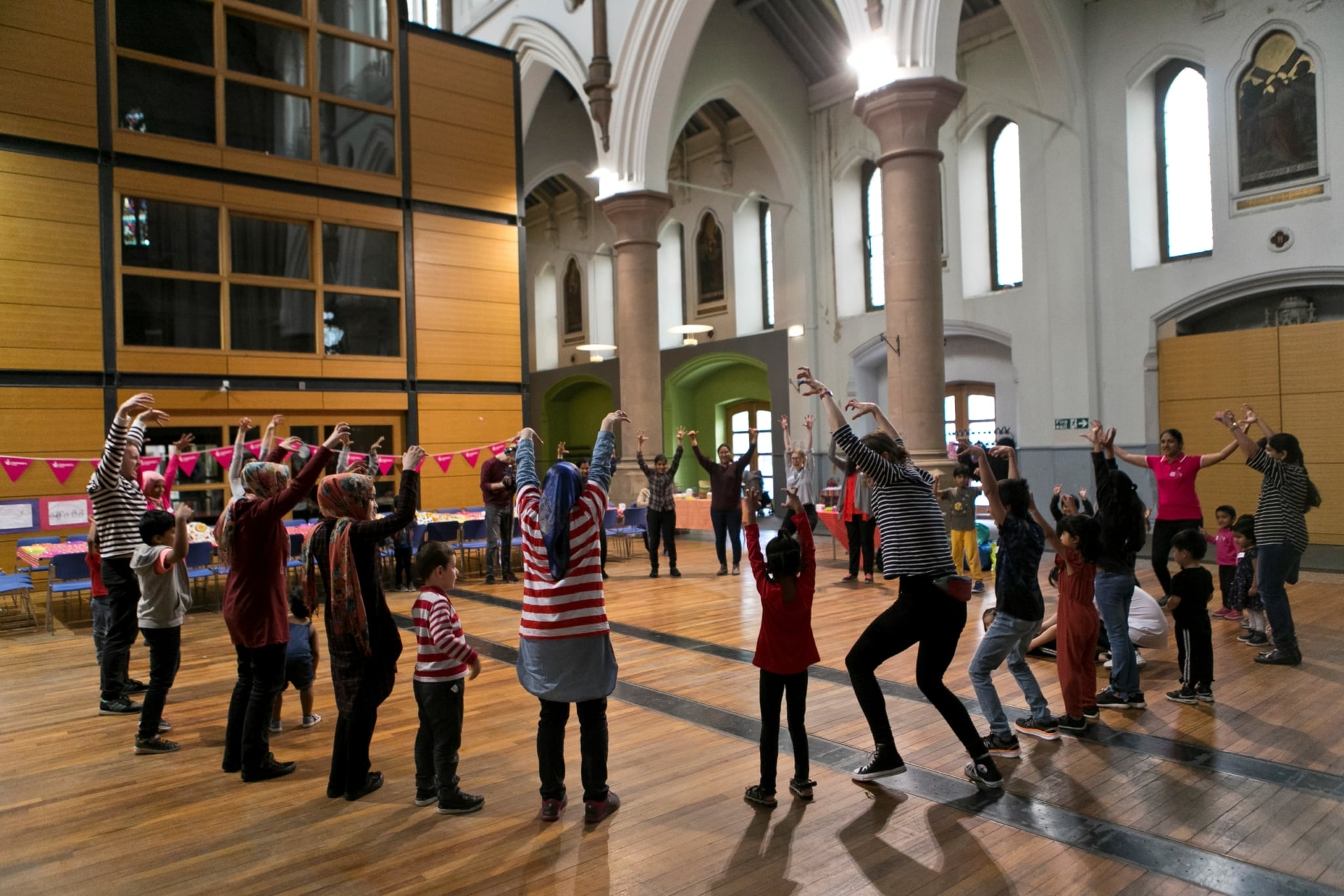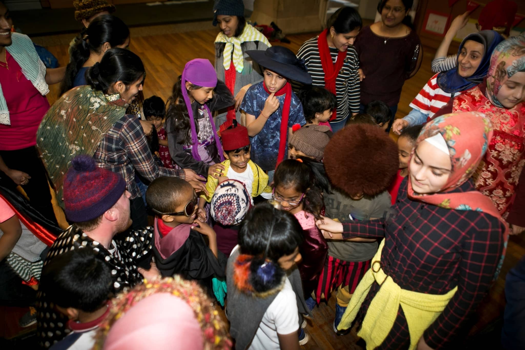 Our last session at the St Francis Centre was a wonderful celebration of what Porridge & Play can be, with families bringing countless delicious things to share in the meal, guests dressing up with the same gusto as everyone else, and big, collective games together in the circle.