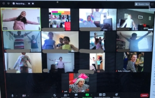 It was a fun to work out everyone’s names and trying to organise that on the funny Zoom boxes! But we managed and we got ready to have a good warm up to wake up our bodies and our minds!