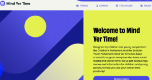 Designed by children and young people from the Children’s Parliament and the Scottish Youth Parliament, Mind Yer Time has been created to support everyone who loves social media and screen time. They’ve got positive tips, stories and information for children and young people, to help you use your screen time positively!