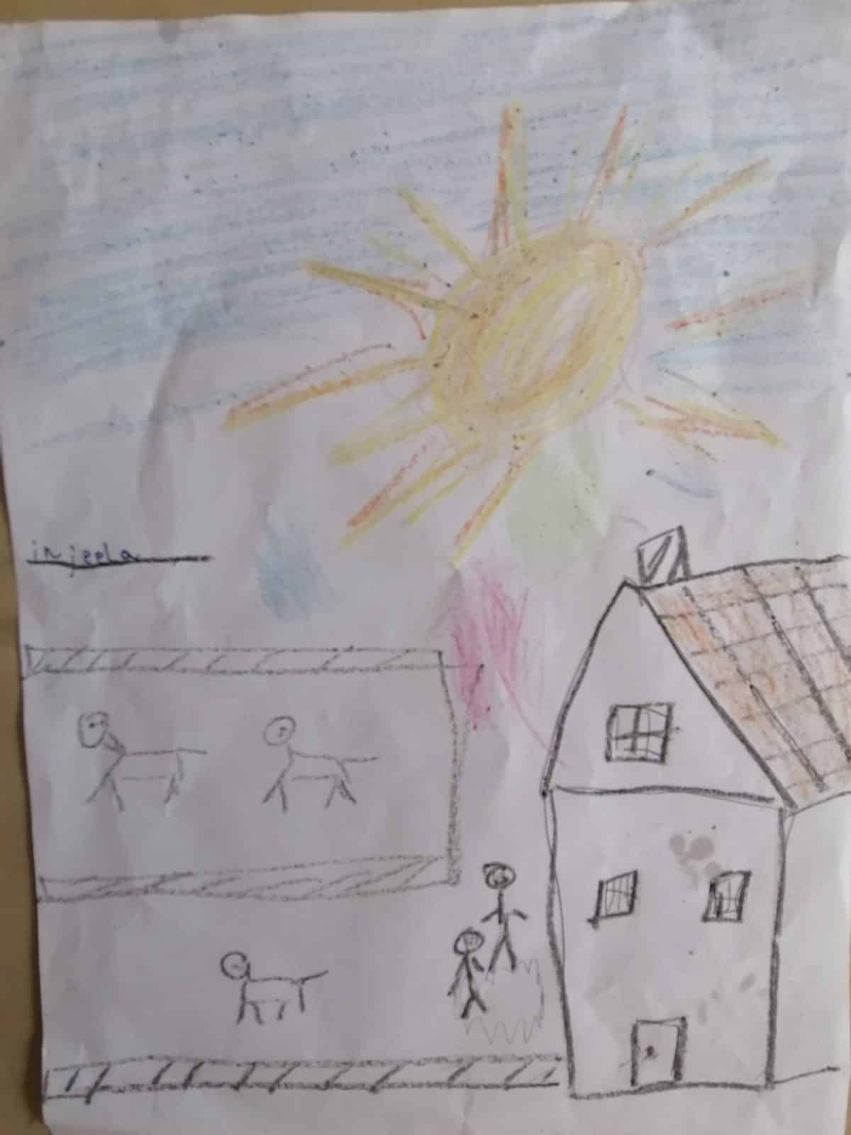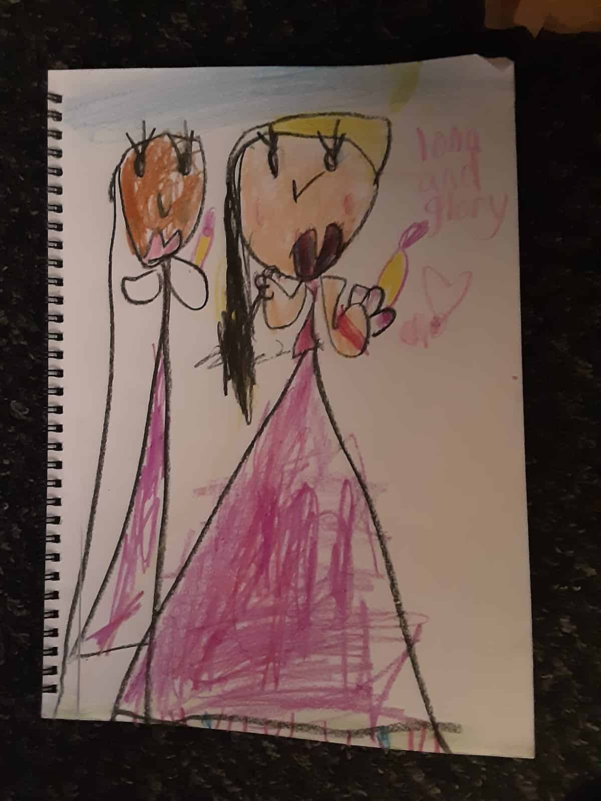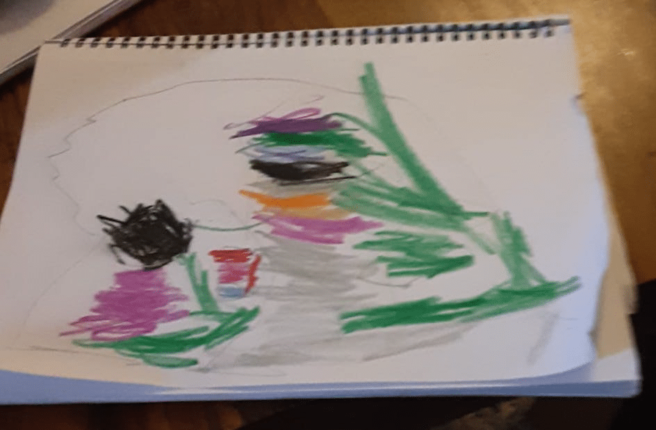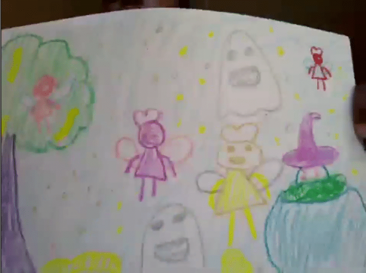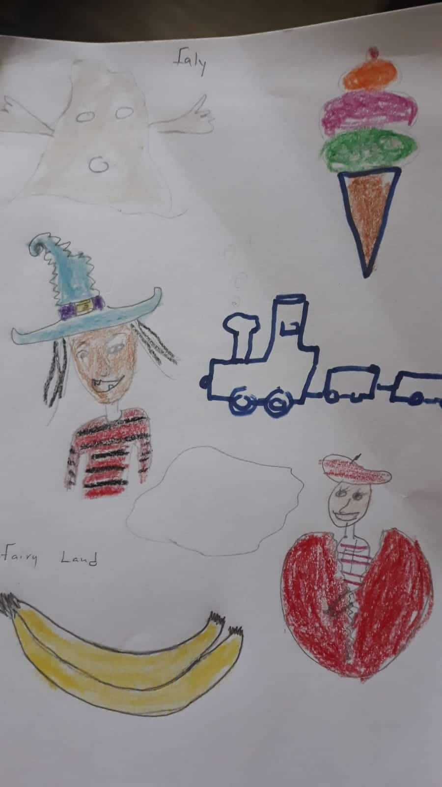🐳 👑 🐉 So we blew it up, and off we went – under the sea, where we met lots of fish, a big pink shark and a lovely friendly whale; to a magic kingdom ruled by King Michris where we had to do a dance to enter; then on the back of a dragon (after cheering him up, because he was sad)!