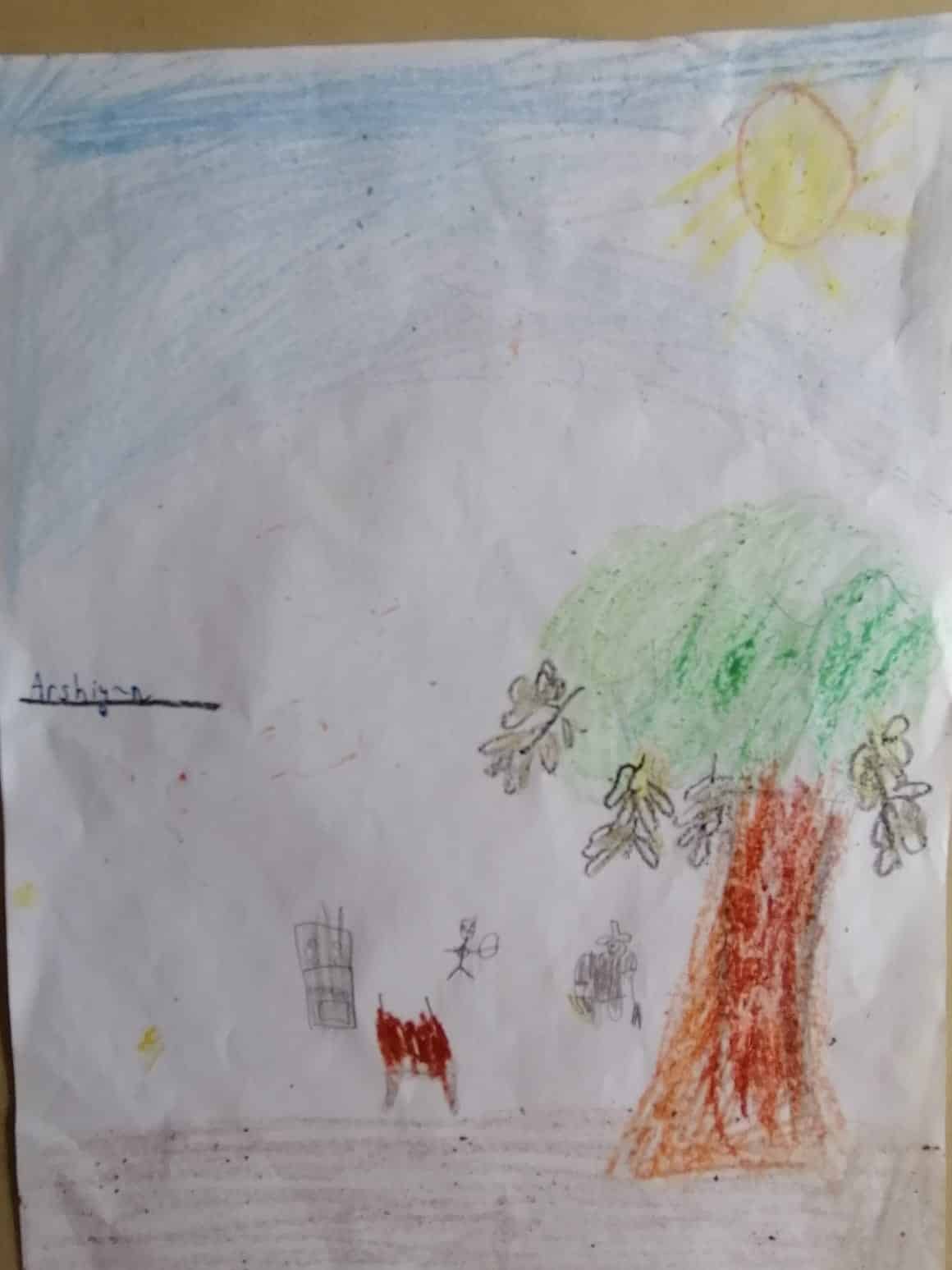 🚂👻🥣 After jumping on some clouds, we ran down a lane, and then took a quick swim in the river – but Ruby came back and said she’d found a GHOST TRAIN! Adesayo was the train driver and showed us all how to drive it, we then we got off – we met Ope the Ghost! Yumna spoke to him in Ghost and asked if we could go to his house… so off we went, and ate some sweet and salty porridge!
