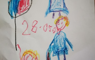 Because it was such a beautiful, clear day, we could see for miles from our Flying Balloons… over Glasgow we saw a great big green ship on the river Clyde, surrounded by multicoloured rocks that looked like gummy bears. Also on the river was an enormous chocolate cake, so we carefully reached down with one hand and grabbed a piece! We then flew back up high and enjoyed our cake while looking out for what else we could see! We saw a school, but no one was in it because of the lockdown! Instead, we saw lots of people in their houses and we waved to them!
