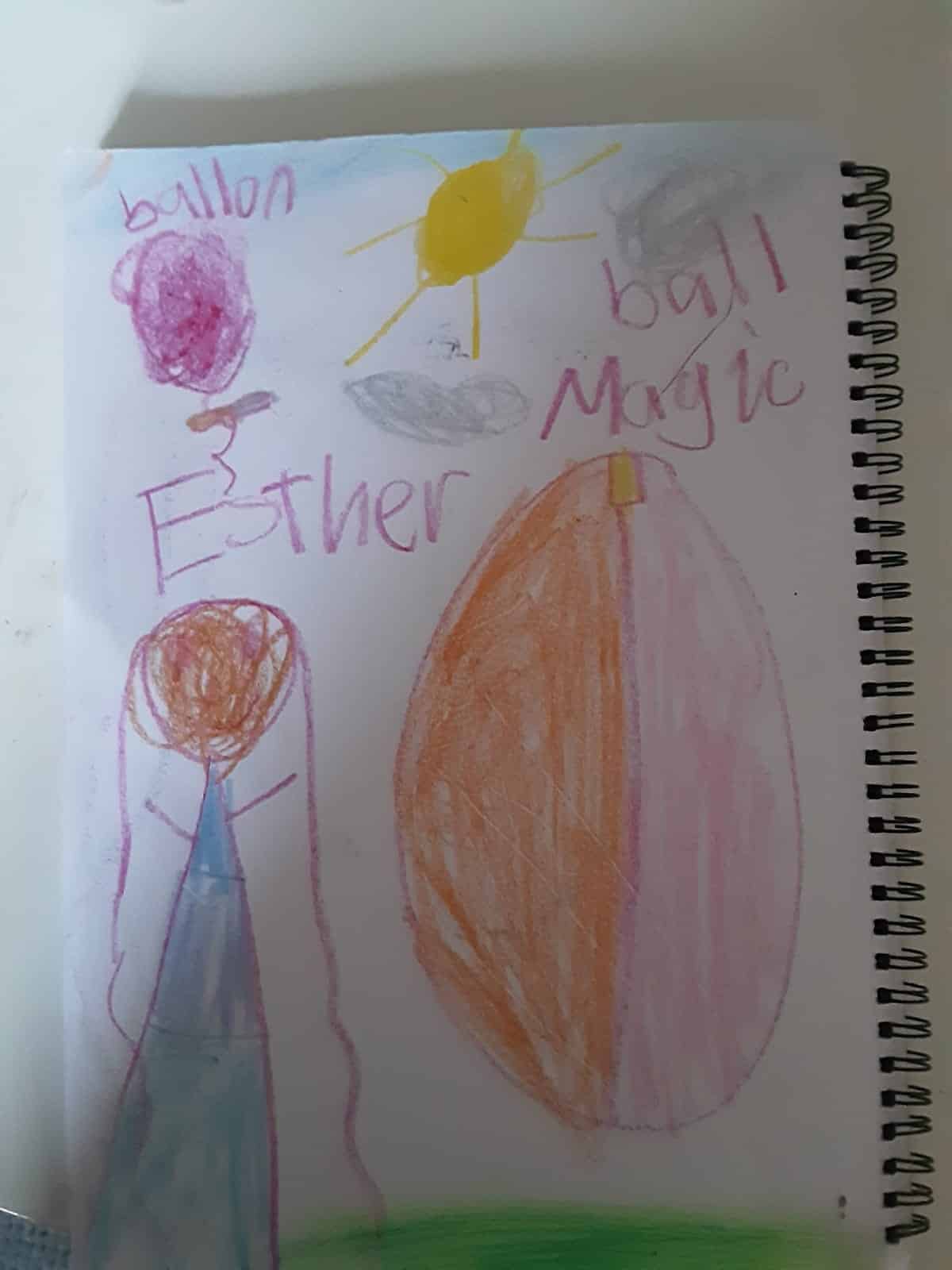 🦖 Our MAGIC BALL trip was filled with adventure! We entered a dark dungeon, spotted a huge dinosaur who had been transformed by Evil Wizard Meerab, saved a princess who lived in a castle, flew into space, landed on the moon, met an alien, and even found a magic potion that managed to turn the Evil Wizard good!