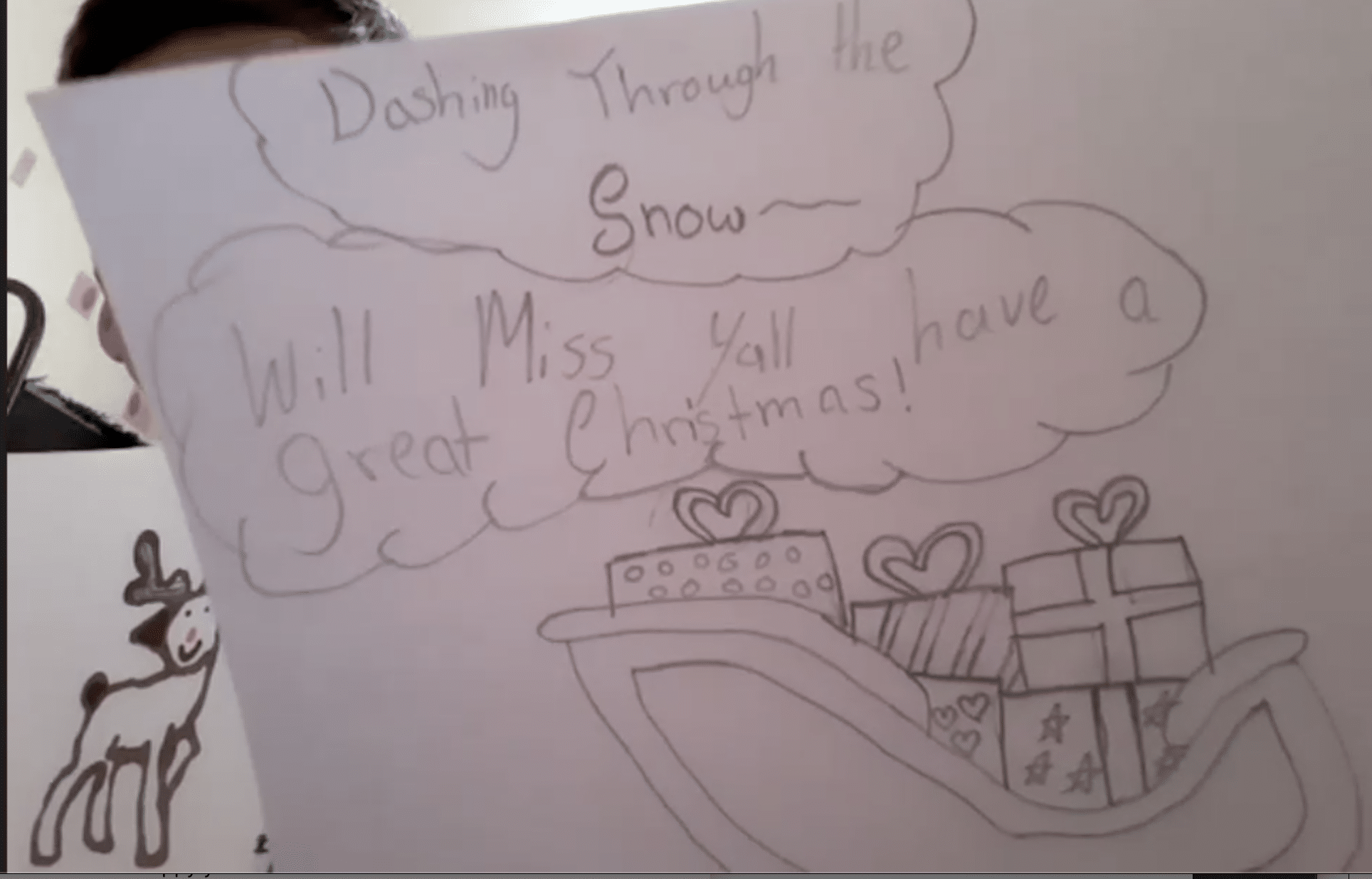 ❄️ In the MAGIC BALL we landed in the biggest snowball fight in the world! We had to take shelter and after a quick ice lolly from Sanjay 🍡, Gyan & Agyei suggested we take shelter in an Igloo! We marched quickly to the igloo but on the way Iona got stuck in the snow so we all had to pull her out! The lovely Igloo lady appeared and invited us in, which involved crawling through a narrow tunnel. We wondered about making a fire to warm up but she thought it might melt the Igloo… eek! Suddenly, out of nowhere, Rudolf appeared (Azaan) with his sister reindeer (Eshal) and he spoke in reindeer language! Luckily Emmanuel understood what he was saying, and translated for us all. 🗣Rudolf was inviting us on his sleigh!!! So off we flew high into the starry night, dropping presents onto the houses below! 🌃