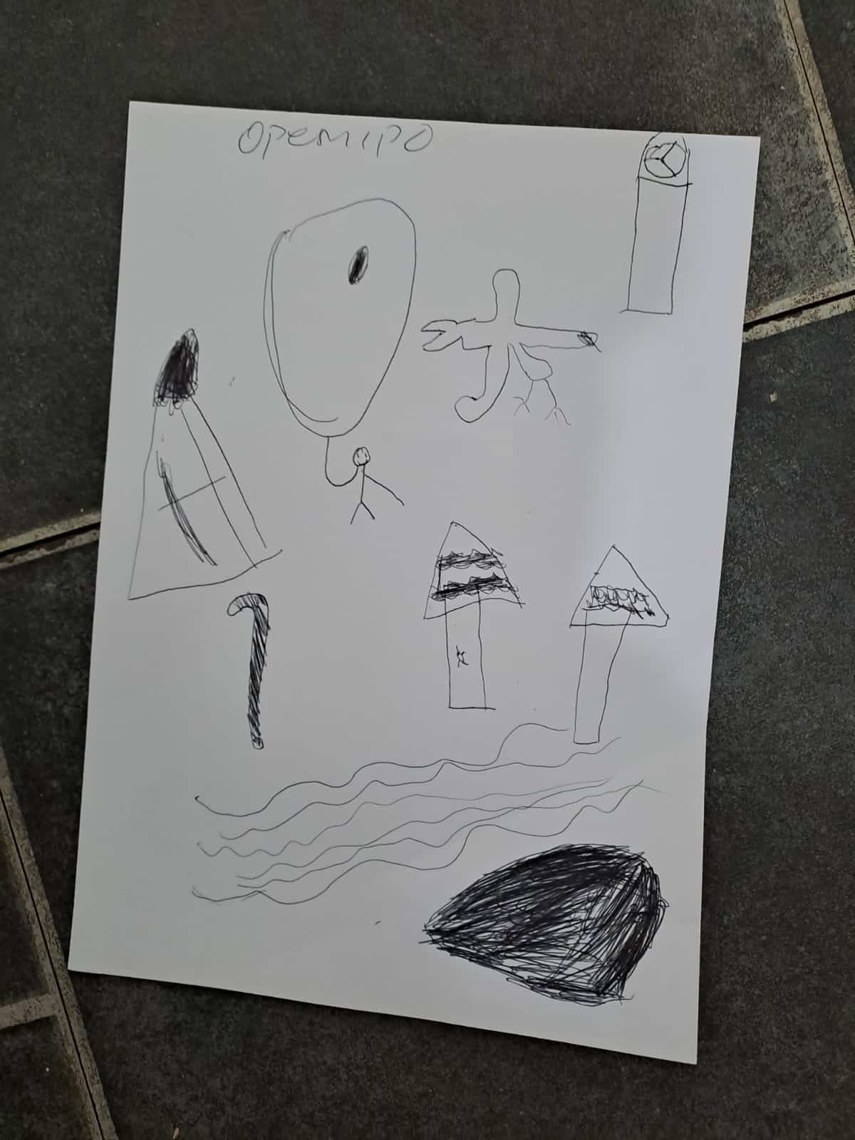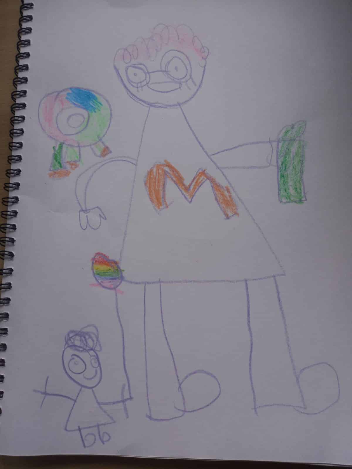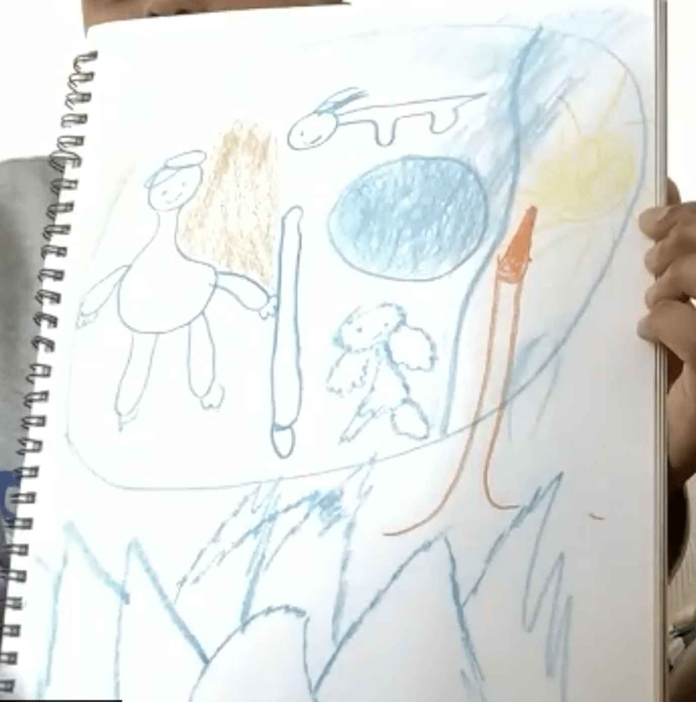 “I’ve drawn Grandma holding her walking stick, I saw a person holding her colourful balloon and I saw a lovely cake! In the balloon I saw a Rapunzel’s castle, she was drinking tea!”