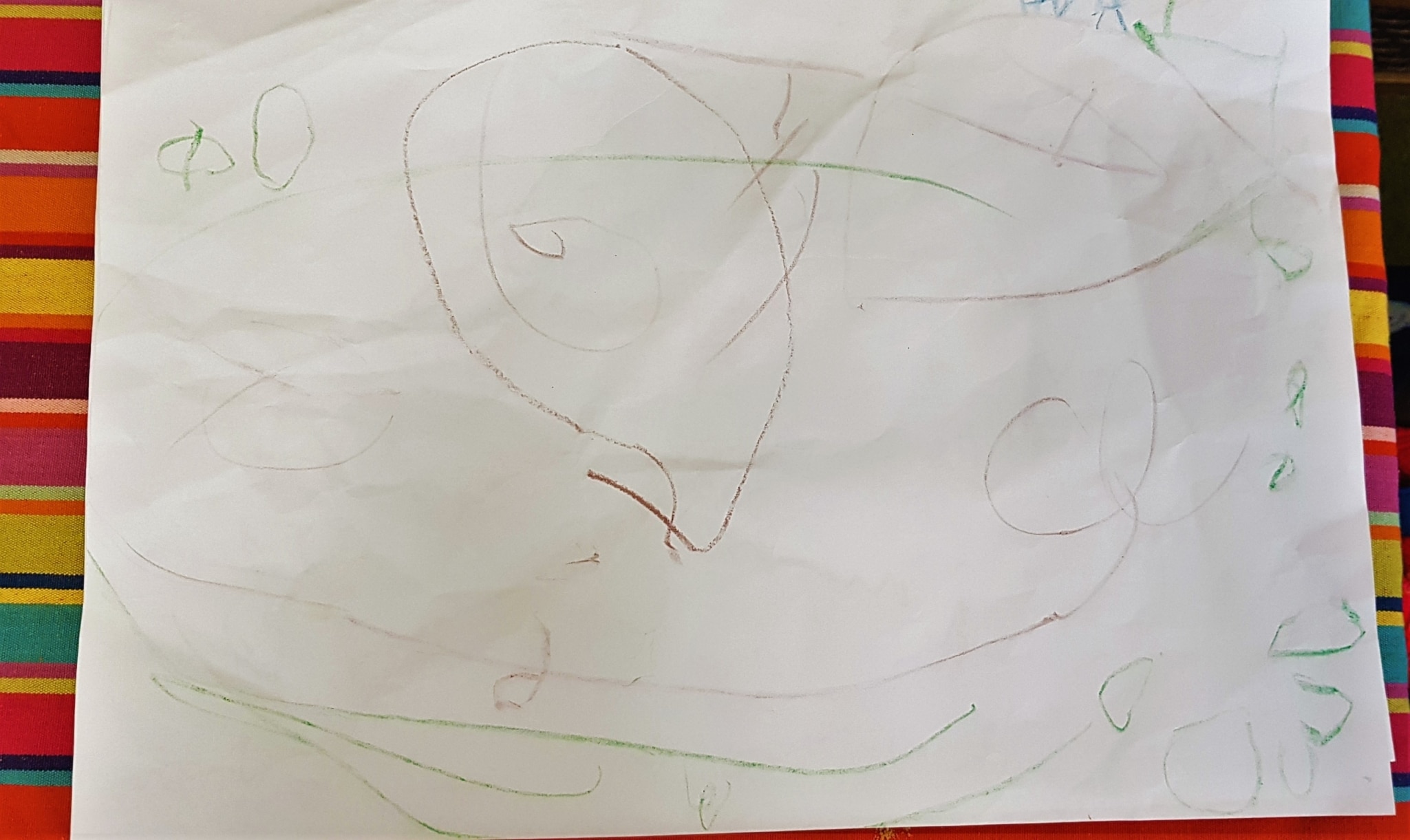 We also created our own story in this session. As you know, every Porridge & Play game can be like a trampoline bounce into making up characters and stories, whether it’s Grandma with her creeping forest of Monster Trees, Mr Wolf and his various watches and different activities every hour, Flying Balloons high over Glasgow together or Magic Ball. These games all fill our heads with ideas, stories and adventures where we can be anyone, go anywhere and do anything – and we do! All we need to play is each other!