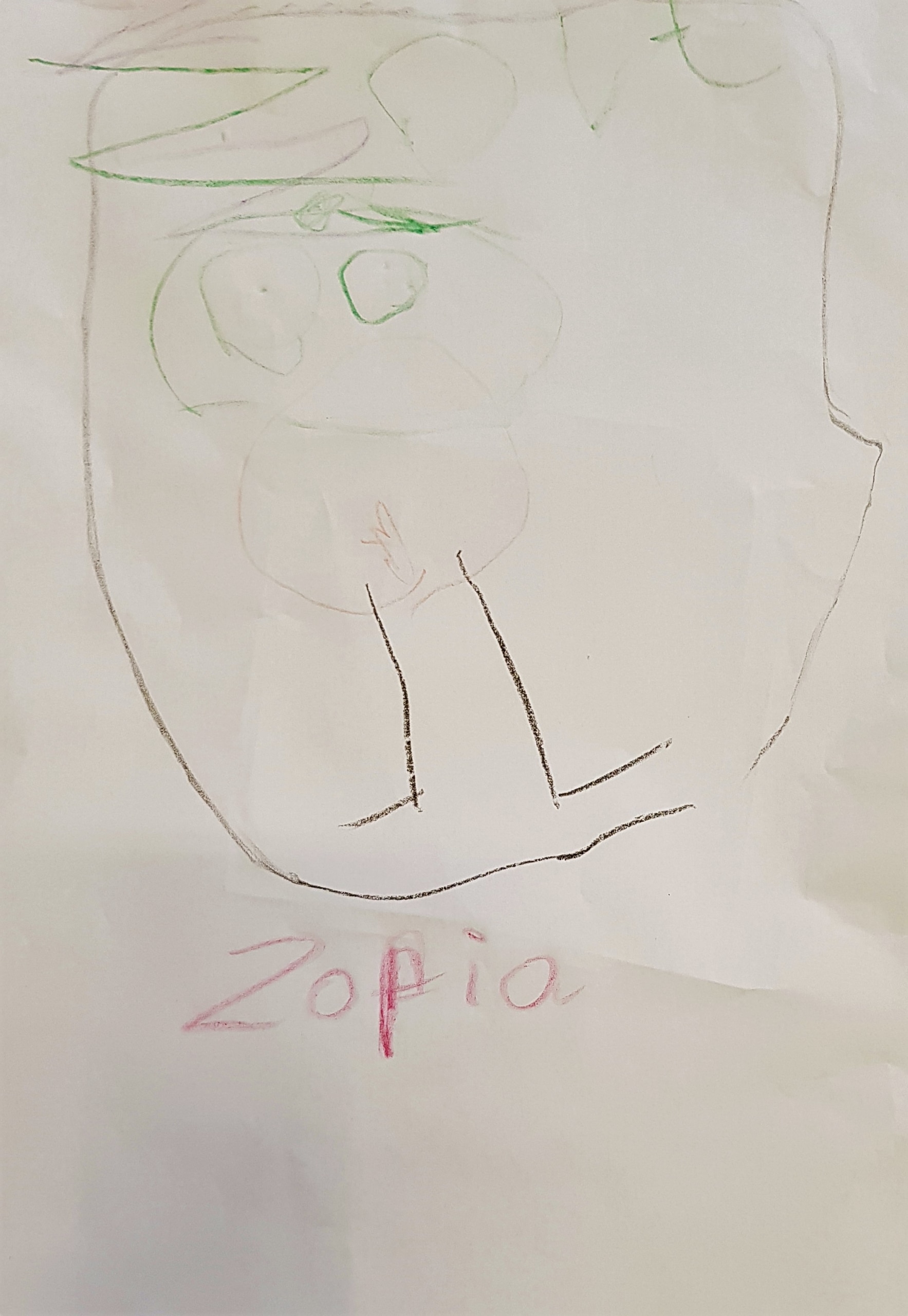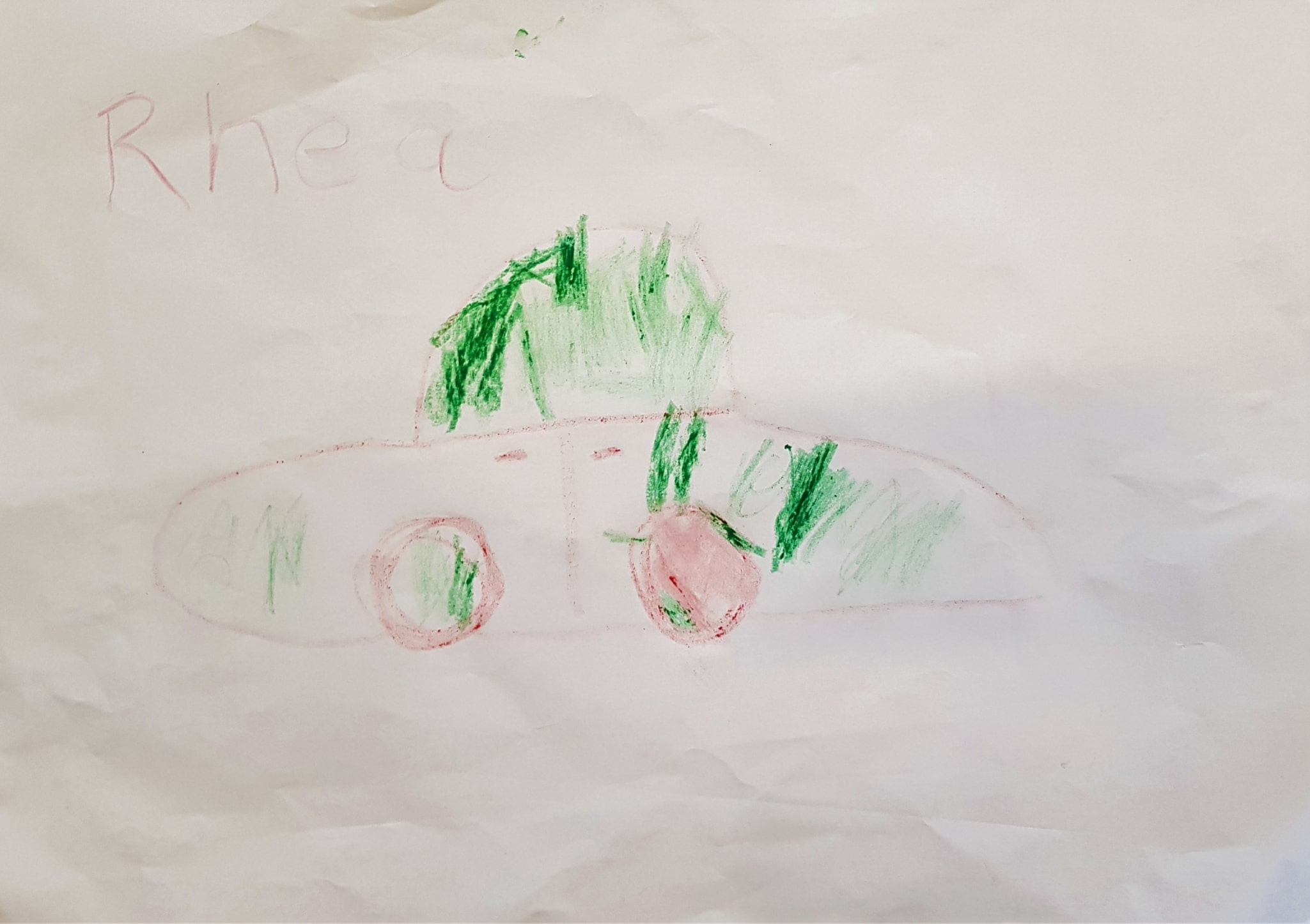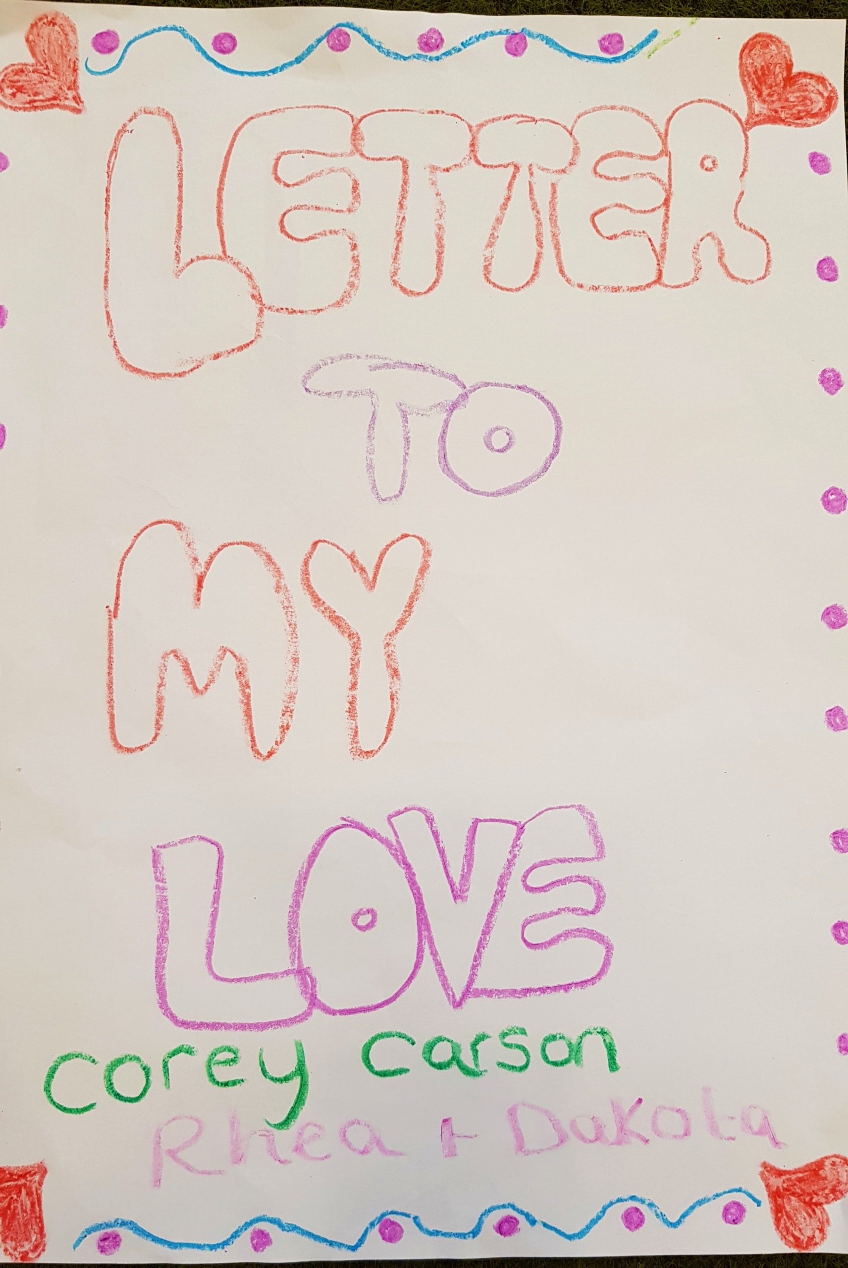 “A picture of R, purple, red and green colours for her hair and witches fingers on the back.” (Child, 4)