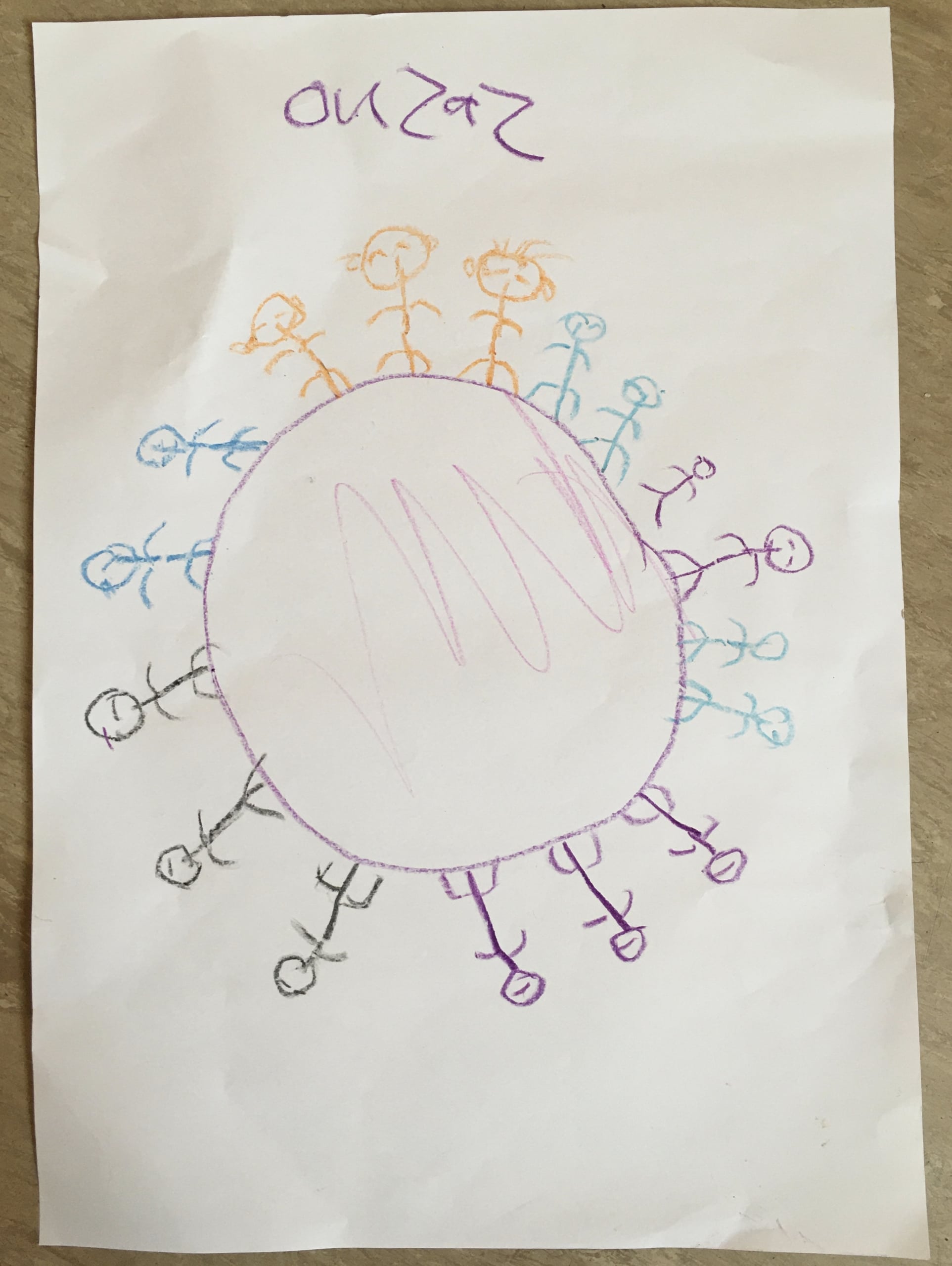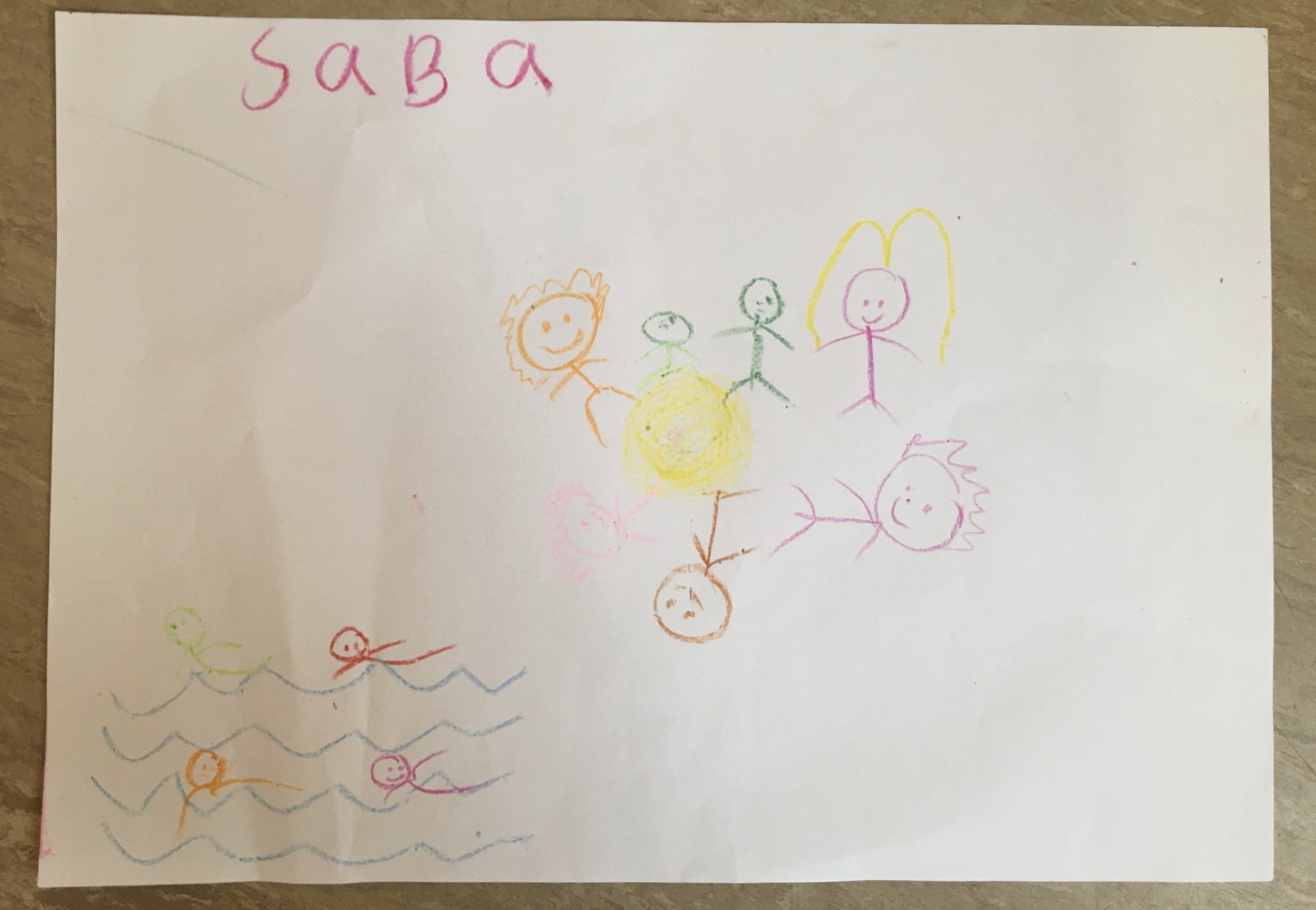 ‘I made a magic ball and we all played around it and we went to the beach and we went swimming in the sea’