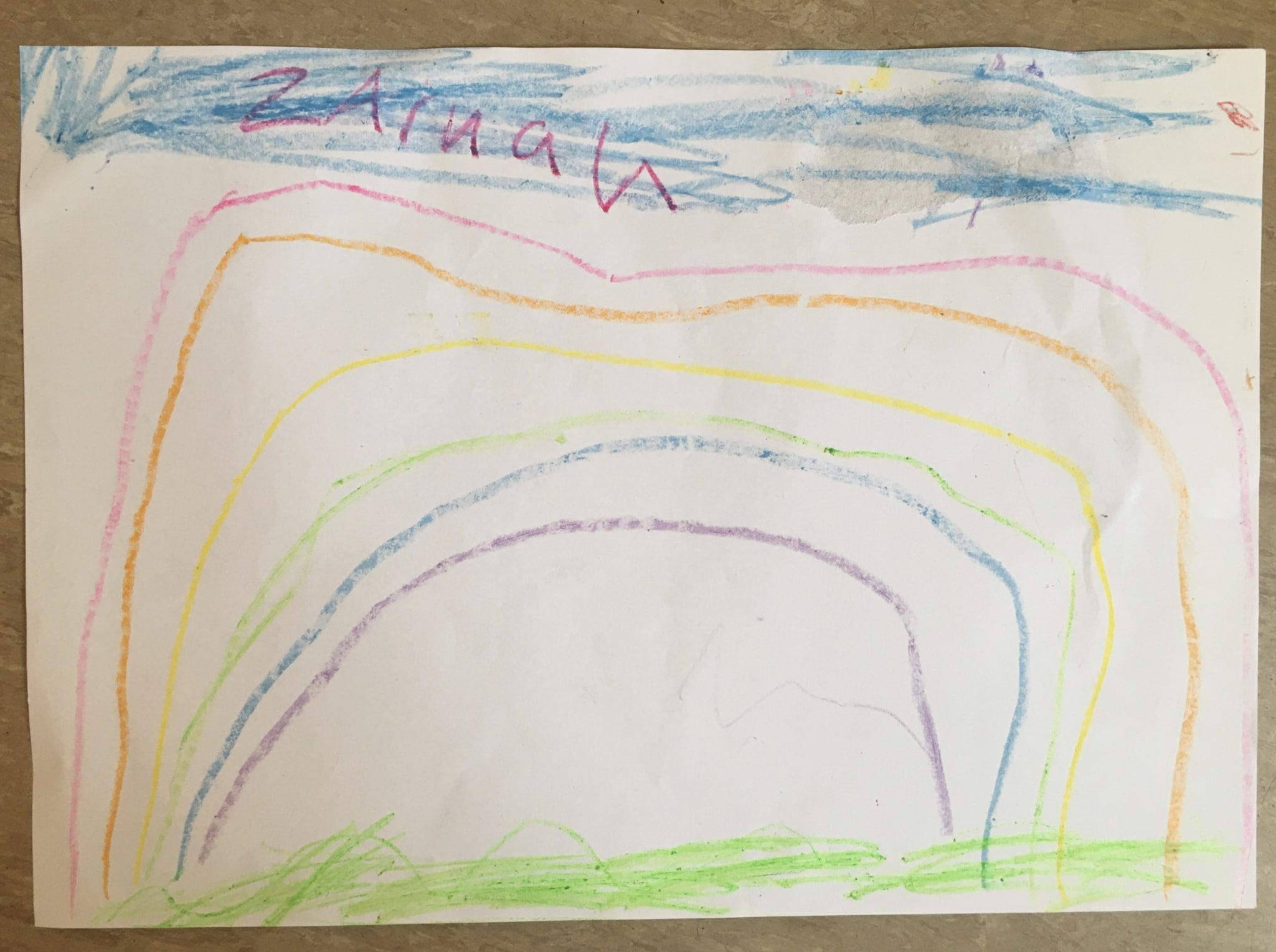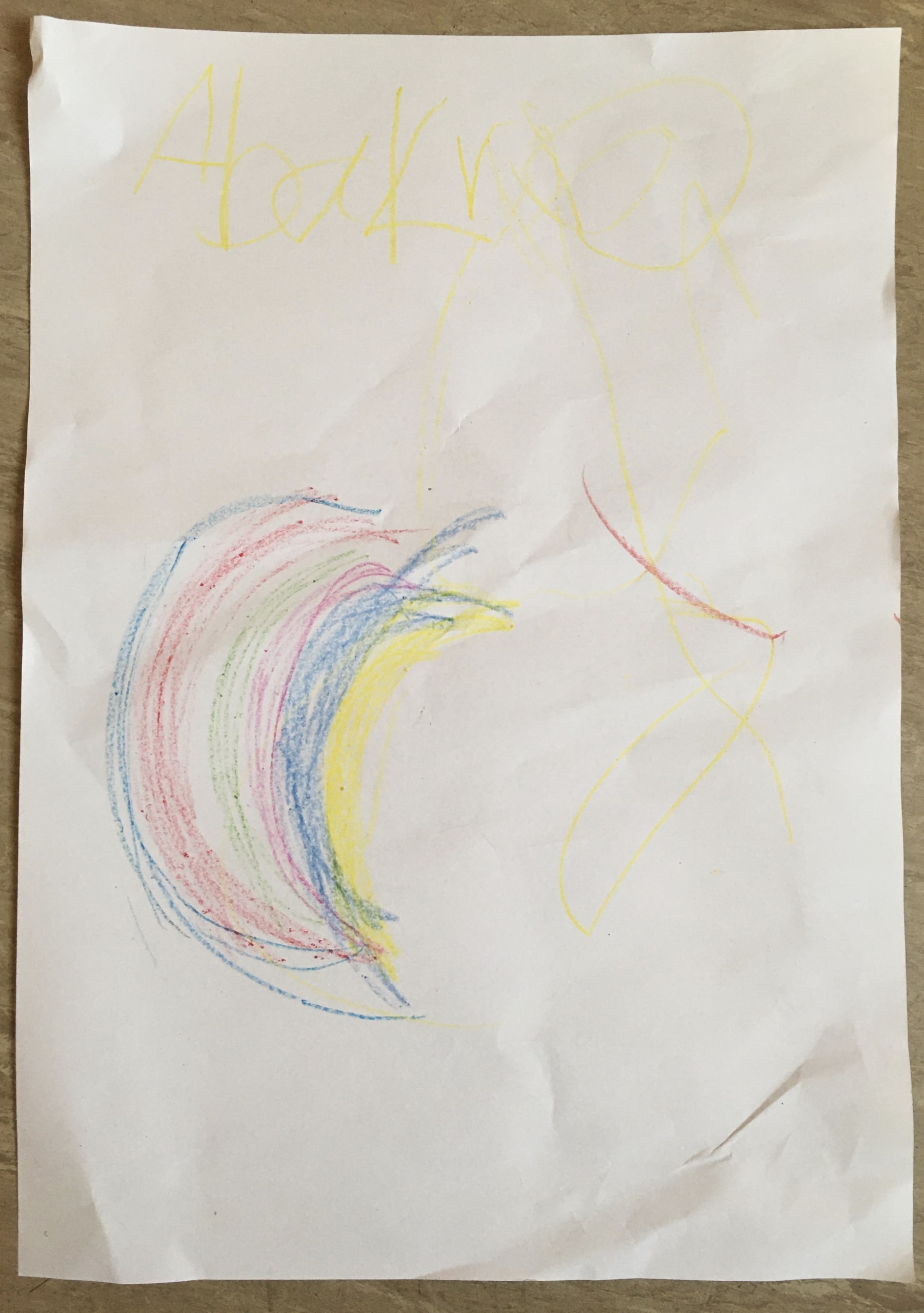 ‘A rainbow. On the beach we saw the rainbow’Favourite part – dressing up