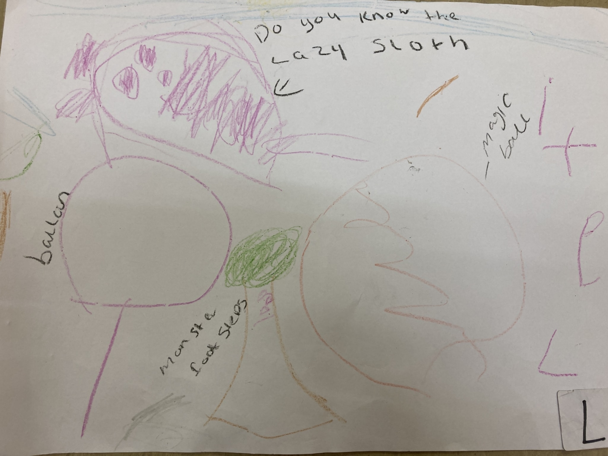 We met some interesting grannies! We met Granny Pumpkinseed (Cami) who lives in the supermarket and likes making porridge. Granny Zainah who lives in a castle told us her favourite food is cereal. Granny Dua and Granny Dinosaur (Soba & Yaseen) said they live in the trees and make tree houses, tree castles and tree noodles! It must be a lot of work turning trees into all of those! Next we met Granny Sola who lives in the forest. She plays with dancing snowmen – she must be using magic to get those snowmen to dance!