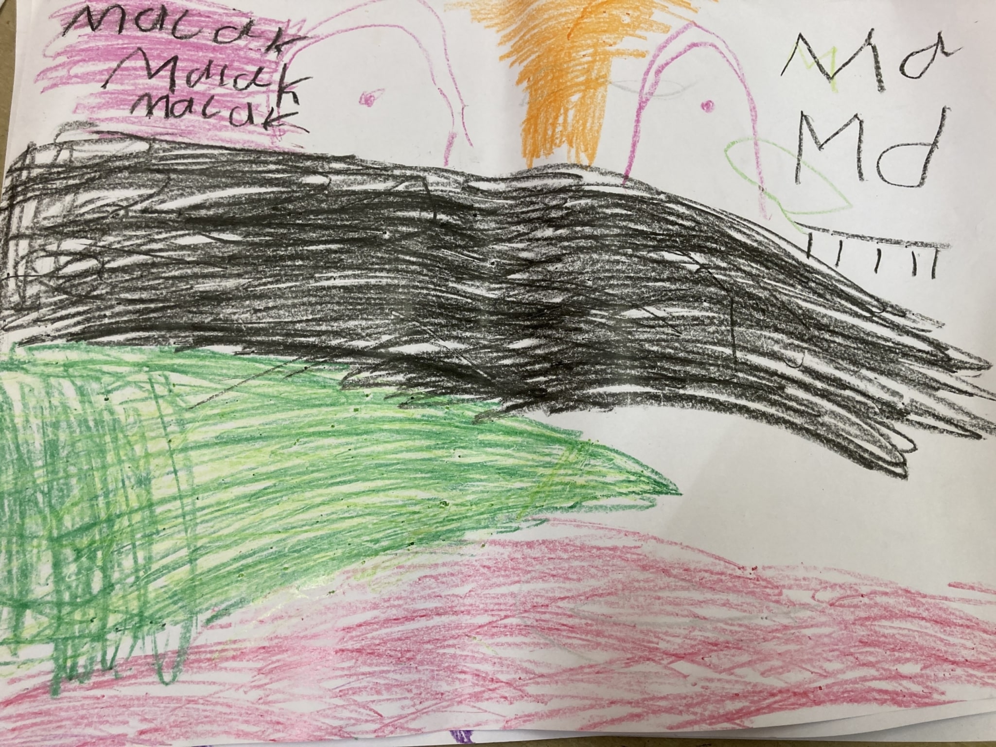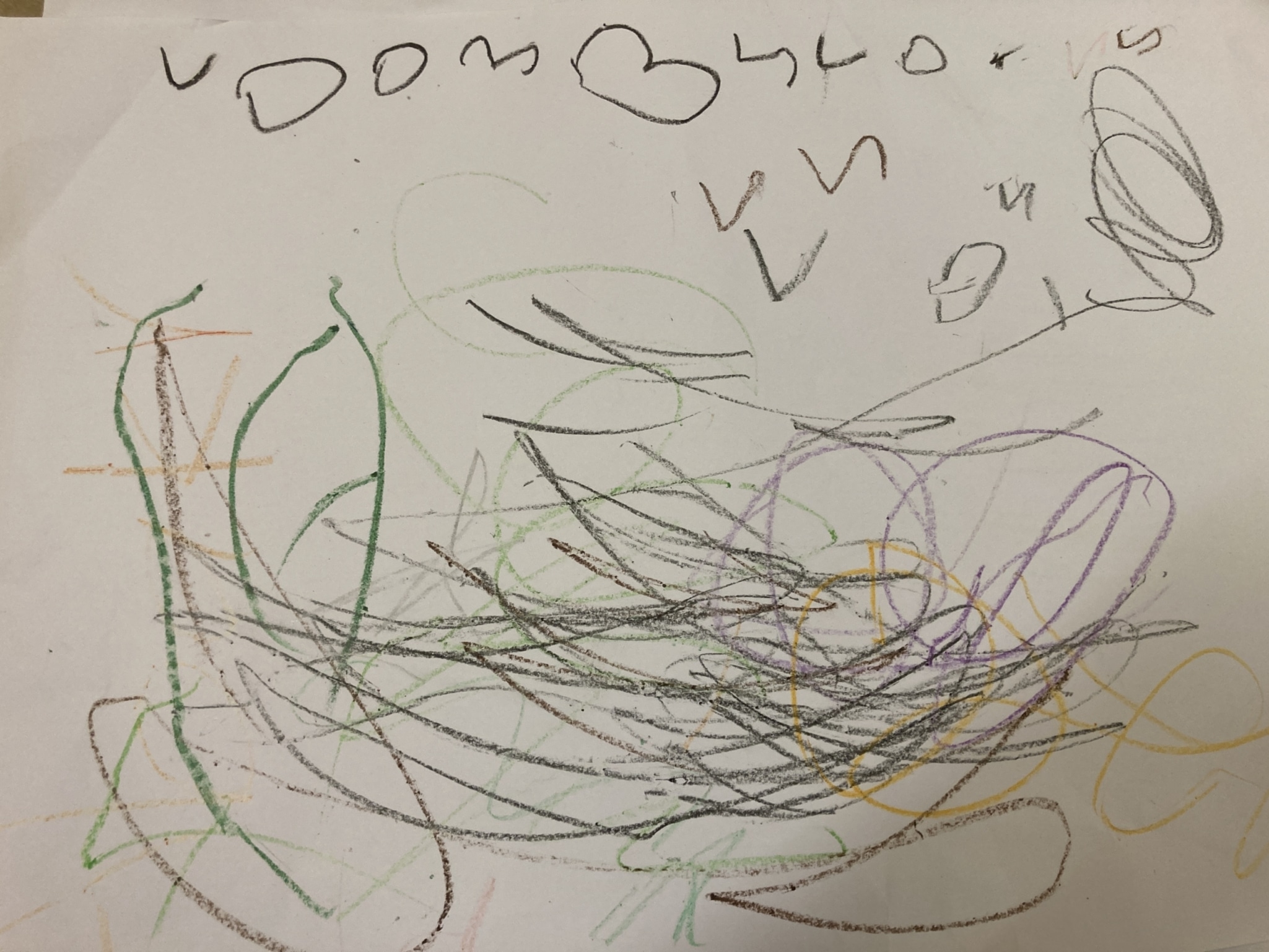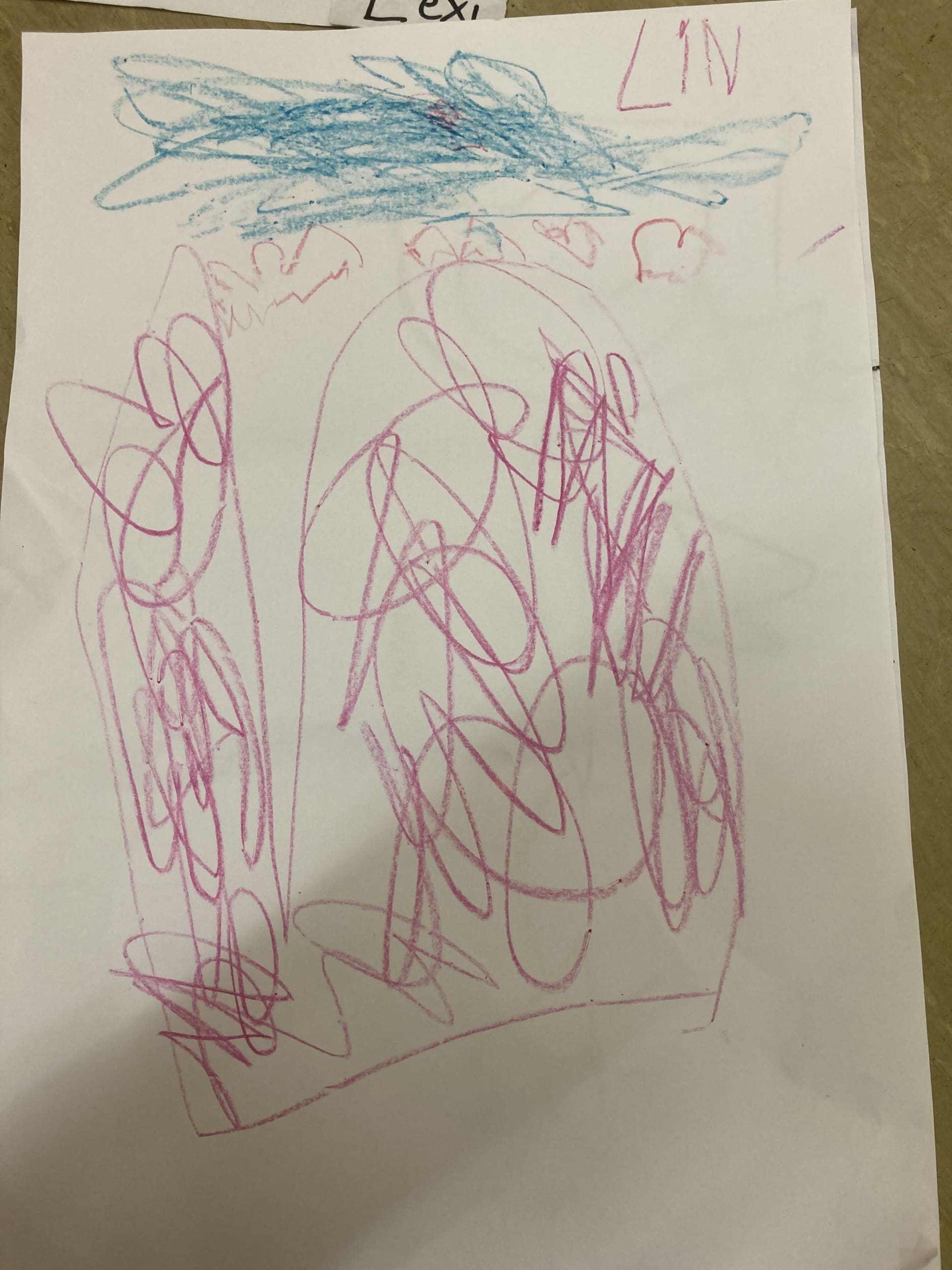 ‘I drawed space. It’s a rocket and the sun and the moon’
