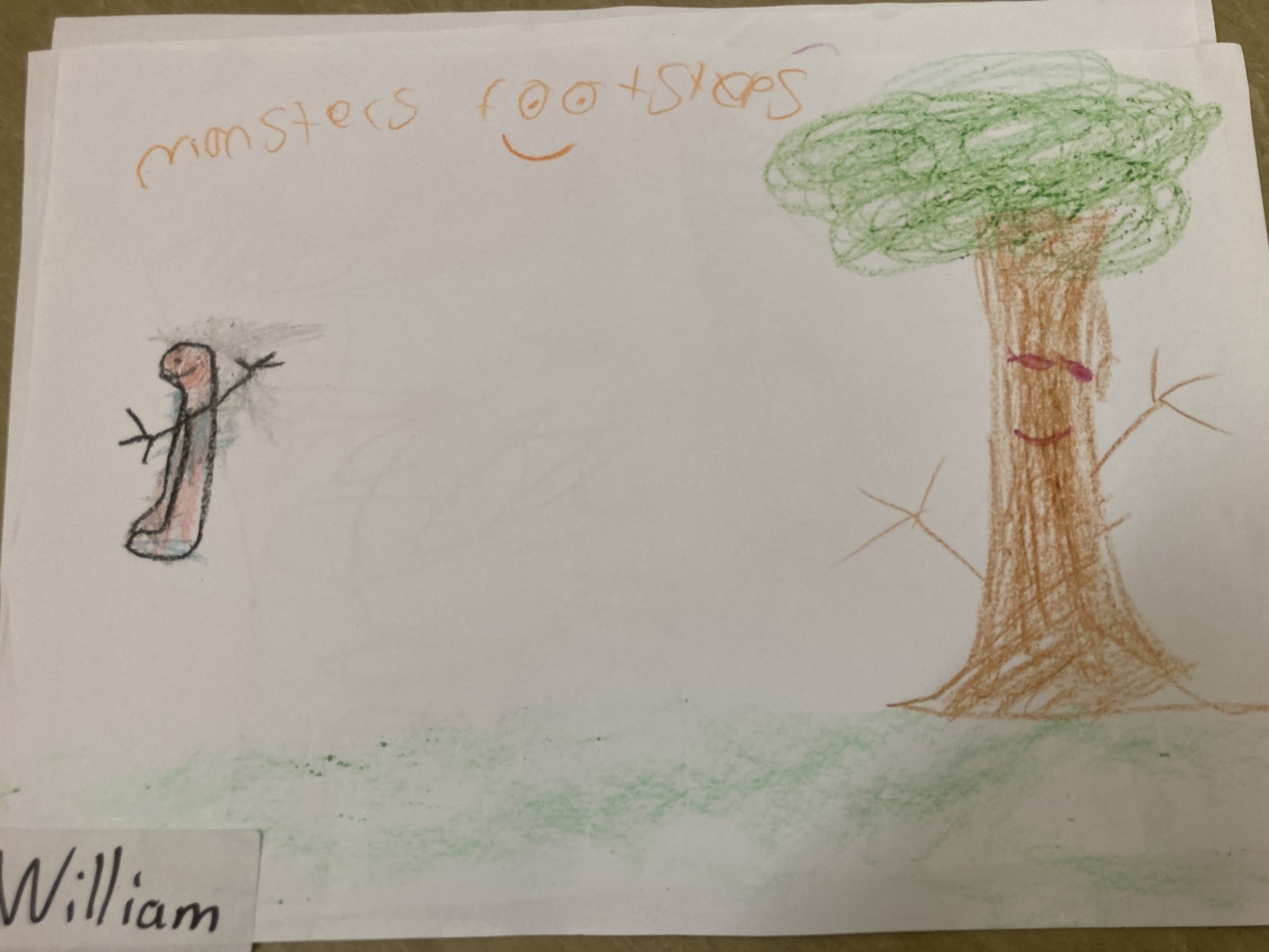 ‘It’s the monsters footsteps. The monster tree and granny. The trees must be still when the granny’s looking when she’s not looking the monsters can move’