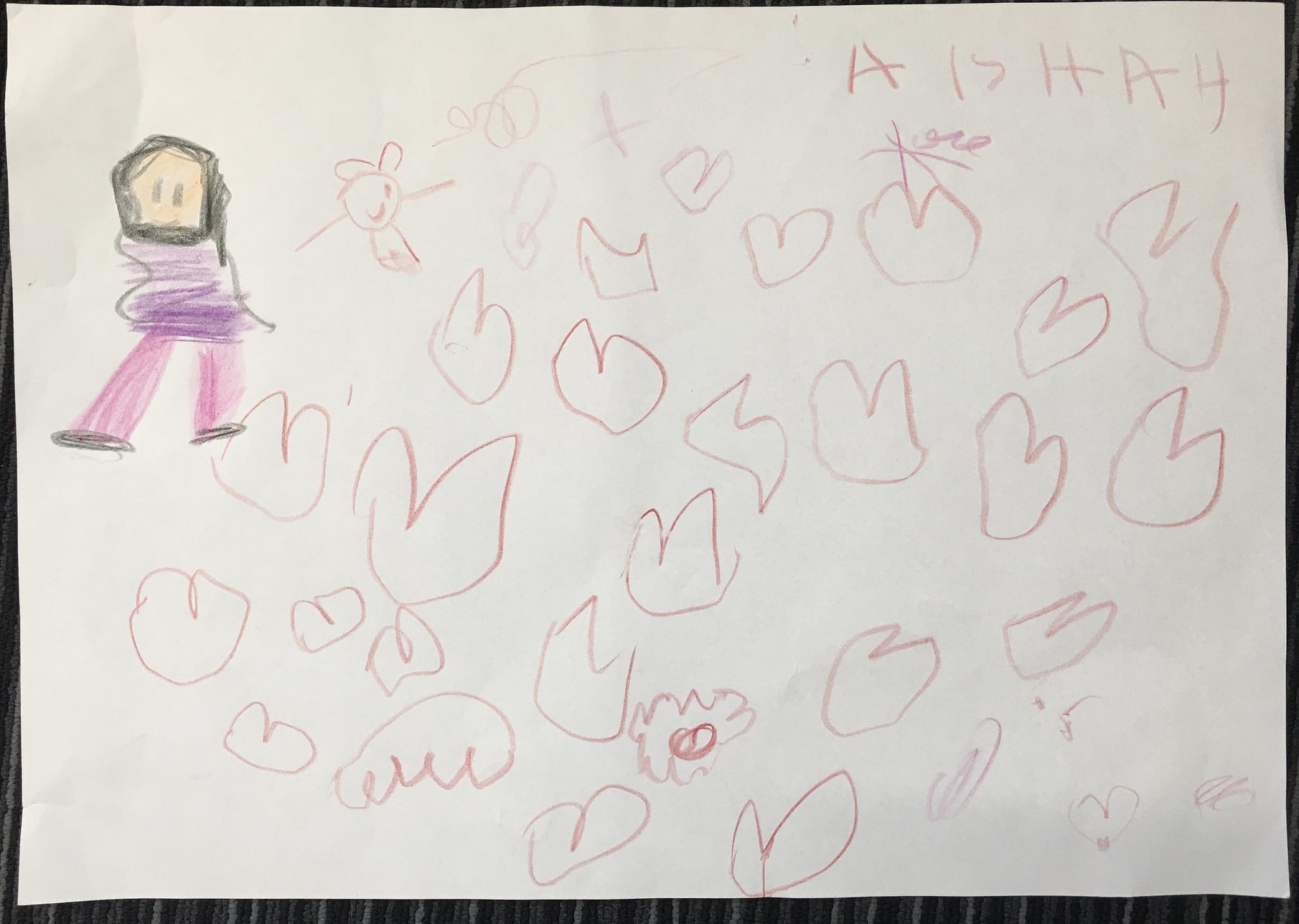 First we were very afraid and shouted out “Stop annoying us!”, then we considered some bug spray, but the spider did actually seem a bit scared of us, so we couldn’t do that, then Sayeda finally came up with the plan of making friends with the spider! Well, it turned out the spider was a lovely creature and Abu was able to speak in Spidery (The language of spiders), so he found out that she was very kind and wanted to give us all some chocolate!