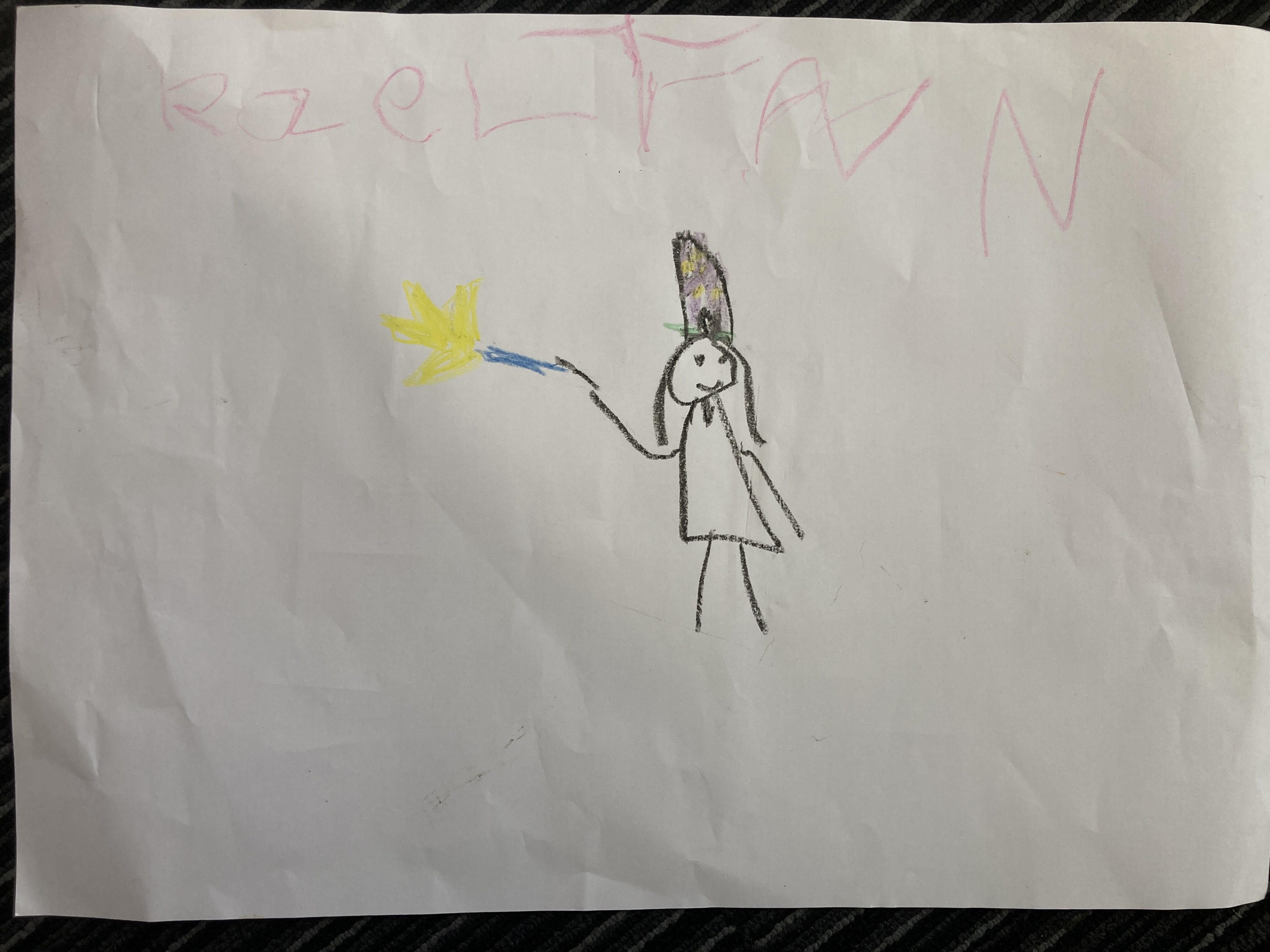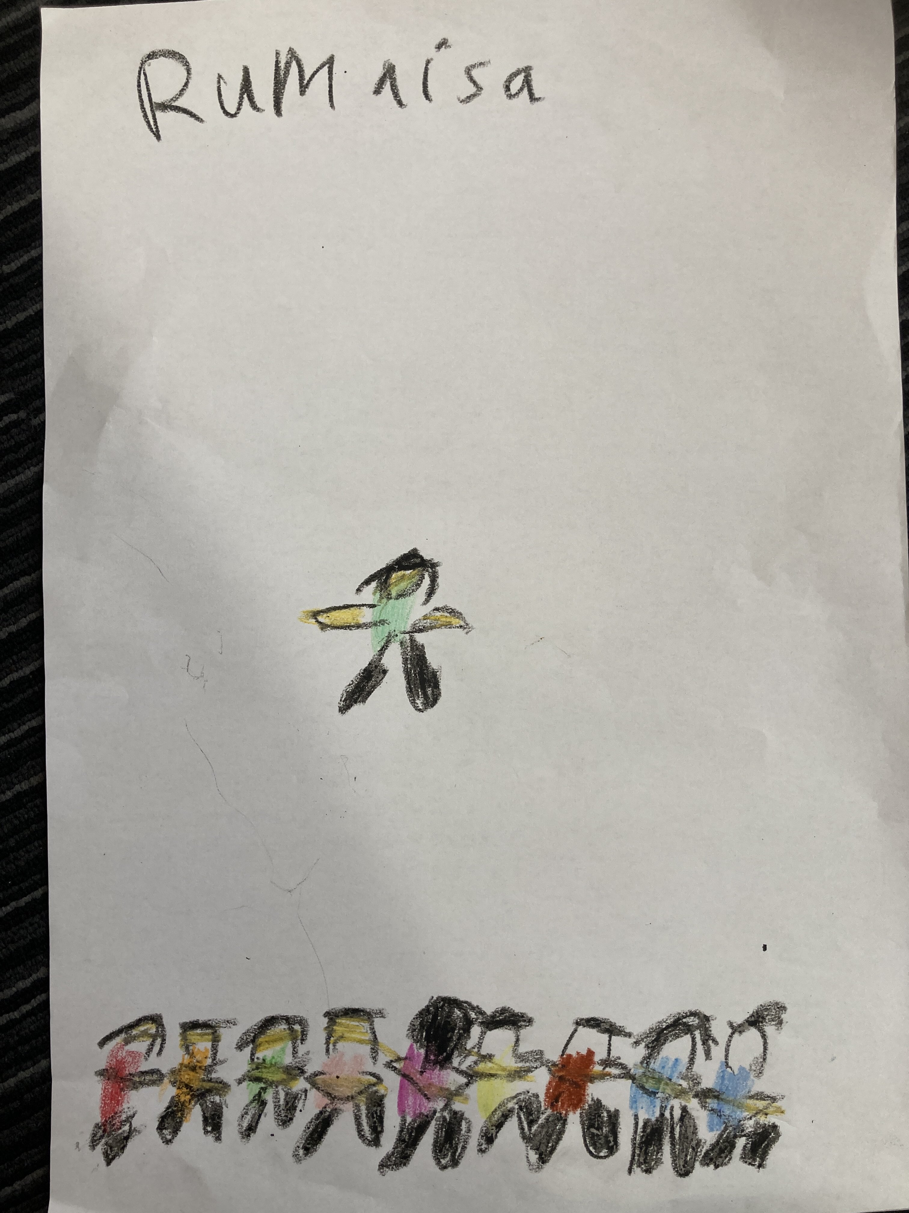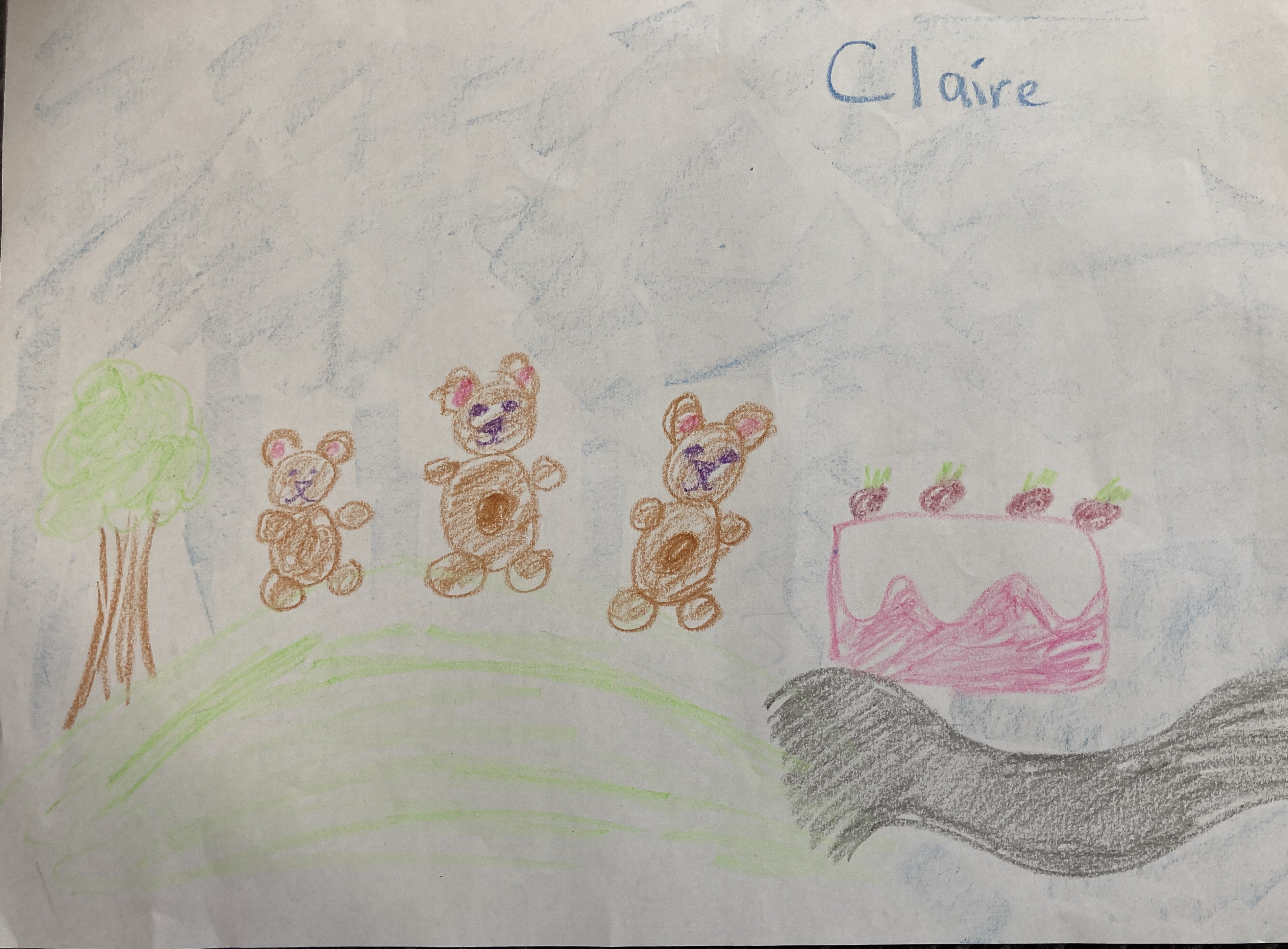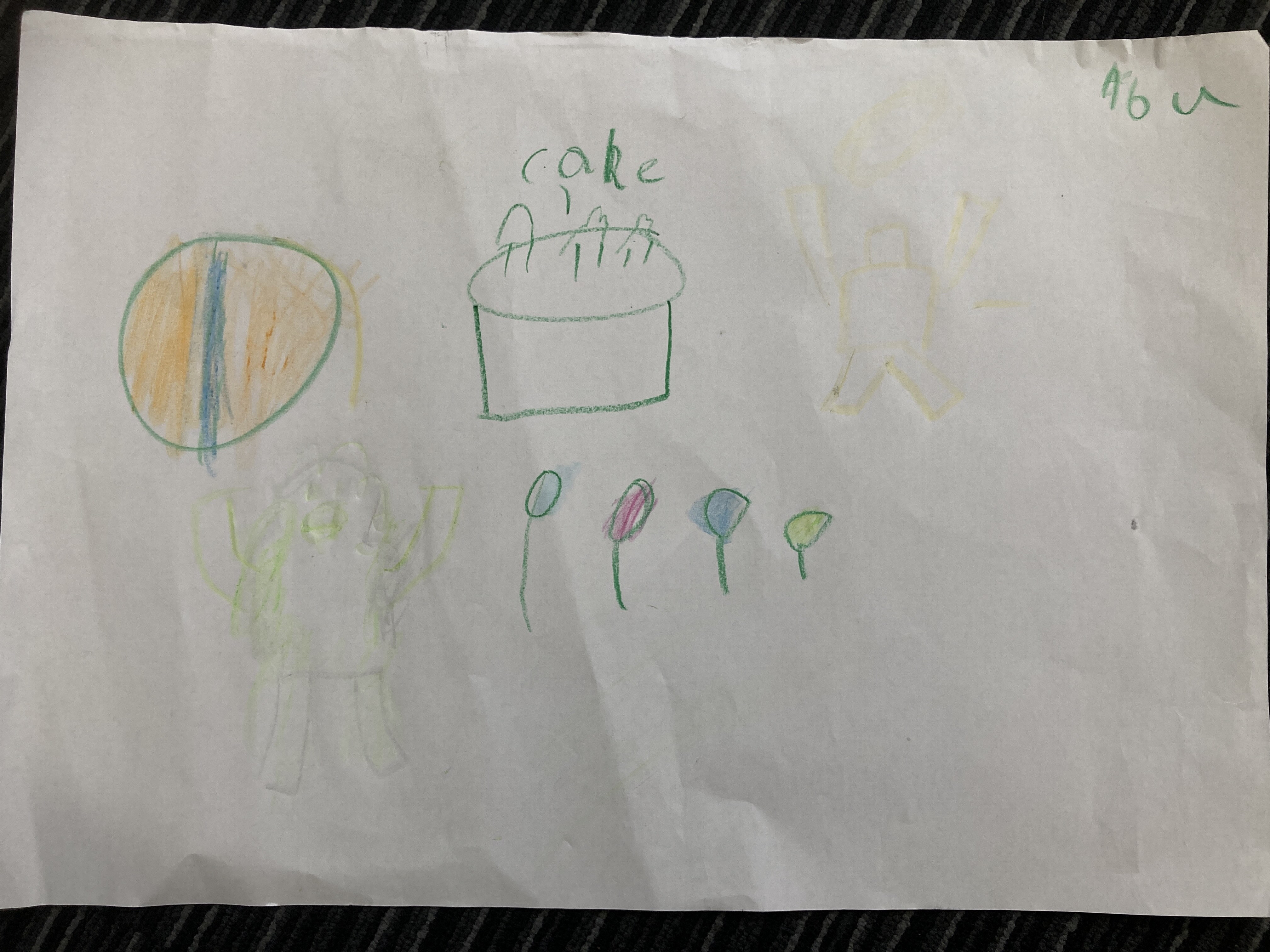 This is the balloon and this is me my mum made me and I made a flower and I draw a heart and I also draw a cake, my mum drew the cake and I did one light and the fires. Fave – the play the bears. I also liked the witches