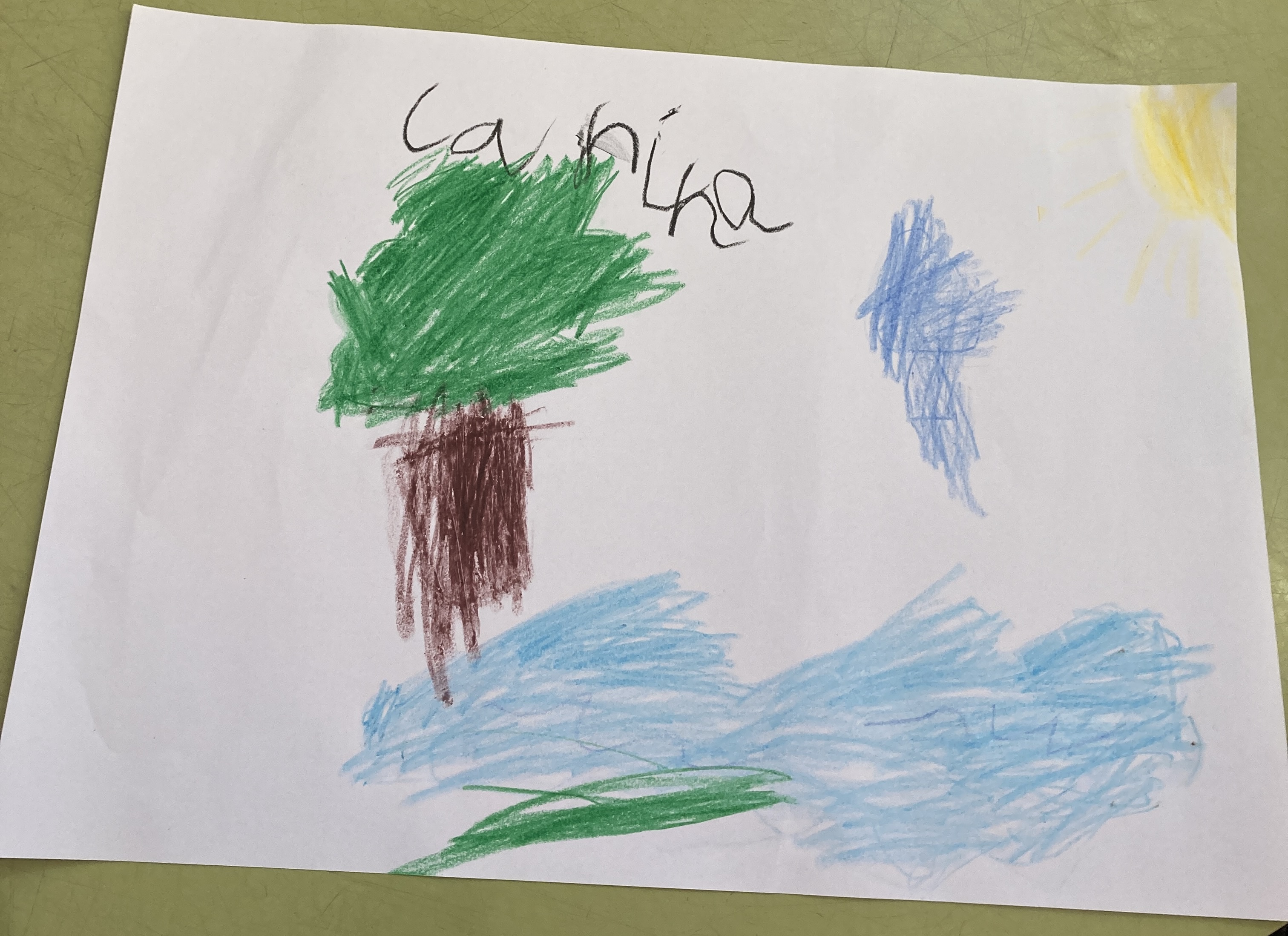 That’s us when we were walking. That’s Ms Mclachlin, that’s me, that’s Carina and that’s Daddy up there. I liked going to the woods.