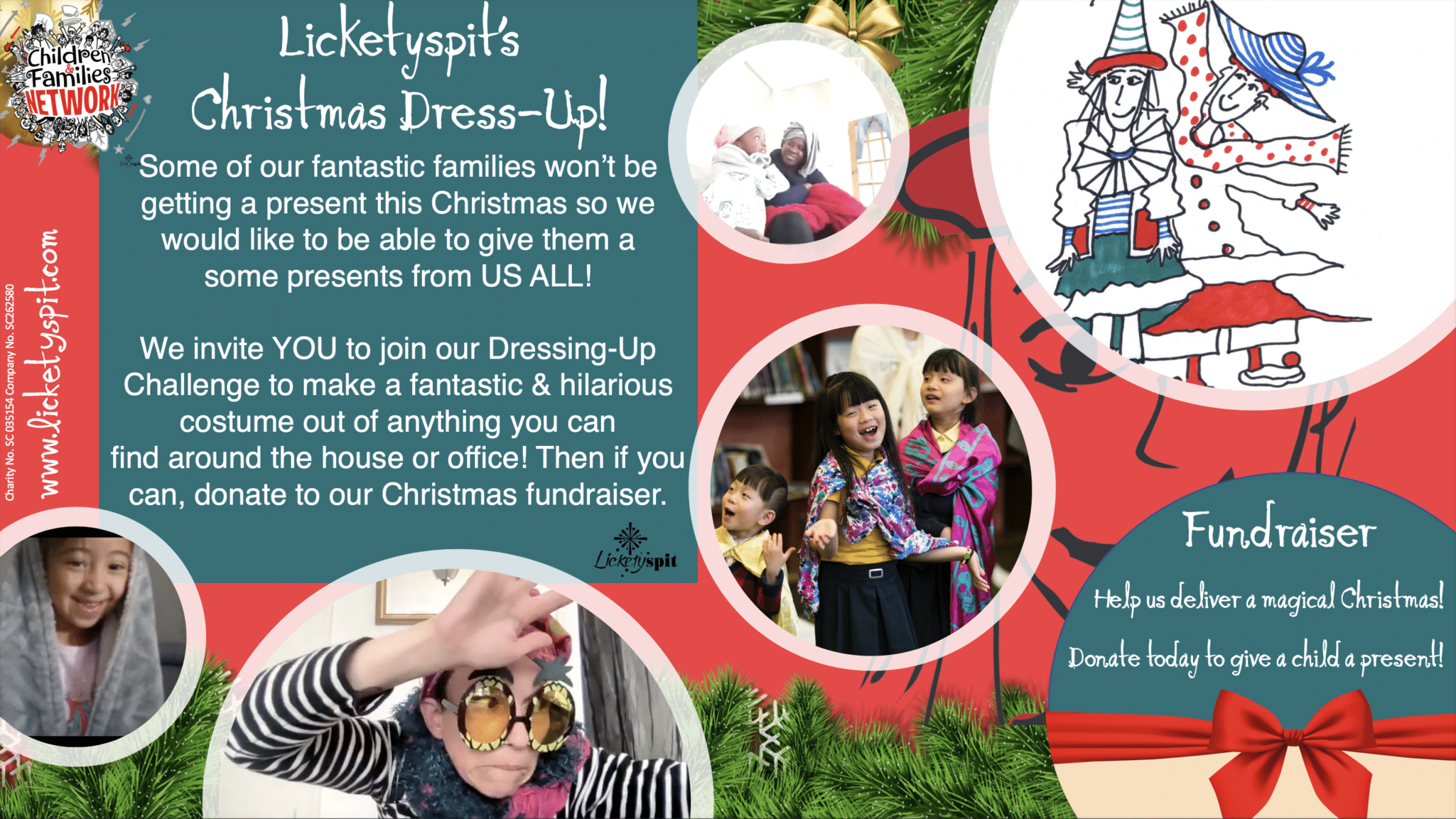 1) Dress yourself up in a fantastic & hilarious costume made out of anything you can find around the house or office!2) Take a picture and share it with us tagging @LicketyTweet or Licketyspit on Facebook with the #xmasdressup3) if you can, donate to our Christmas fundraiser here.
