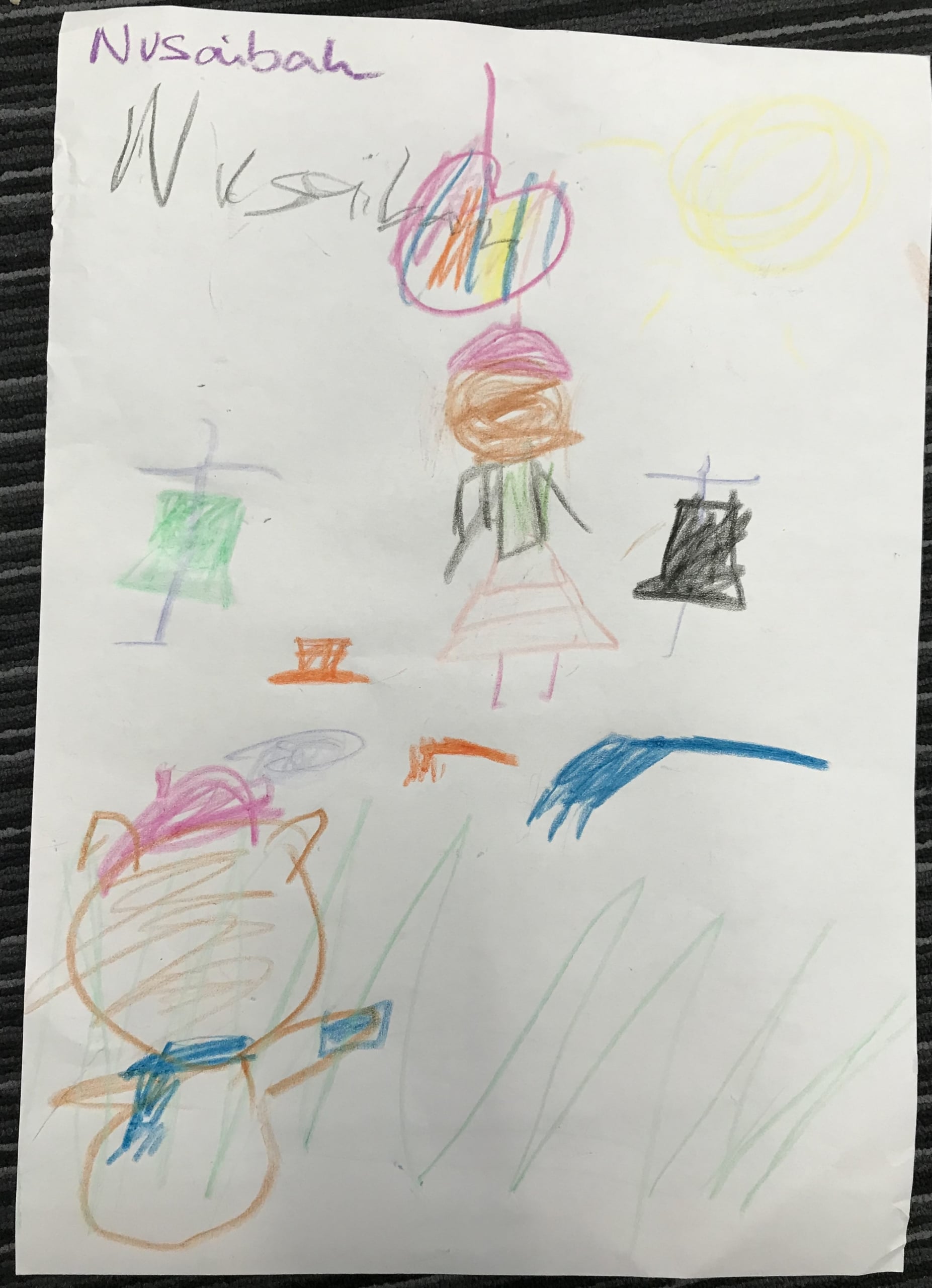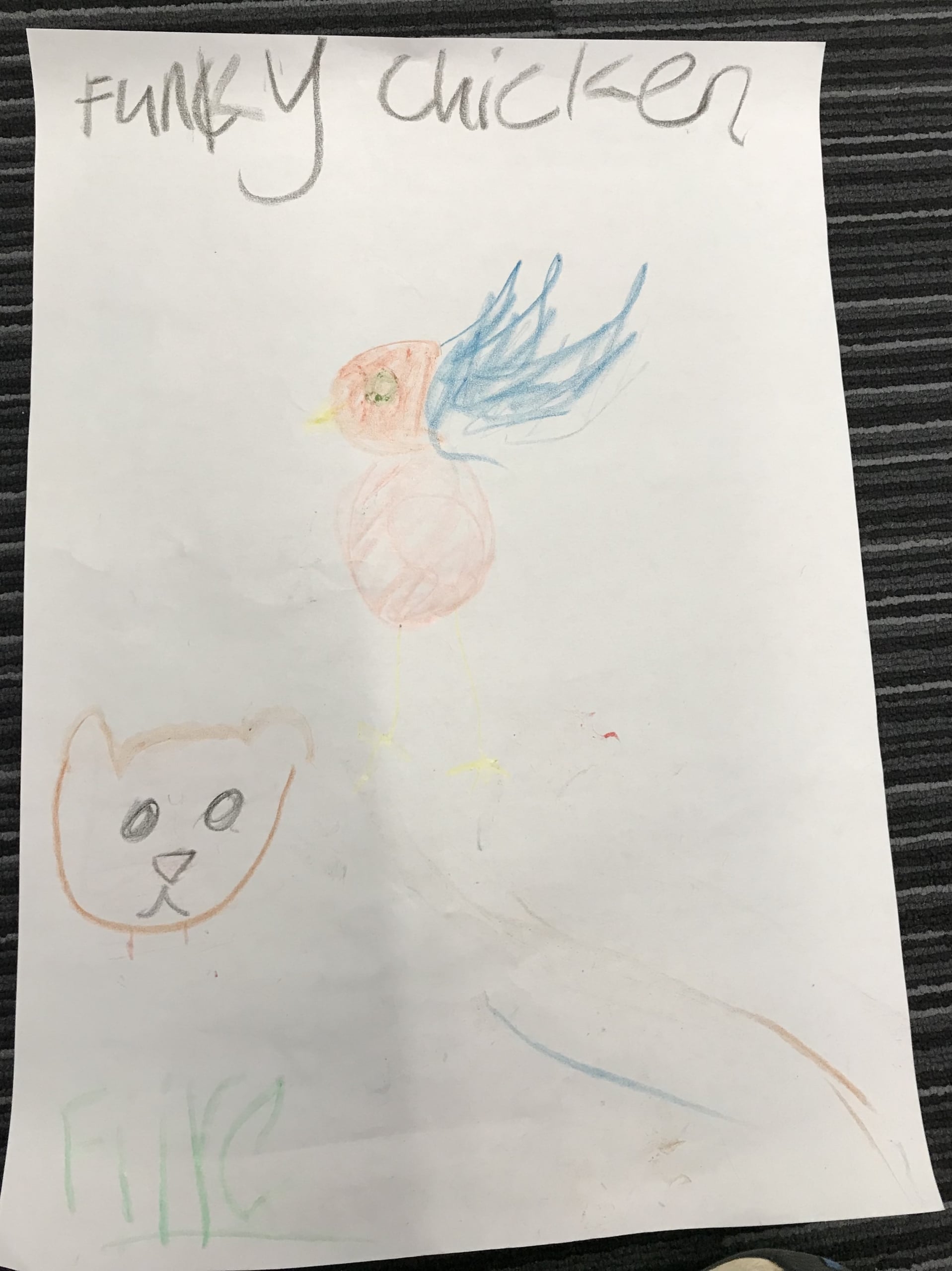 ‘I drew the funky chicken and the cheeky monkey.’ What did you enjoy today? ‘The dance warm up where you get to copy people’s dancing’