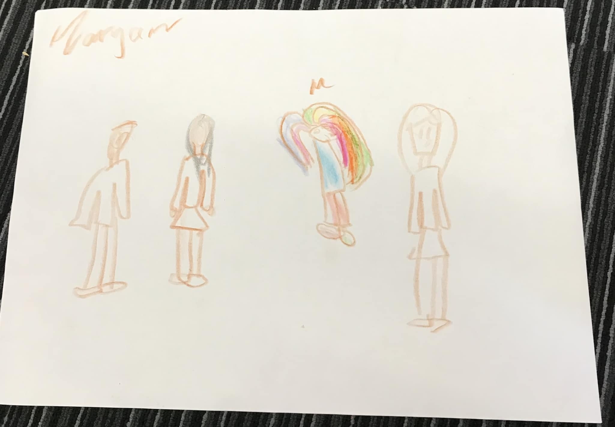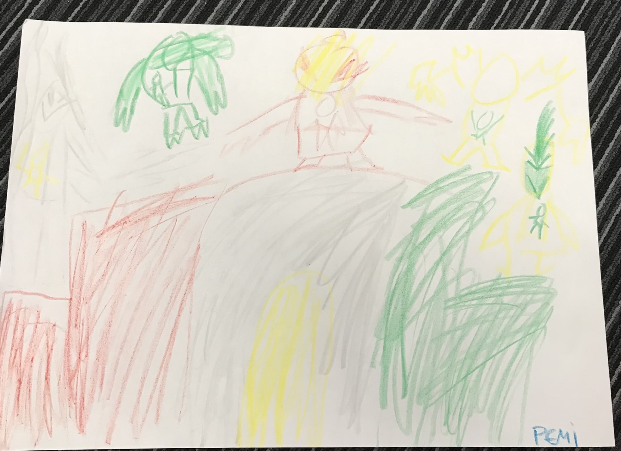 ‘I drew us doing the fashion catwalk and meeting the giant.’