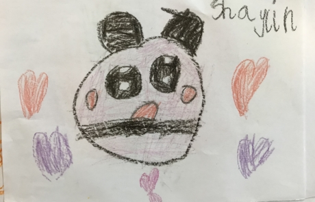 ‘This is the bear and this is the mouth and this is the mouth and then these are the cheeks and this is the cute eyes and these are the ears’