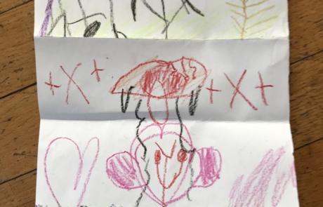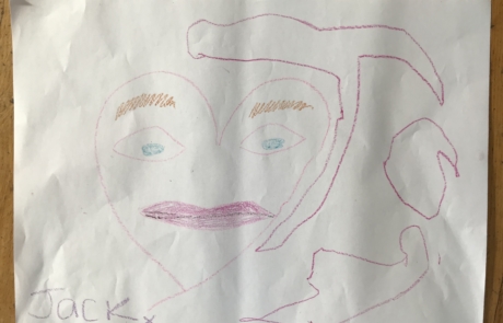 ‘It’s a love heart and eyes in there and a wee circle there and a hammer and this bit is his mouth and its heart shaped. That’s a big duck.’