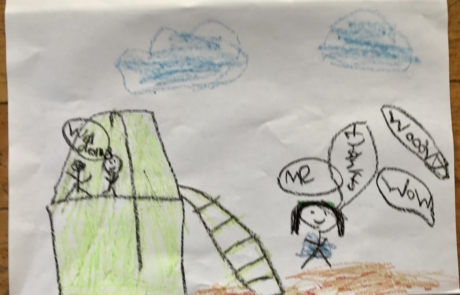 ‘So this is everyone and our magic ball and this is our pirate ship without the pirates and that’s it. And the sun cause we don’t have the sun normally and the sea’ Favourite bit – magic ball