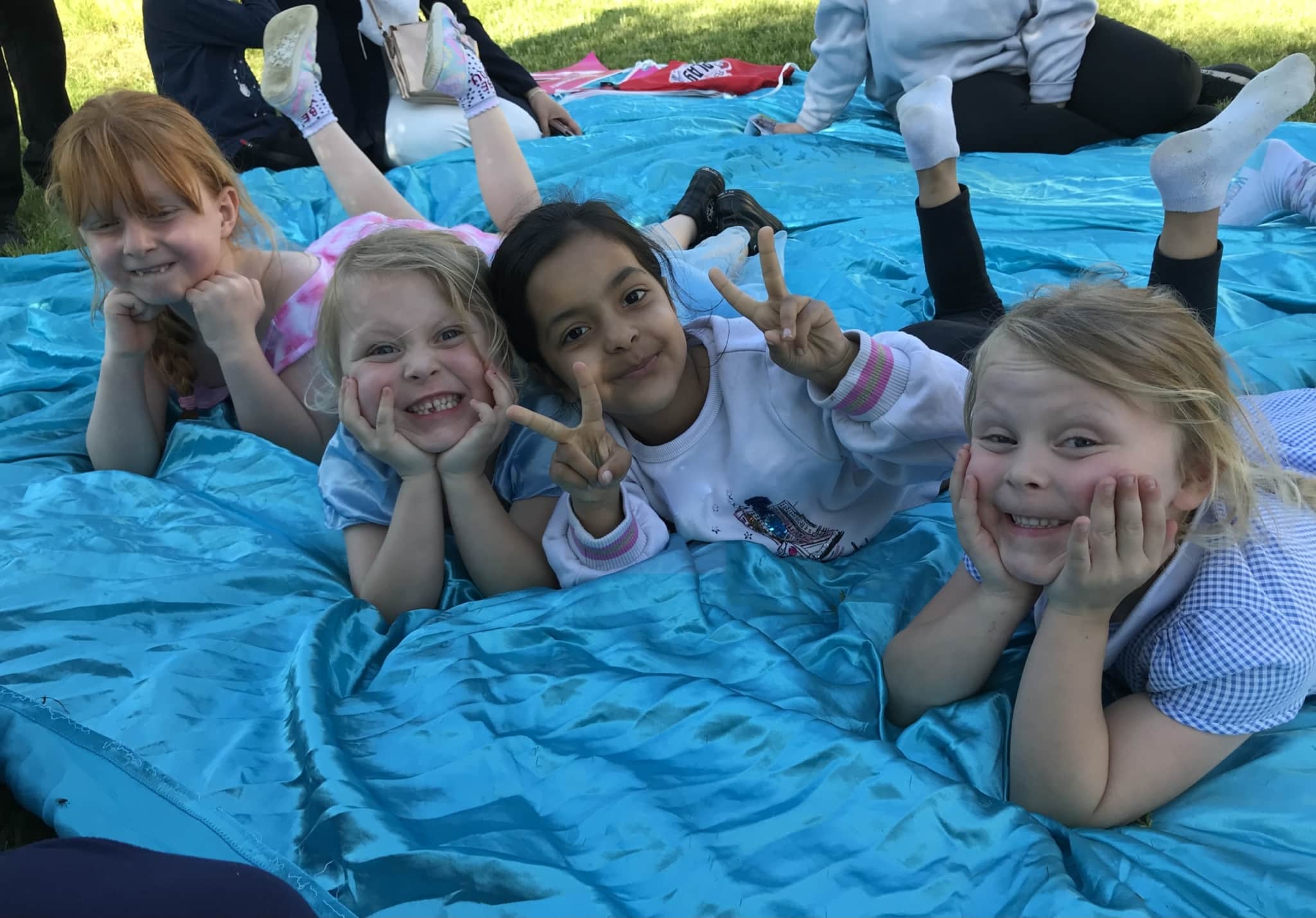 We played a magical game all around the Cranhill Ship – sharks and wild octopus tried to catch us! Then we flew back in the Magic Ball for our delicious picnic on our picnic blankets in the sun!
