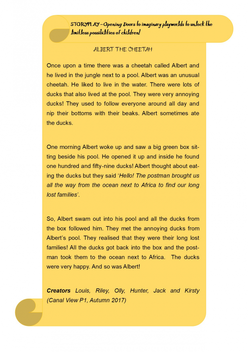 Storyplay Schools is a unique project designed to support the development of children’s literacy, language and confidence through the introduction of shared stories and inclusive play across the whole school community – children, families teachers and PSA’s. Storyplay is delivered by specialist children’s theatre company, Licketyspit, together with the teachers. Storyplay is part of Canal View’s programme to raise children’s attainment.