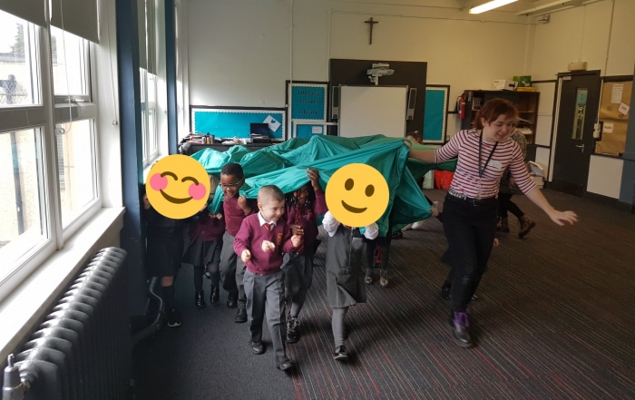 This term St Martha’s Primary is working with children’s theatre and drama-led play specialists Licketyspit on Storyplay. Storyplay is about everyone in the school community sharing stories, games, rhymes, songs and imaginary play activities, to develop an inclusive, imaginative, confident culture full of language. Storyplay develops children’s confidence, social skills and literacy, as well as developing friendships and creativity.