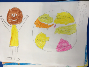 This is all of us having a picnic in the colourful blankets and I enjoyed playing the games (Reflective Drawing)