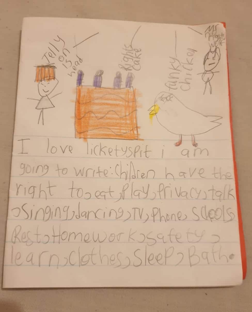 Have Your Say Through Play sessions were developed with the Children & Families Network in September 2020, as a way to consult children and explore issues that matter to them, using the Lickety Playcard repertoire. We have explored children’s experiences of the Covid-19 pandemic using Flying Balloons, Sent a Letter to my Love and Reflective Drawing. Children from the CFN took part in a consultation with the Scottish Parliament on Children’s Rights in November 2020 – on the UNCRC Incorporation (Scotland) Bill. In this session we played the multi-lingual Hello Game, What’s the Time Mr No-Rights Wolf and Let’s Bake a Rights Cake! You can see what some of the children have to say about their rights below.