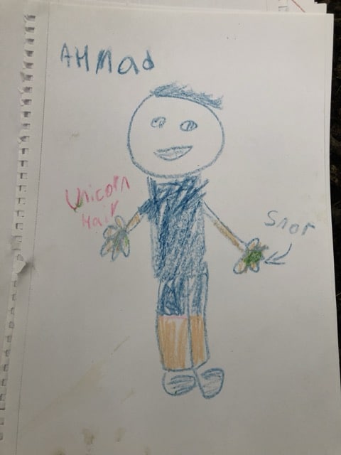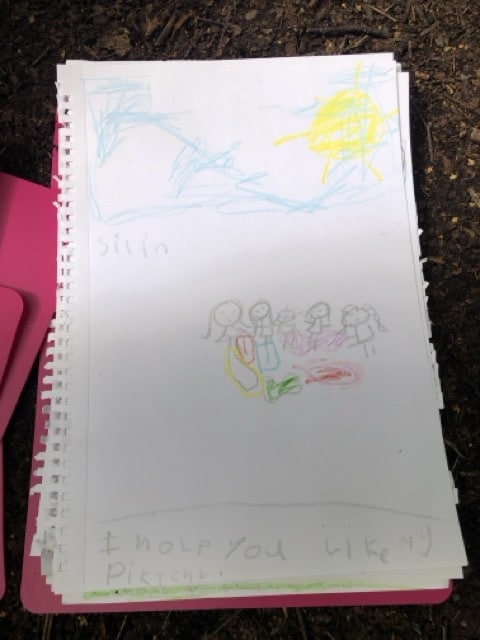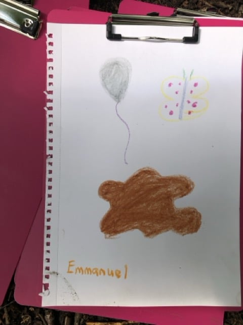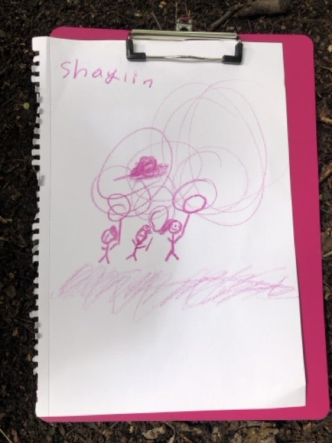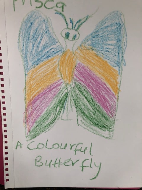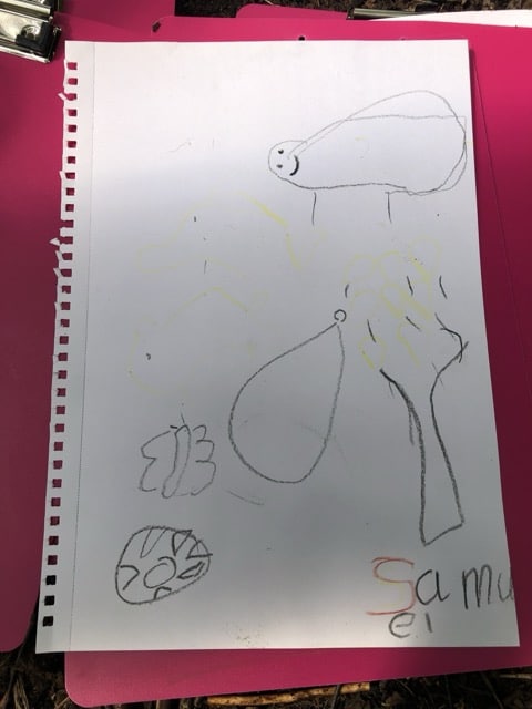 We had a very inspired game of Funky Chicken with some fabulous animals popping into our circle. We had a Scary Spider from Silin, Anne Marie‘s Flying Unicorn, a King bird and a Silly Sloth! Shiva was a Lazy Bunny, Ryan was a Whizzing Wasp and Shahd was a Scary Lion! Samuel imagined a Big Elephant and Esme became a Flamingo! Gabriella fluttered like a Happy Butterfly – and so did we! We met Prisca‘s Cheeky Cat, and wee David‘s Silly Dog. Gabbie created a Happy Axolotl……interesting!