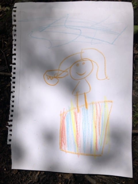 Finally, the Mud Pool Dragon confessed that he did indeed breathe fire, and that he would! So he dried us all up just in time for us to get back to the Magic Ball to transport ourselves back to the Children Wood for our picnic.