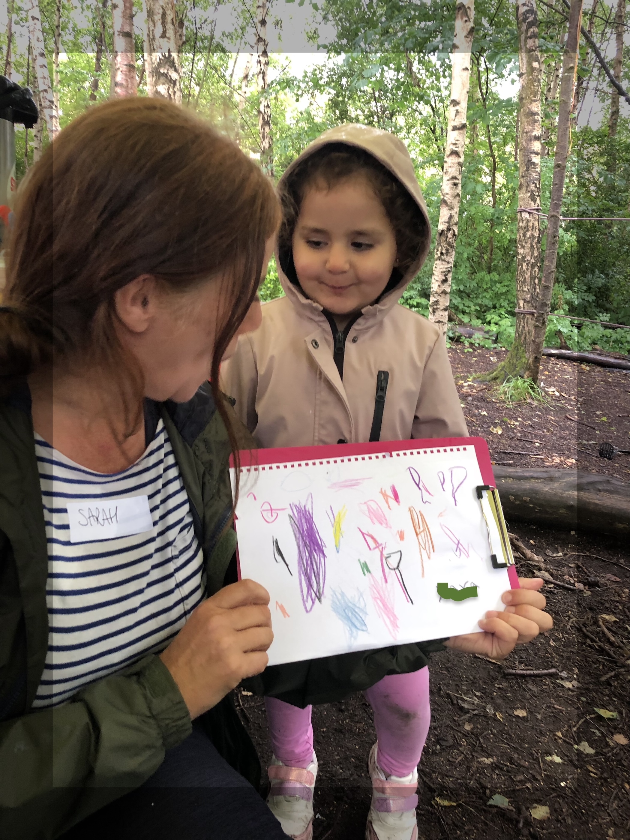 The pitter patter of the rain falling on the tarpaulins proved to be an inspiring sound as everyone enjoyed Reflective Drawing and created fantastic pictures about a rainy but fun time with nice friends at Forest Storyplay!