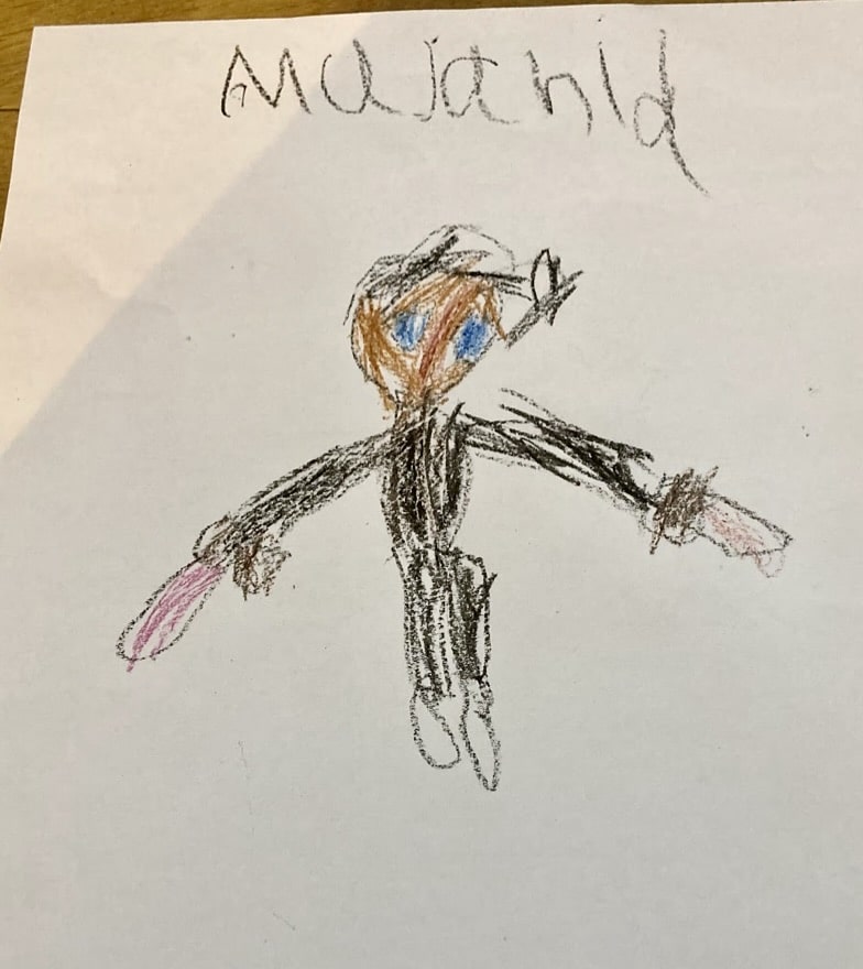 This is me eating bread and jam (today). That’s my house me and my mummy did it. I like my house.