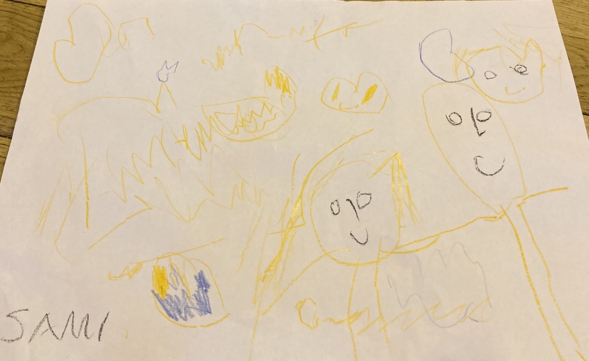 There was also Granny Mohammed who had a flying house with a garden full of bananas, oranges and strawberries. While Hilde and Granny Muhammed were busy making a fruit salad there were all kind of scary Hallowe’en creatures creeping about! But when Hilde and Granny  turned around again, they turned back into trees. They even managed to pick some apples.