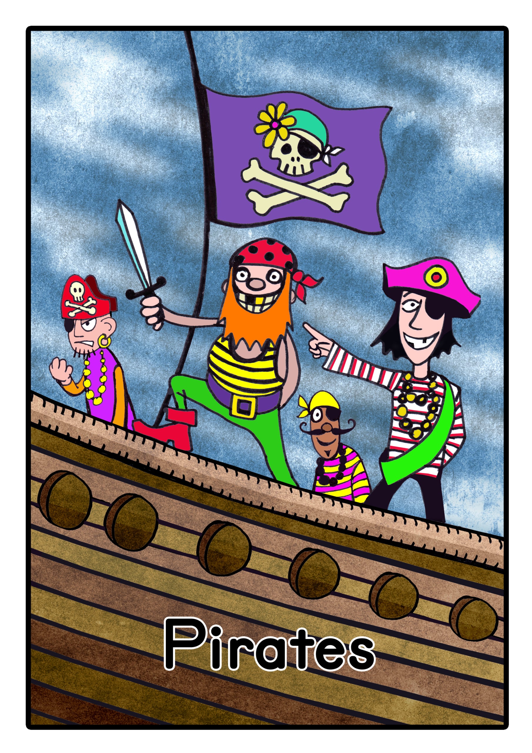 Pirate Mohammed and Pirate Mujahid swabbed the decks and Pirate Shams and Pirate Ohi hoist the sail.