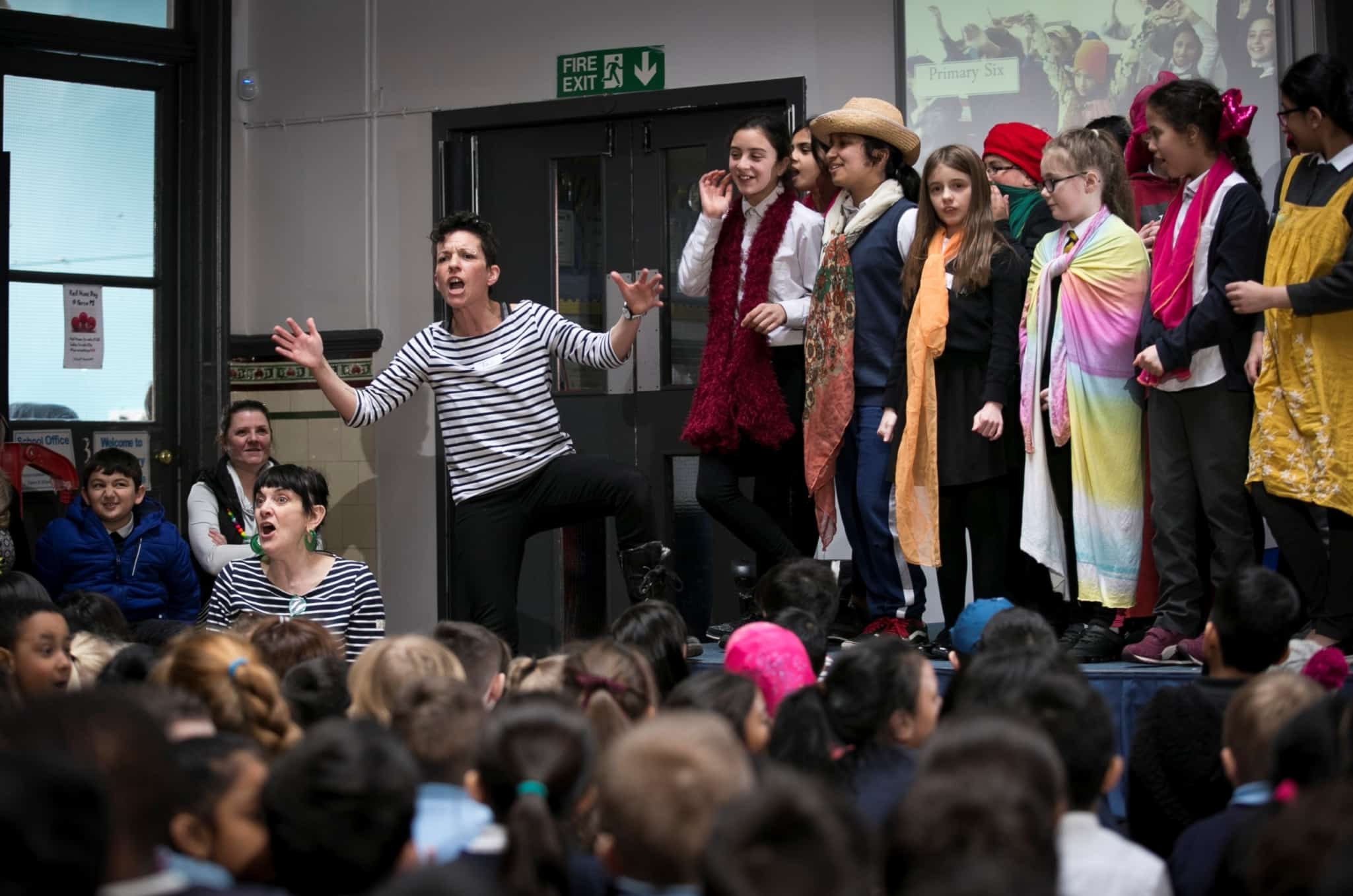 We rounded off a fantastic five-week Storyplay Residency at Ibrox Primary and Nursery with a joyous whole-school assembly.
