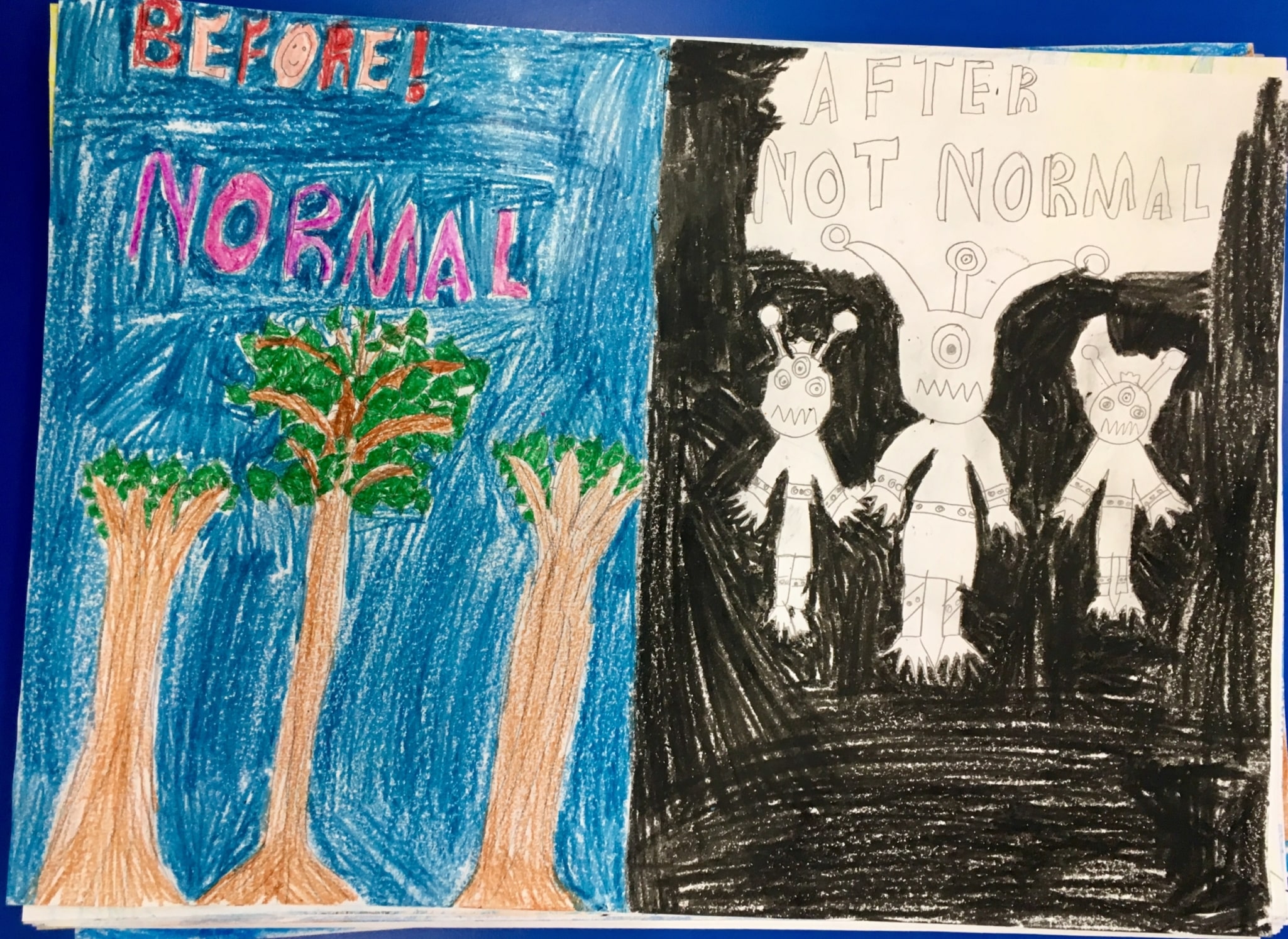 After their first Licketyspit Storyplay Playcard Play session, Primary 6 did some fantastic Reflective Drawings which they shared in class in the Licketyspit Art Gallery.