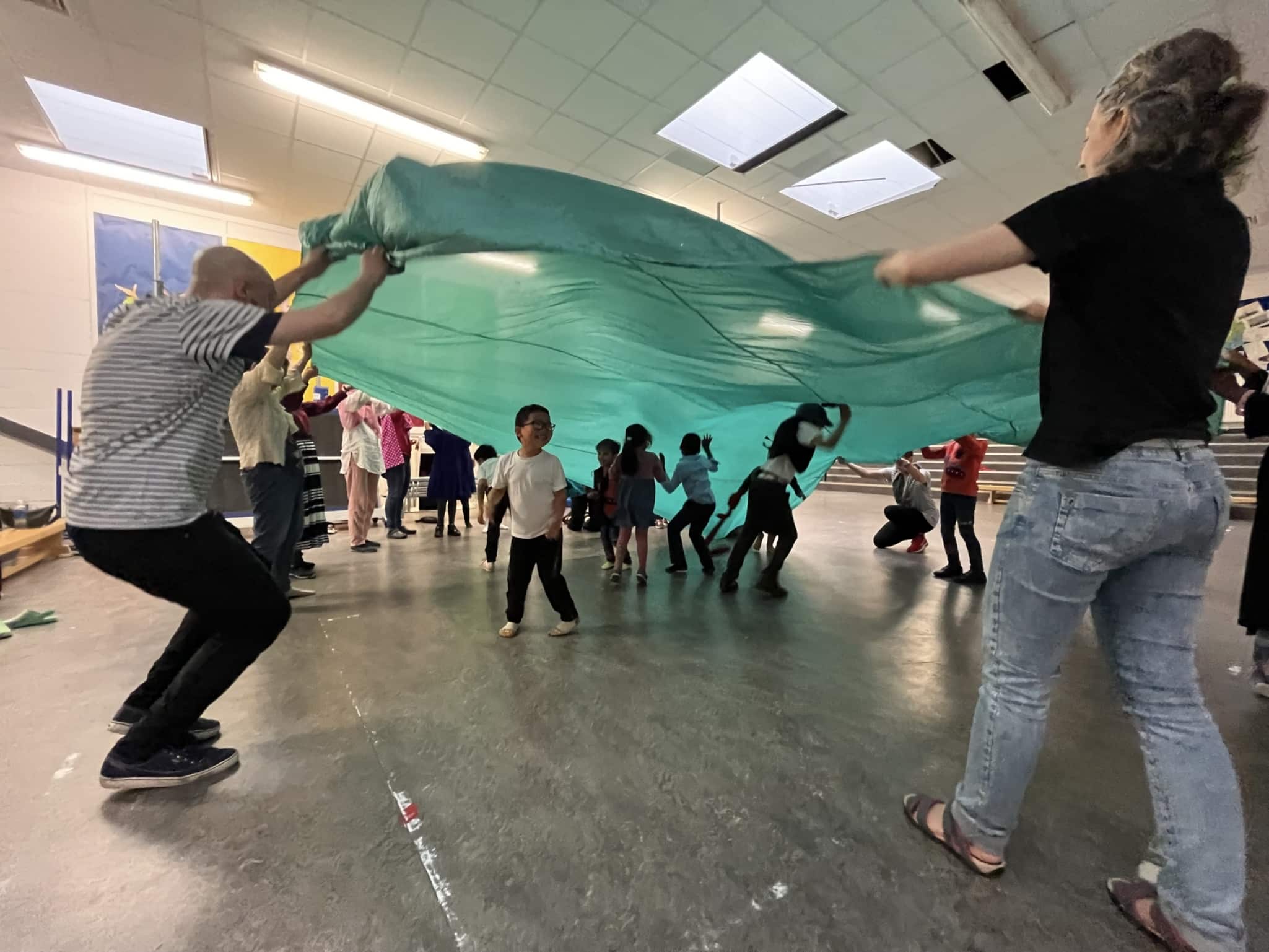 We started the day by saying hello to all the friendly faces. Then we made ourselves as big as a tree! A fun little warm-up to get the body and imagination ready to play! Next, we played My Name is Joe. It’s about a guy named Joe who works in a button factory but his boss asks way too much of him! Oh Joe – I hope one day you can tell your boss that you are too busy!!