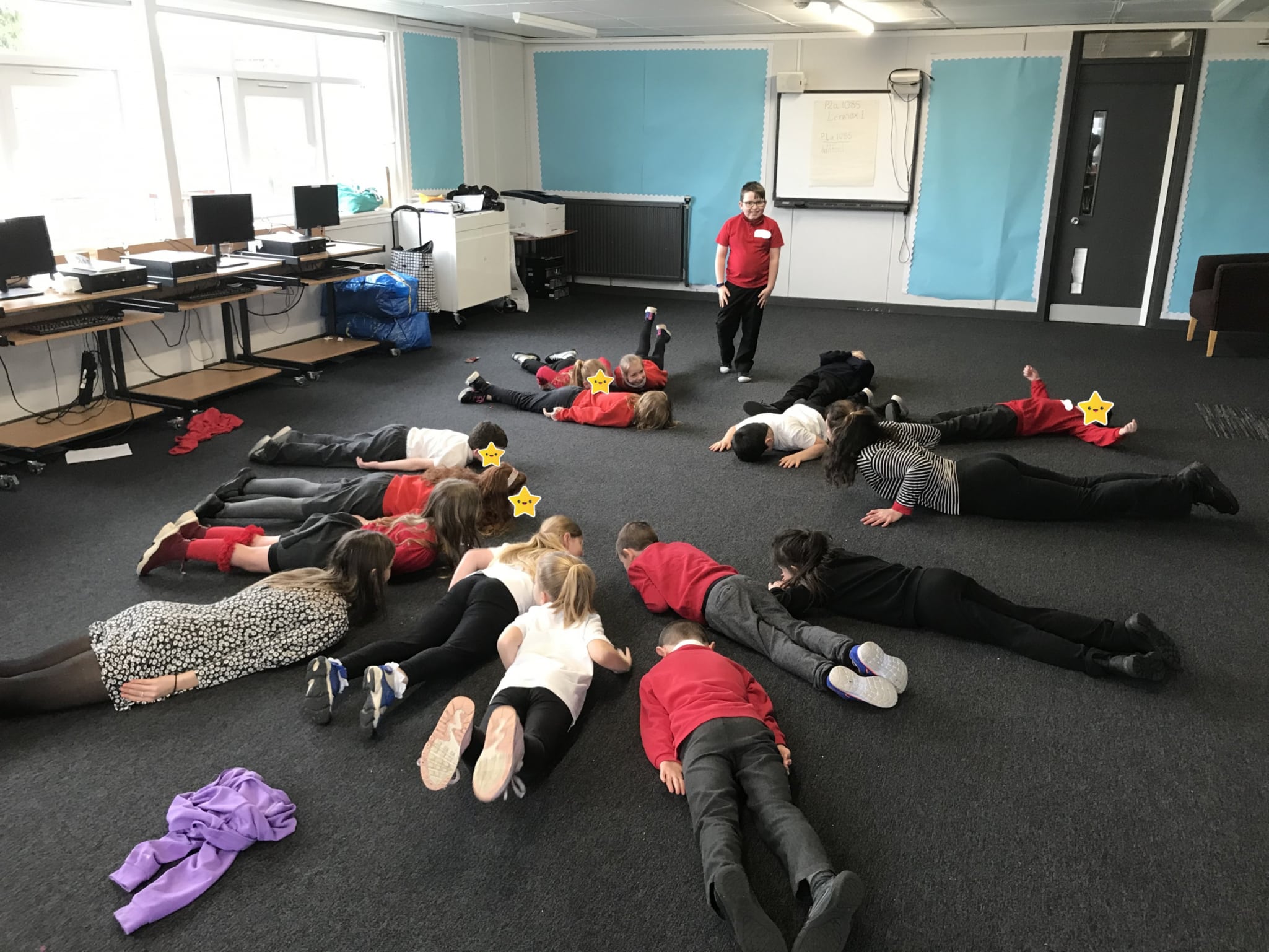 Everyone remembered lots of the warm up and joined in loudly, which really got our bodies and minds ready to go! Lots of great animals were thought of in Funky Chicken, such as the ‘squeaking guinea pig’ and the ‘silly dog!’ We flew high above the world in balloons, seeing mountains and rain-forests and even as far as the milky way and meteors!