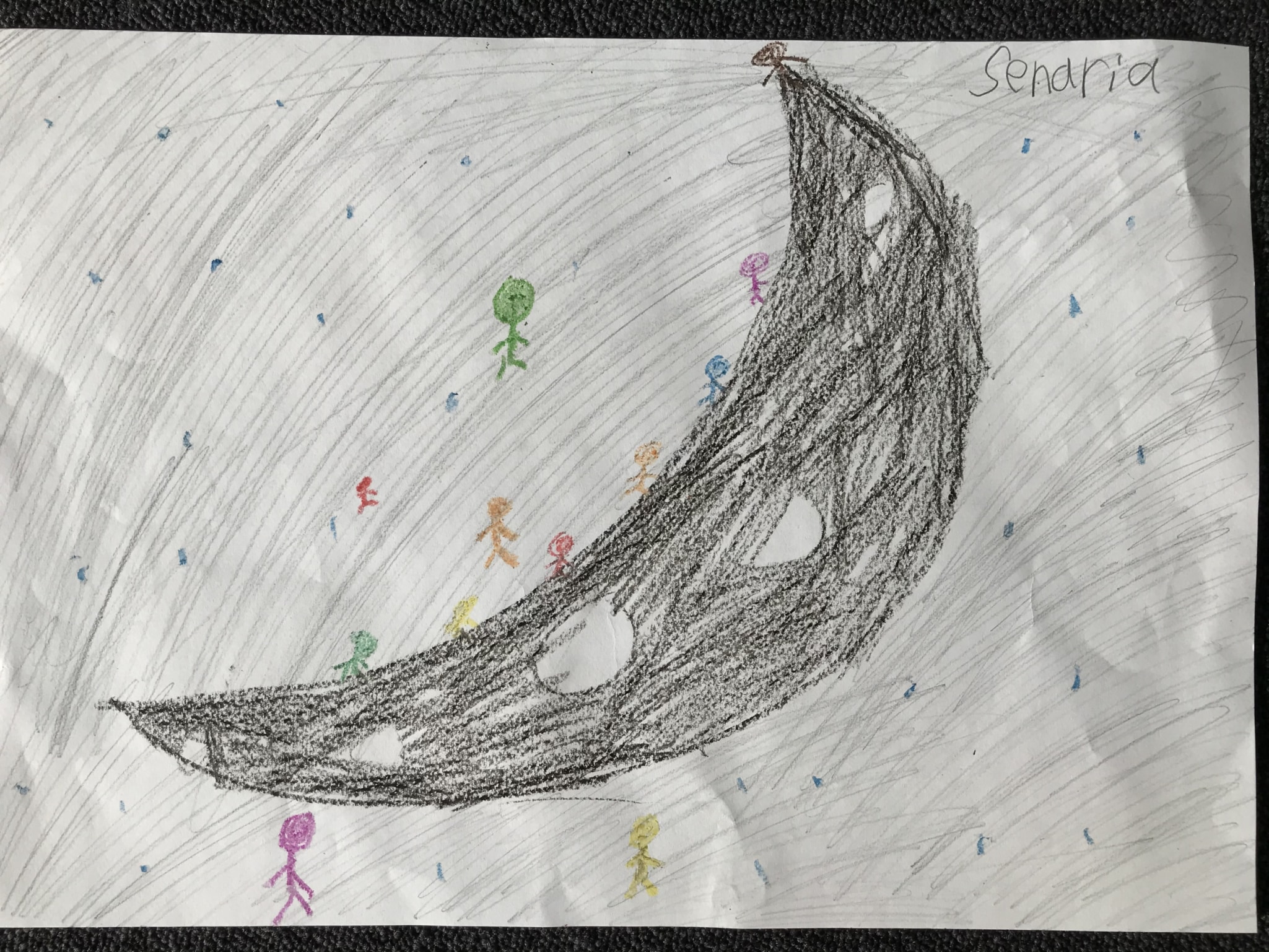 That’s us climbing up and then going down and writen this drawing I’ve done is us on the moon we went to Bettlejuice and then going back to Miltonbank Primary. These ones are nearly falling backwards. I enjoyed today – I felt good.