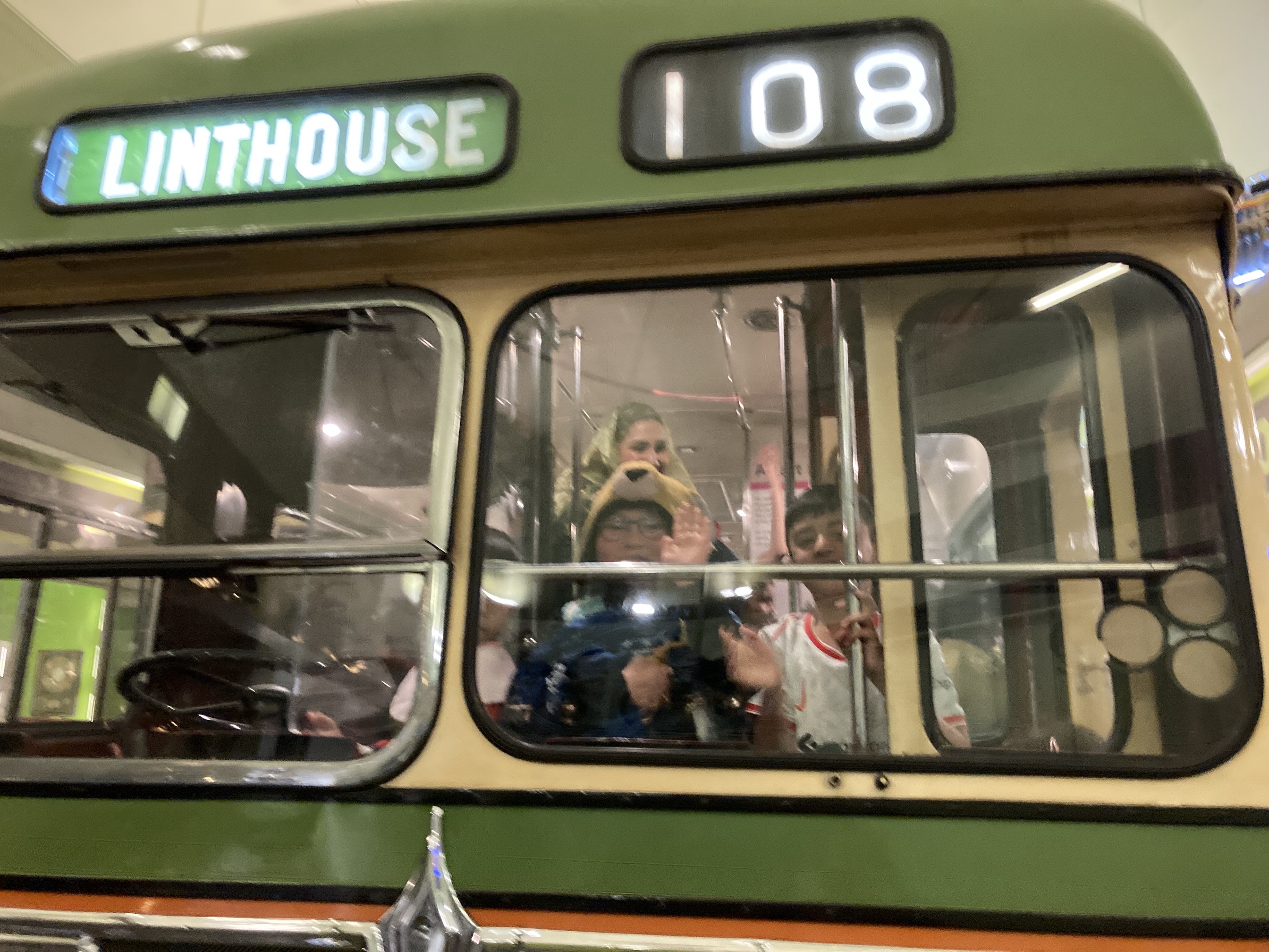 When we got on, we saw the Loch Ness Monster. Everyone had to be very silent and quiet, very sneaky and stealthy because the Loch Ness Monster was going to attack. And after that we went to the subway and we went to Stirling and after that we went through an old subway that was built in the past. And the driver was very thin and it was Waheed!