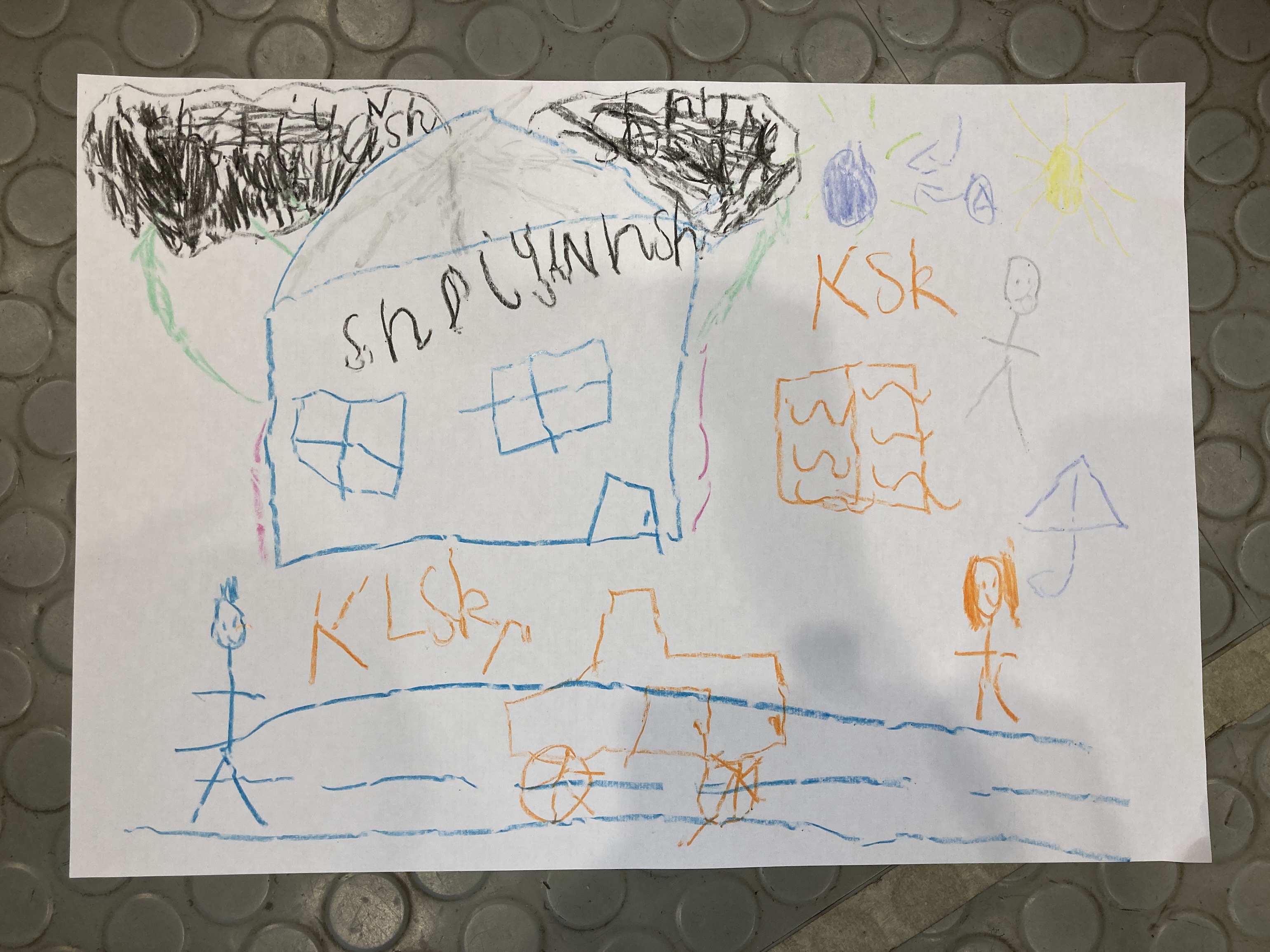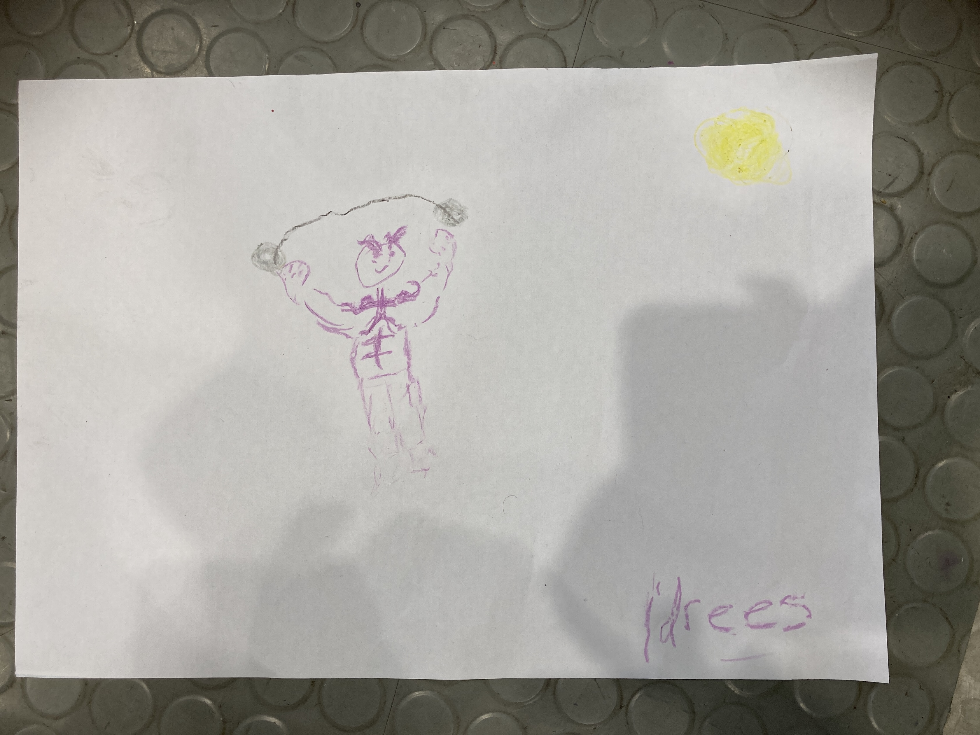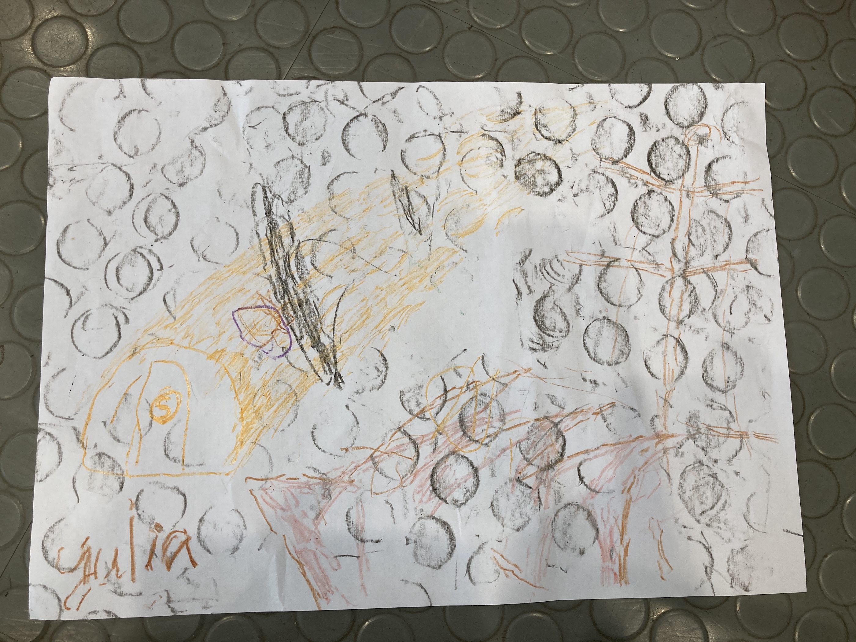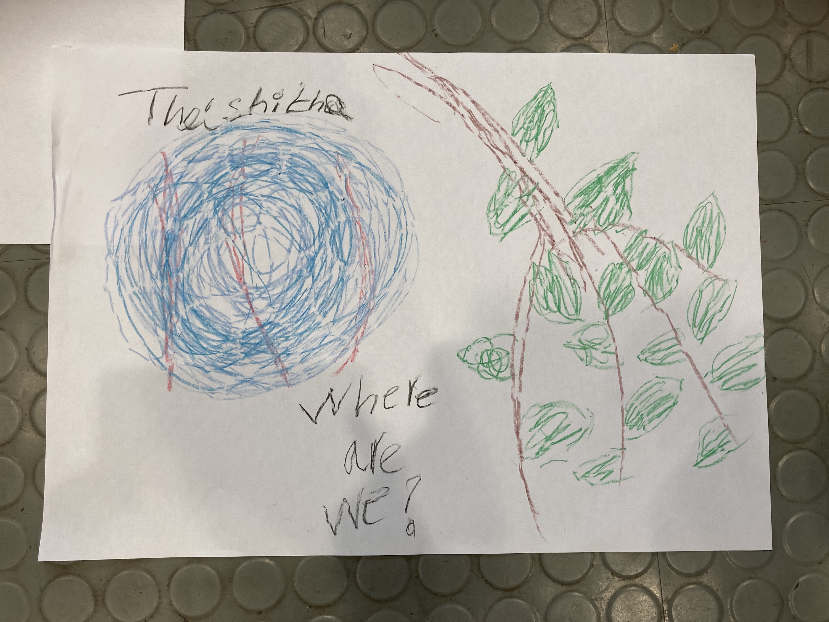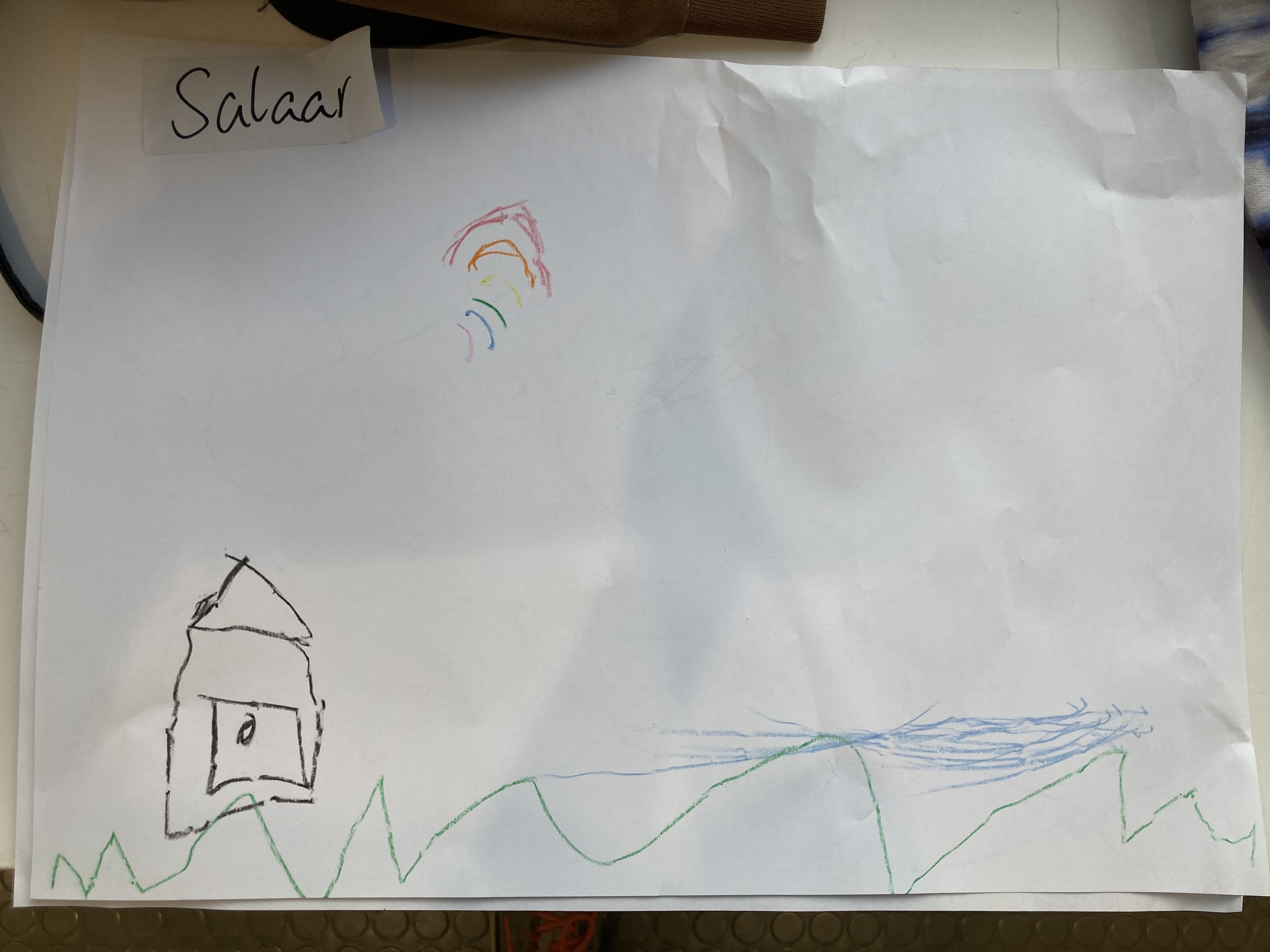 ‘This is Taz’s house and a rainbow; this is the grass’.
