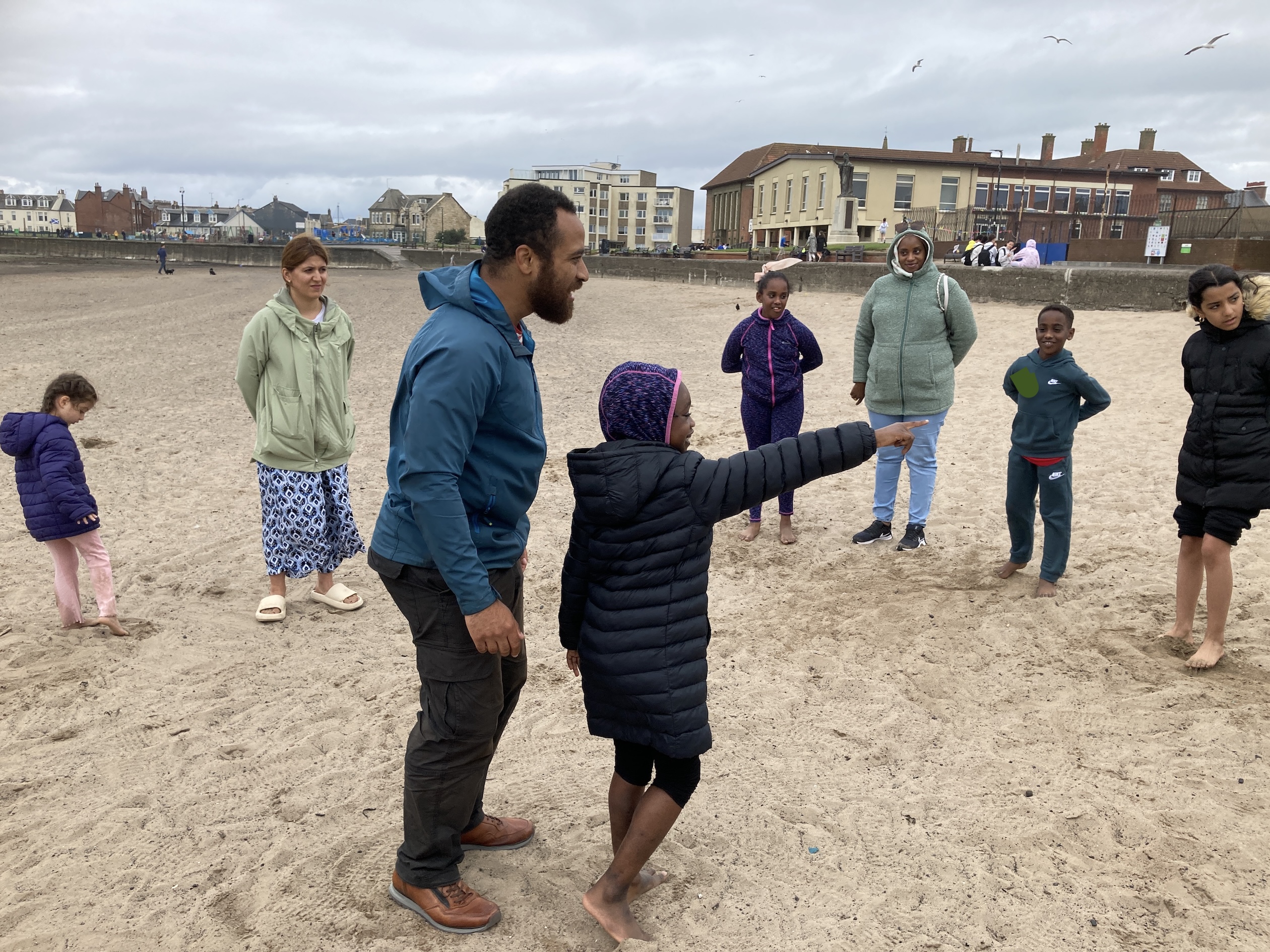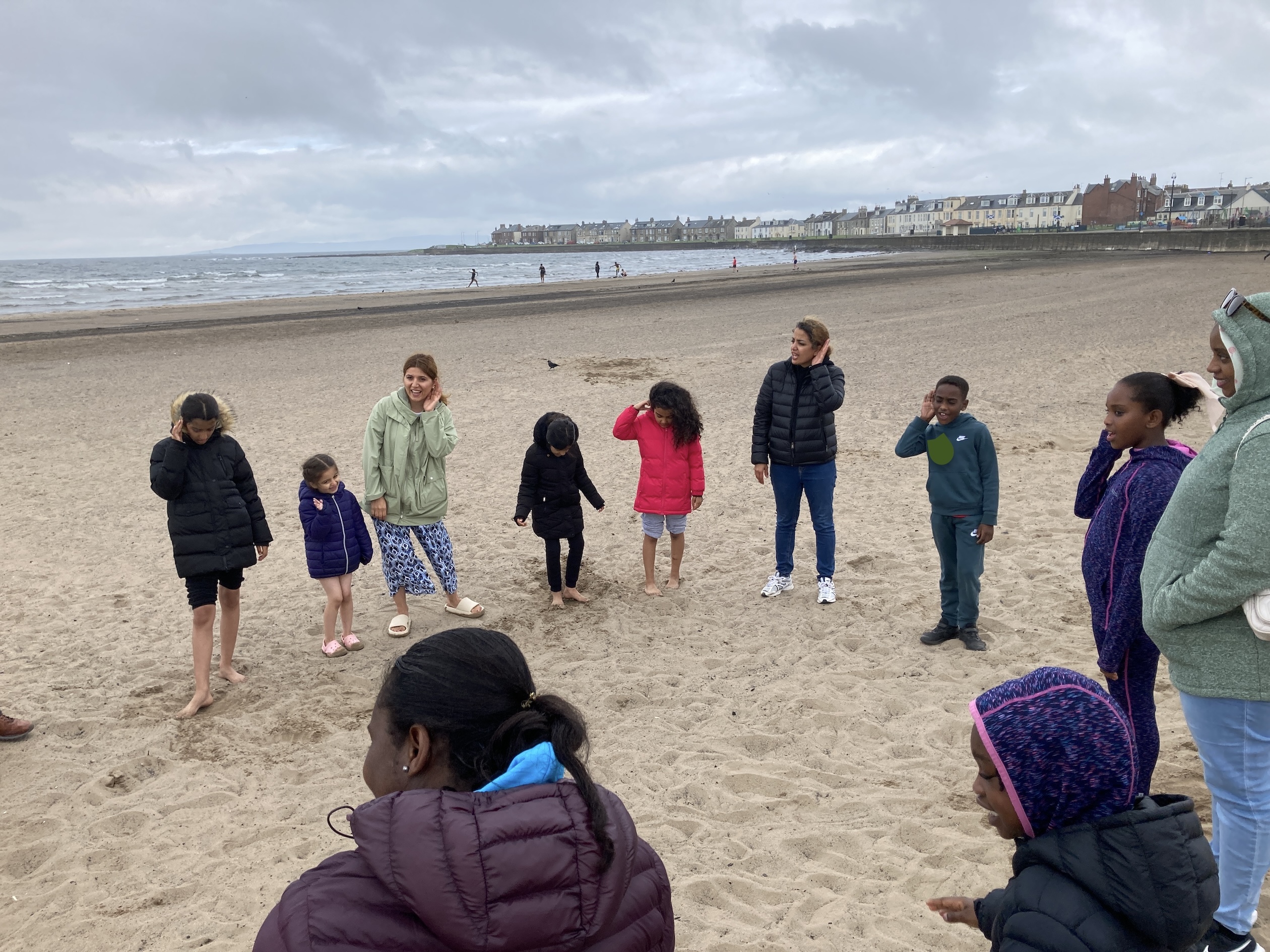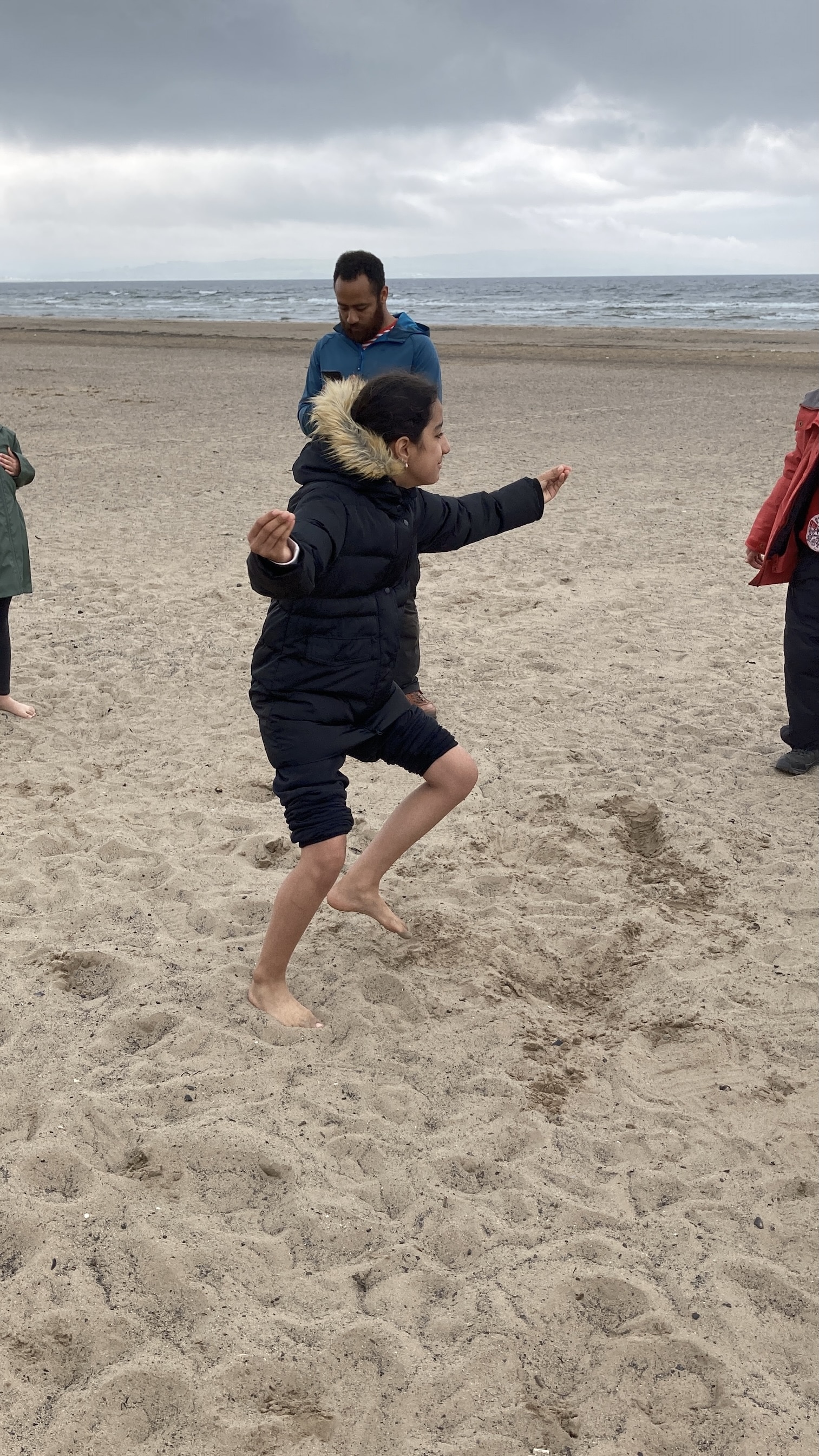 Moman made up a game about jumping waves and Shiva said she got a wee bit nervous when something in the water brushed one of her legs…it was just some seaweed! Dan also swam like a fish and Yasna, Amira and Gabbie loved collecting seashells on the seashore.